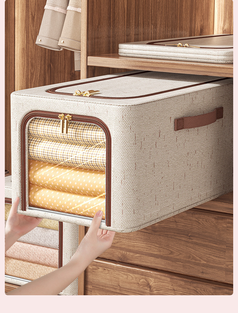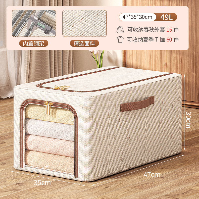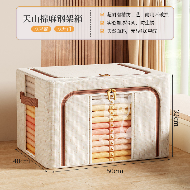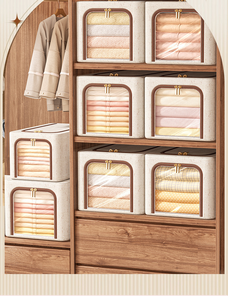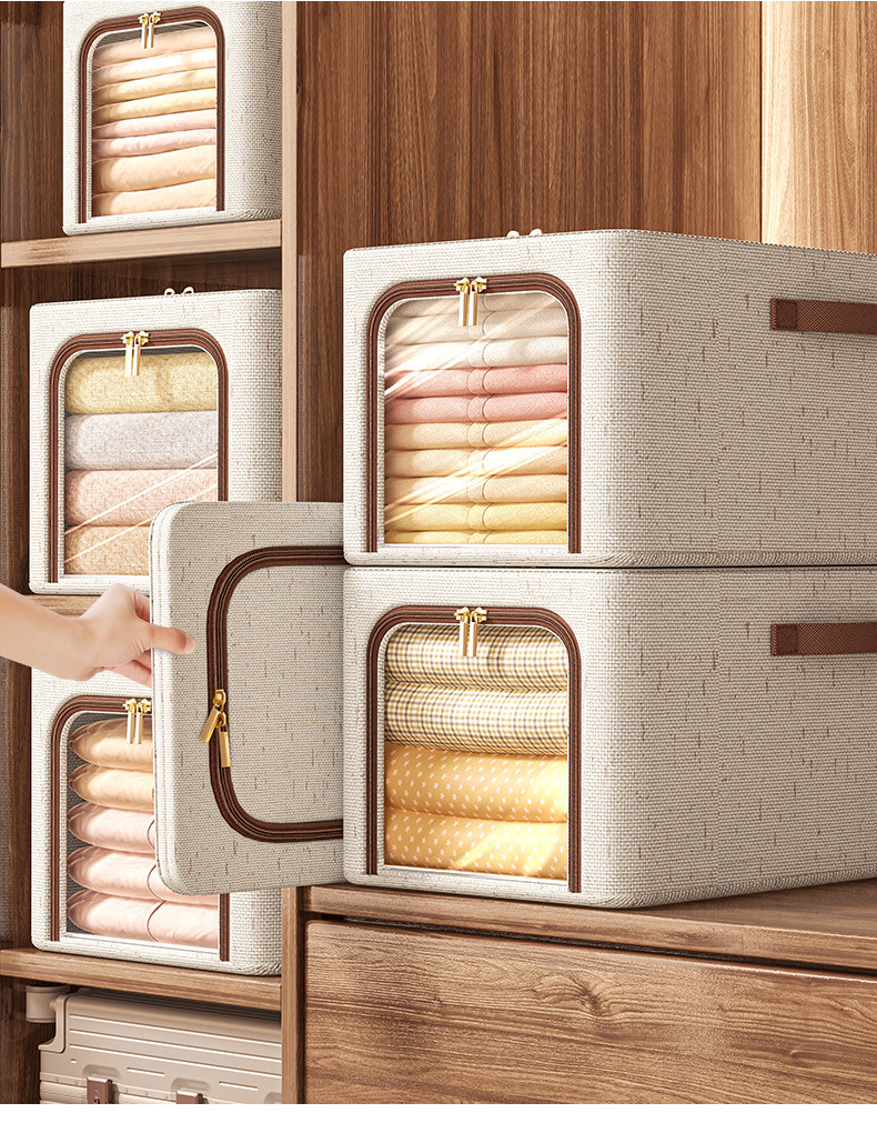 투명 창 옷 보관 상자면 및 린넨 강철 프레임 보관 상자 침실 옷장 마무리 옷 바지 보관 상자스토어 가기