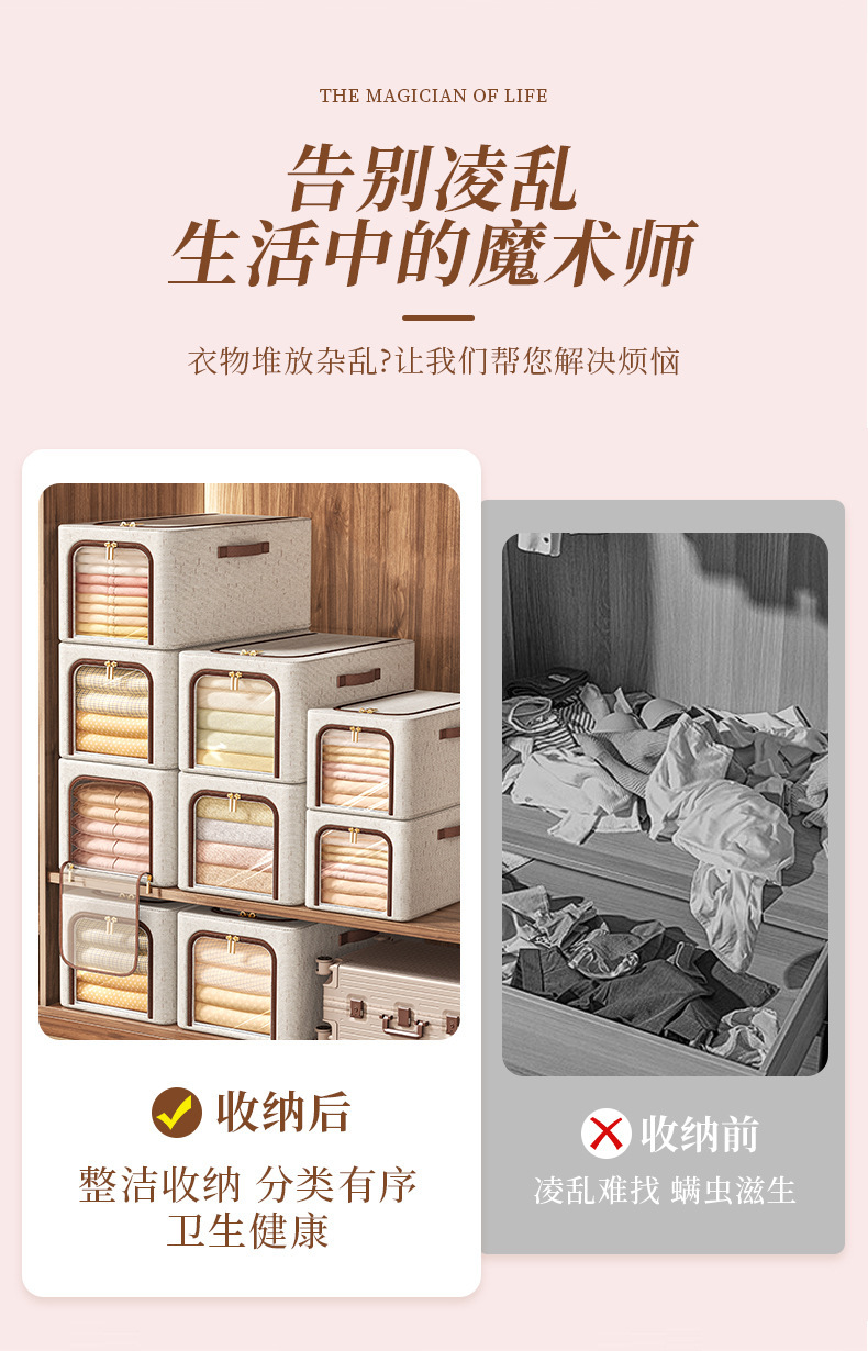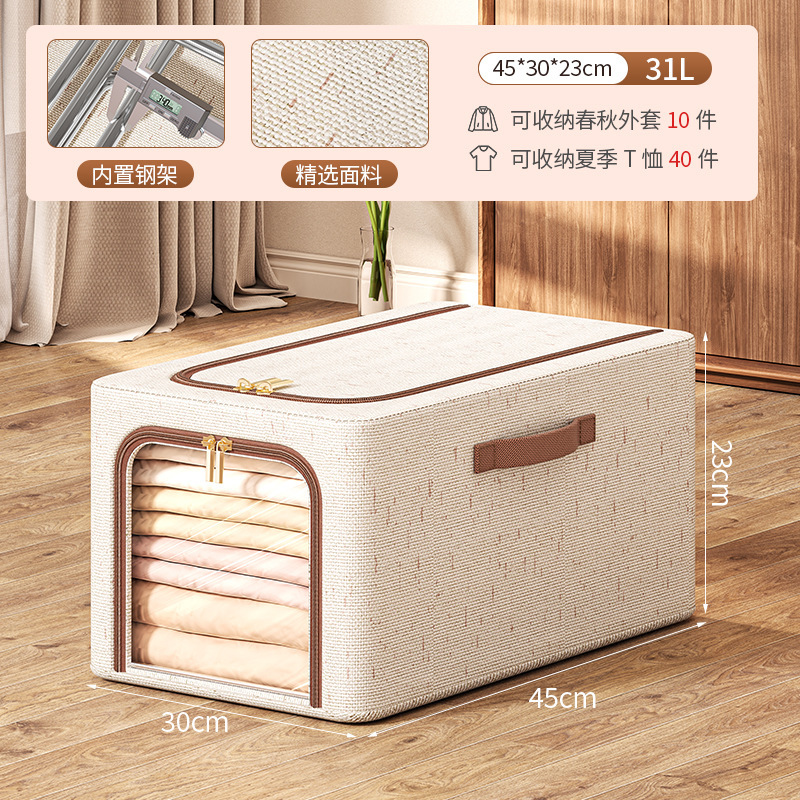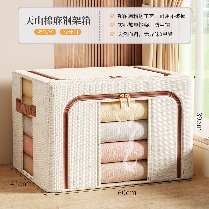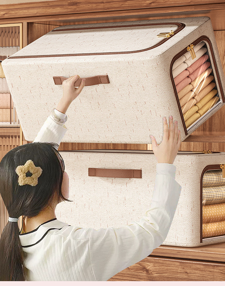 투명 창 옷 보관 상자면 및 린넨 강철 프레임 보관 상자 침실 옷장 마무리 옷 바지 보관 상자스토어 가기