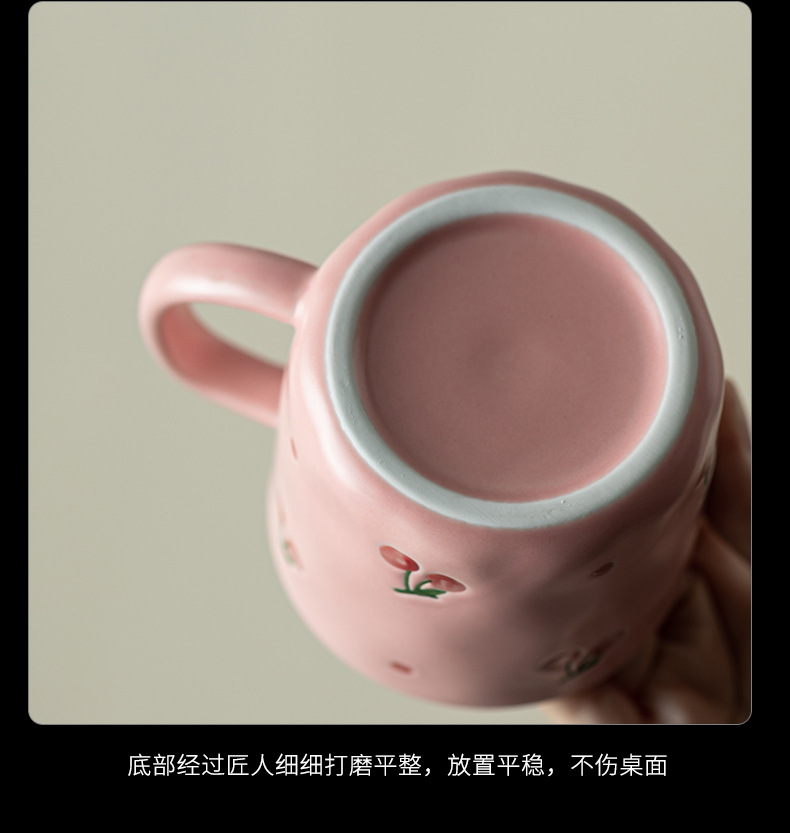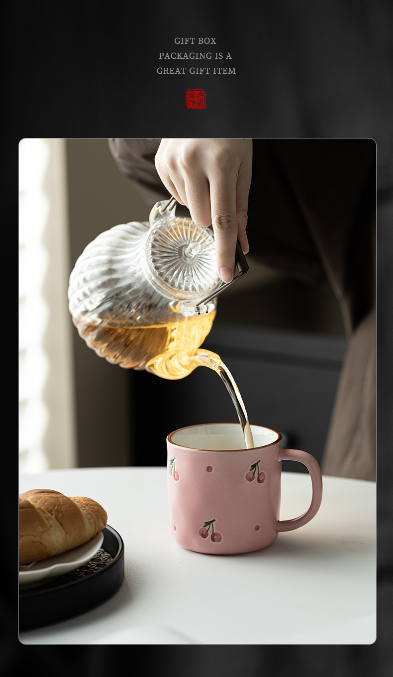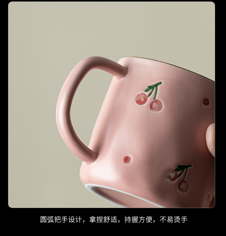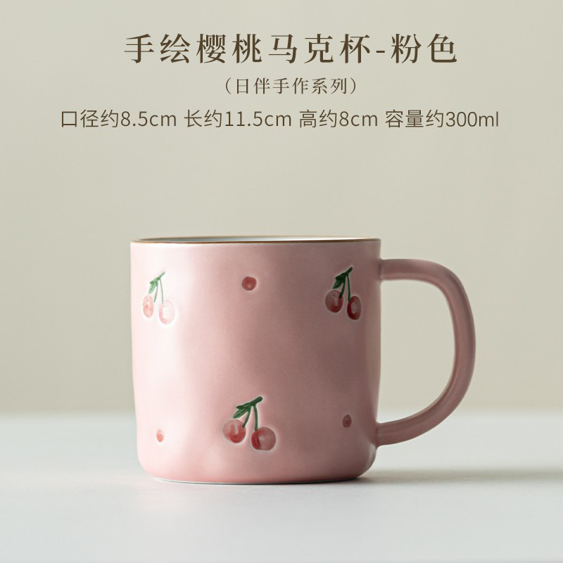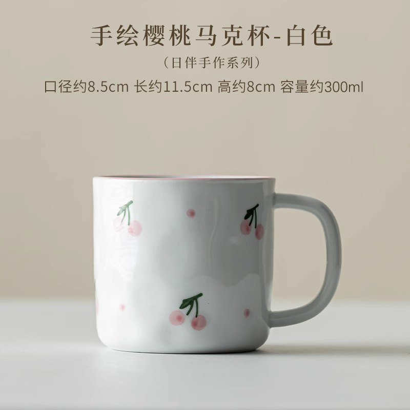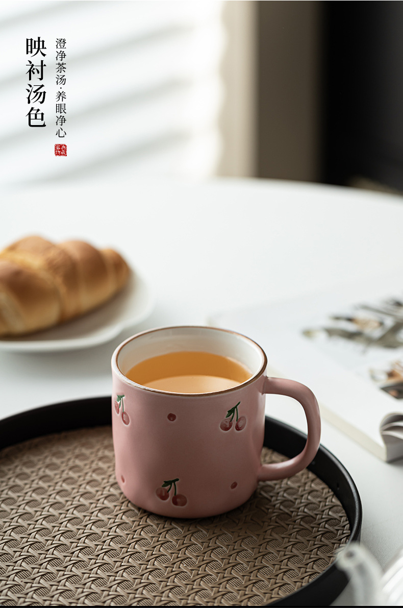 Dehua 손으로 그린 체리 머그컵 세라믹 커플 커피 컵 가정용 간단한 고가치 아침 식사 컵 워터 컵
