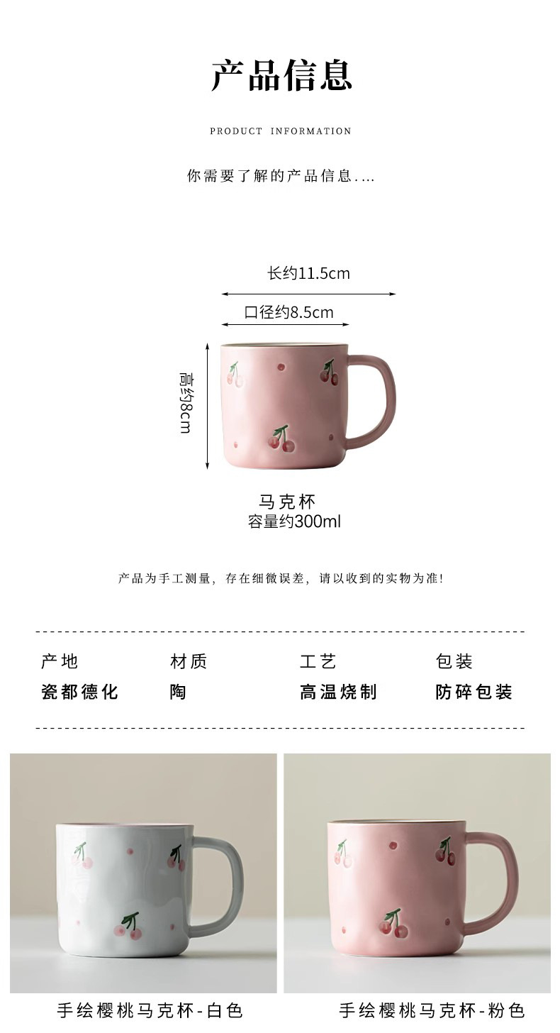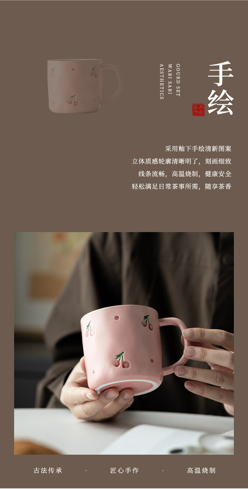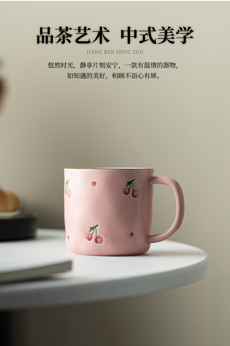 Dehua 손으로 그린 체리 머그컵 세라믹 커플 커피 컵 가정용 간단한 고가치 아침 식사 컵 워터 컵스토어 가기