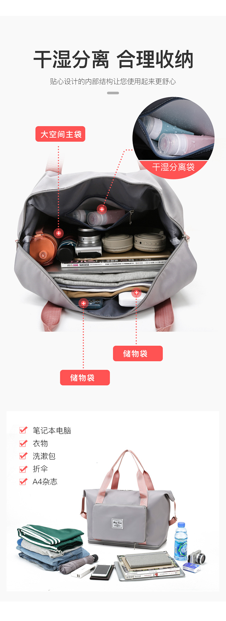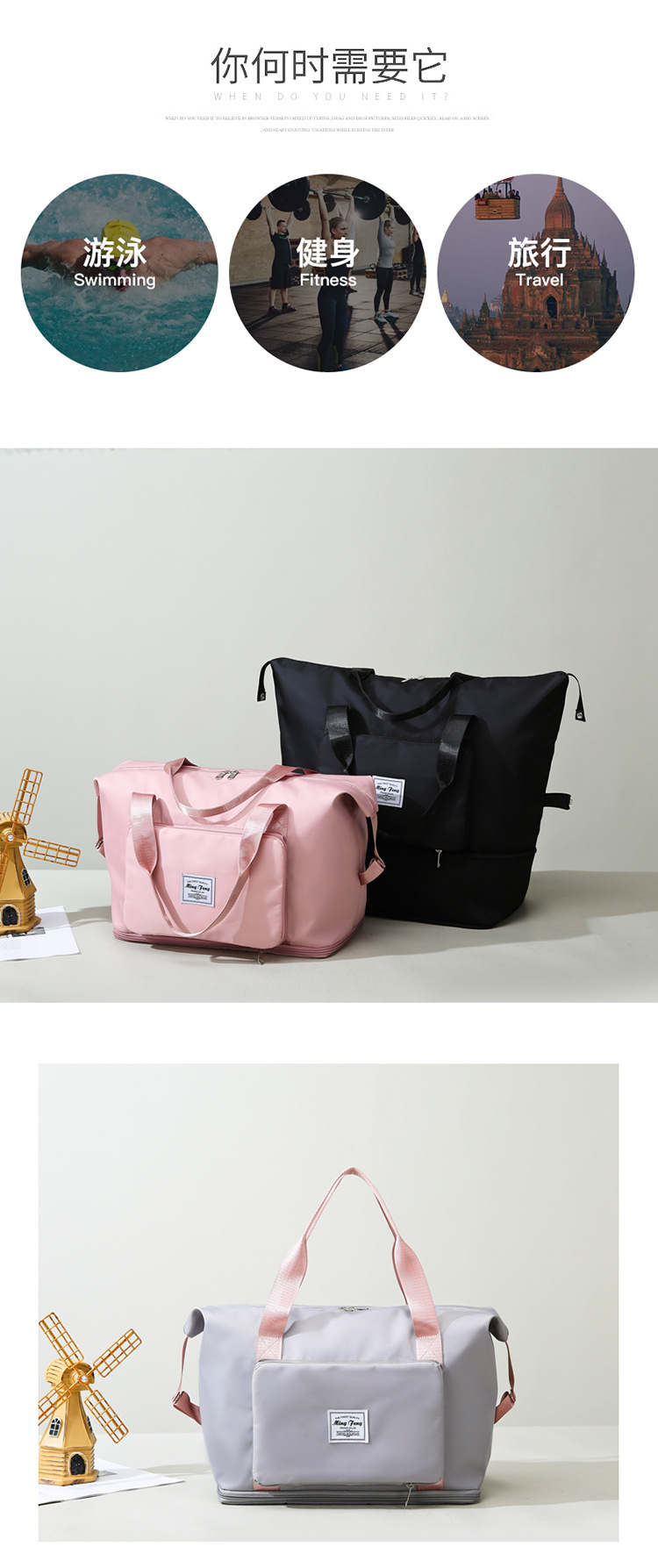 국경을 넘는 심플 여행 가방, 건식 및 습식 분리형 요가 피트니스 가방, 접이식 대용량 수하물 배낭, 제조업체 도매스토어 가기