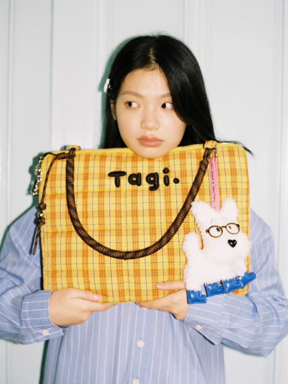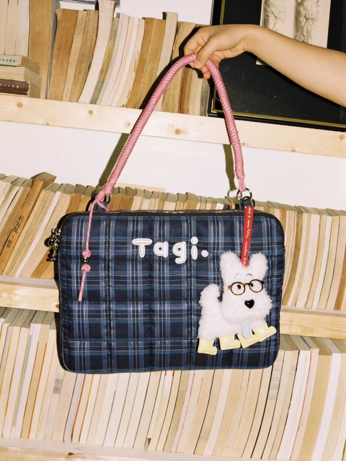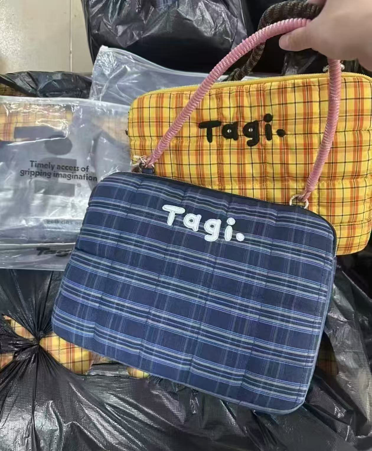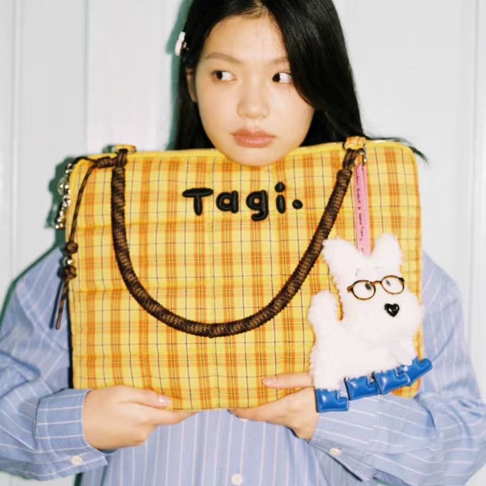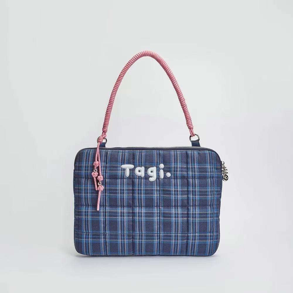 2025 원래 새로운 tigi. 가방 높은 가치의 격자 무늬 핸드백 어깨 가방 드롭 방지 충격 방지 학생 컴퓨터 가방스토어 가기