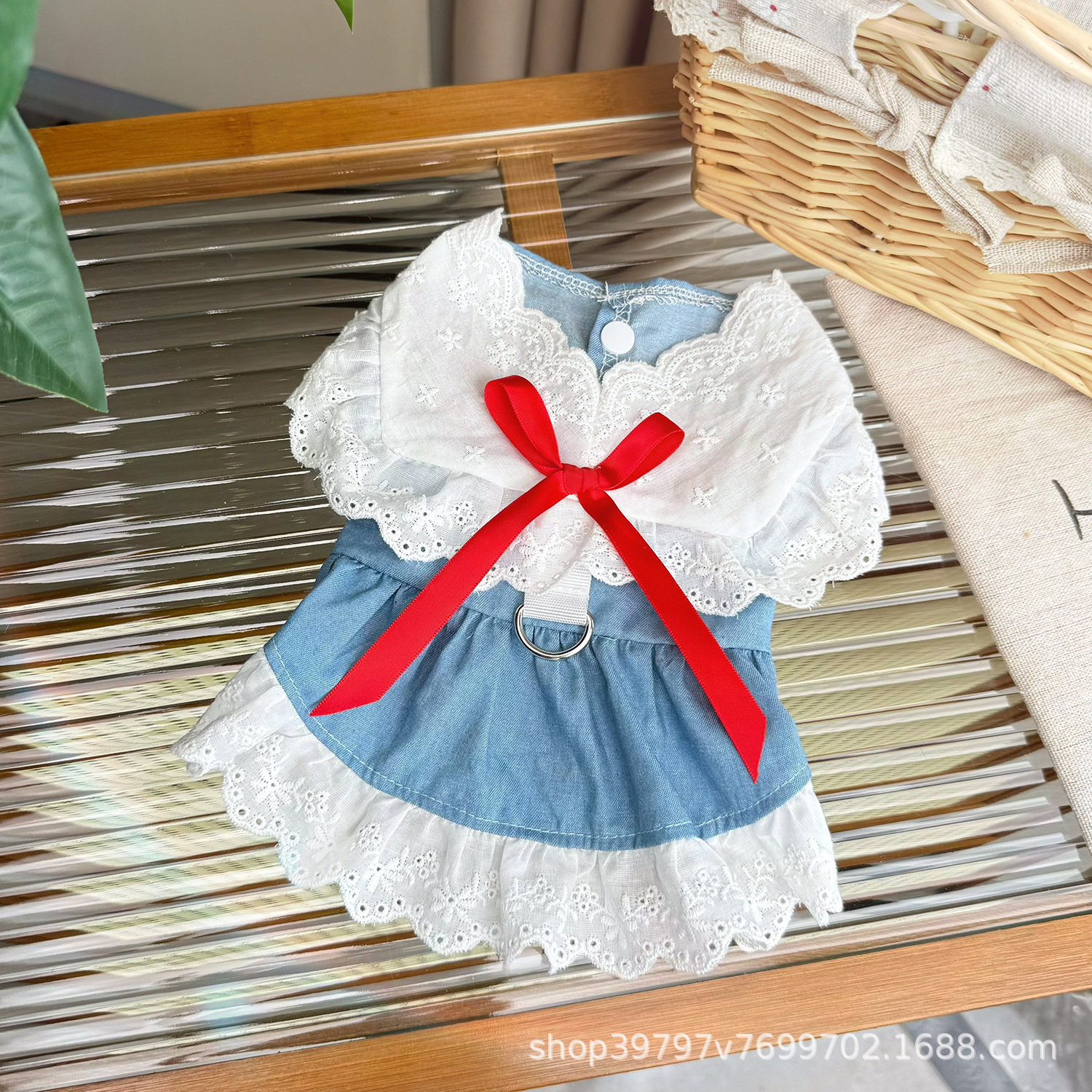 봄과 여름 애완 동물 의류 레이스 데님 공주 원피스 곰 작은 개 치마 국경 도매 고양이 옷스토어 가기