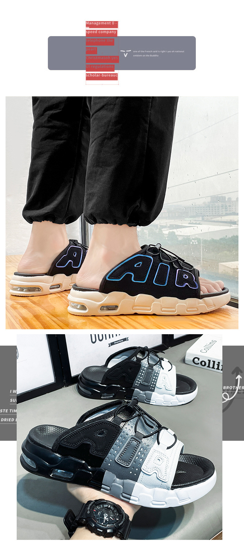 남성용 슬리퍼, 여름 트렌디 브랜드, 외출용, 미끄럼 방지, 냄새 방지, 똥 밟는 느낌, 남성용 스포츠 에어쿠션, 두꺼운 밑창, 키높이 비치 샌들스토어 가기