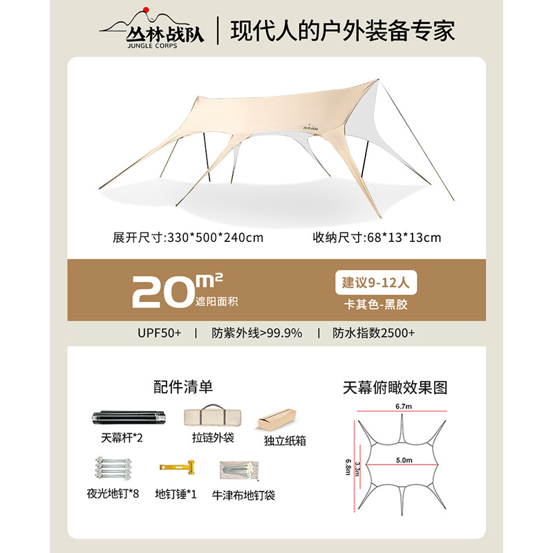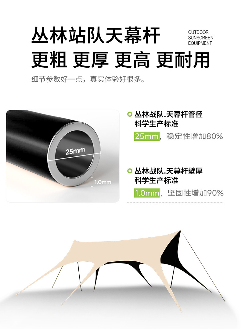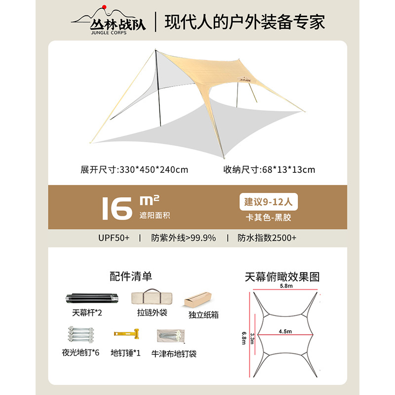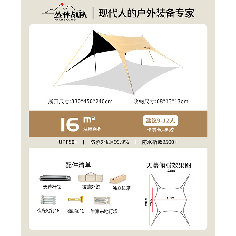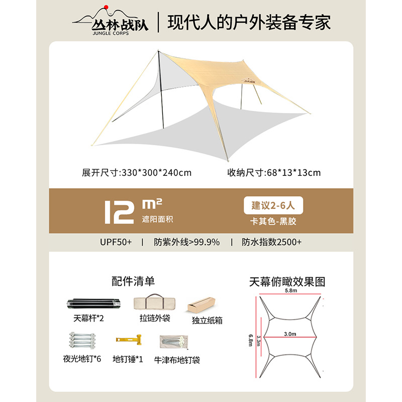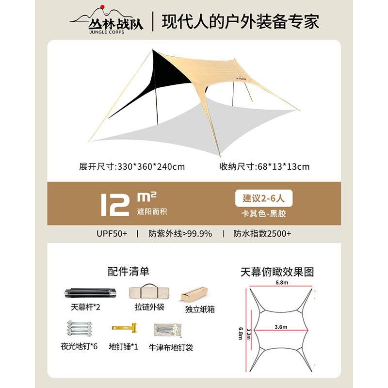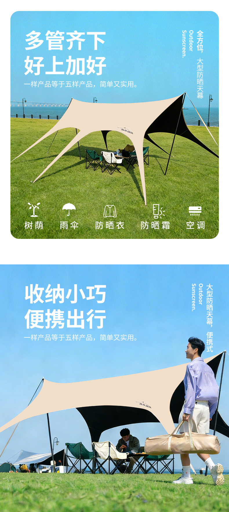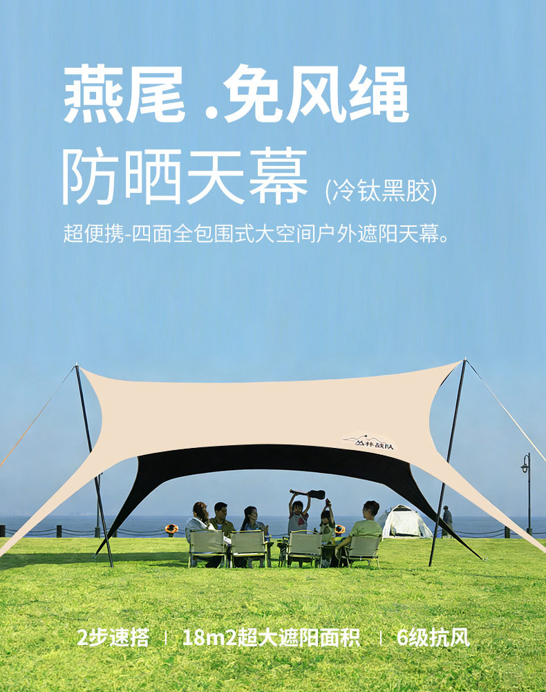 도브 테일 캐노피 두꺼운 검은 고무 선 스크린 텐트 야외 차양 비바람 캠핑 장비 캠핑 피크닉 캐노피