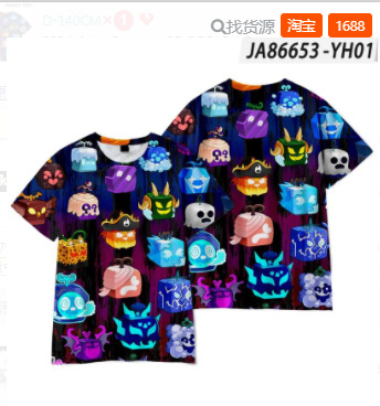 xNew Devil Fruit blox Fruit 3D 디지털 인쇄 국경 간 해외 캐주얼 통기성 루즈 티셔츠 제조업체 판매스토어 가기
