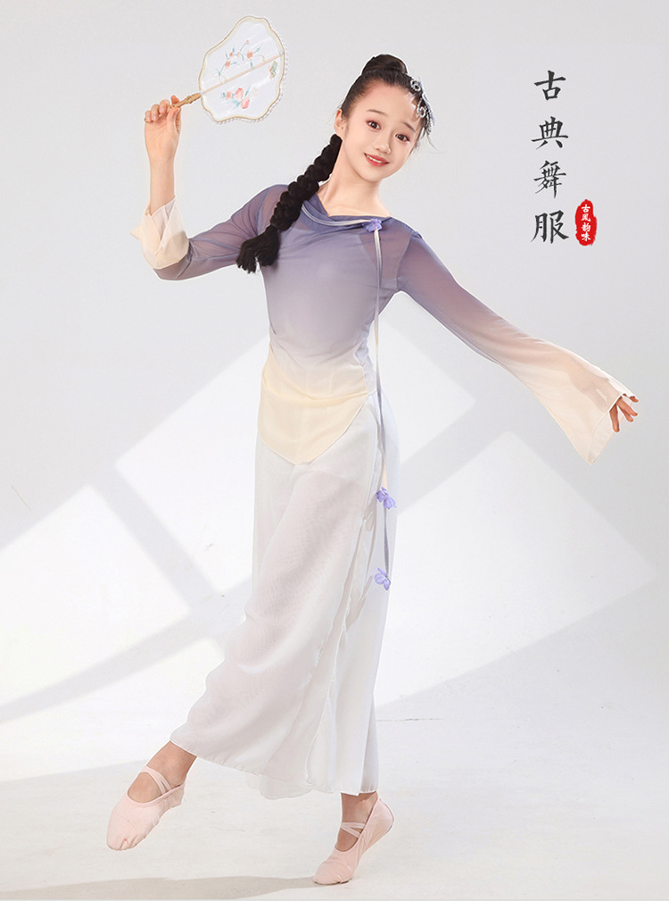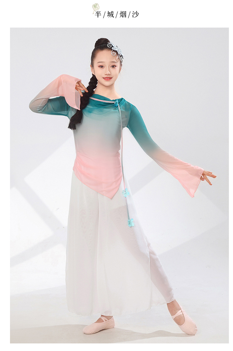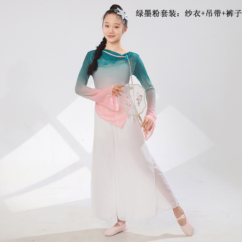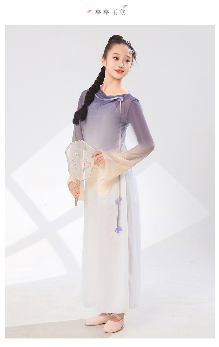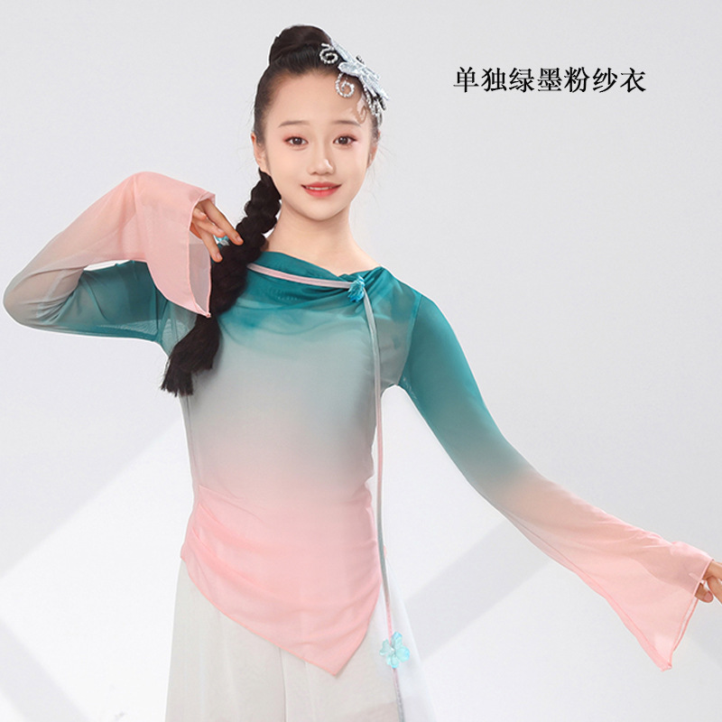 아동용 고전 무용 공연 의상, 거즈, 우아한 탄성 메쉬, 소녀 연습복, 우산 댄스, 팬 댄스, 중국 스타일 및 고대 스타일스토어 가기