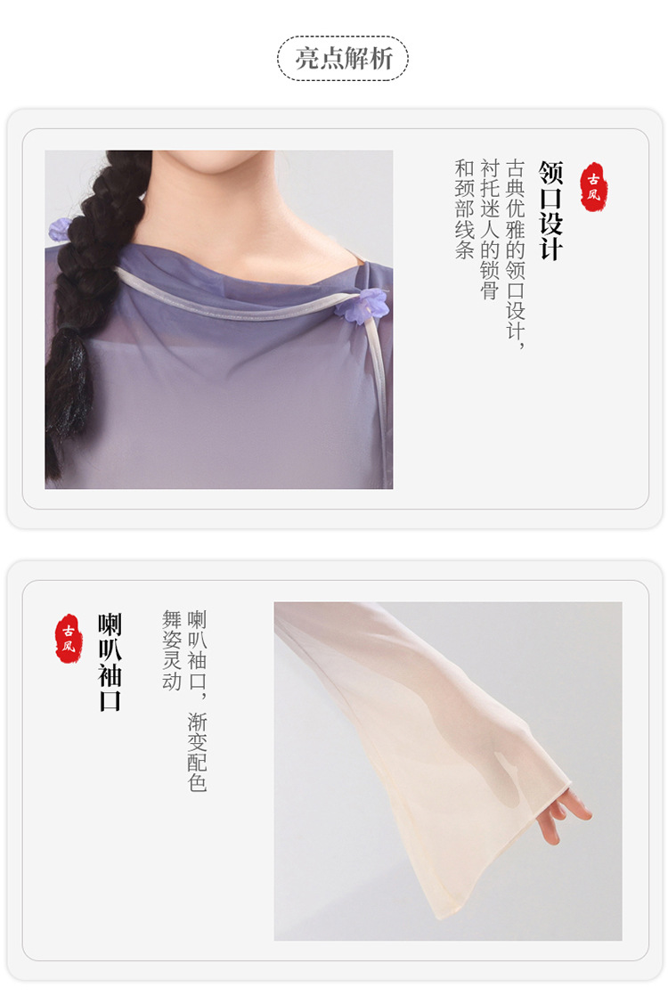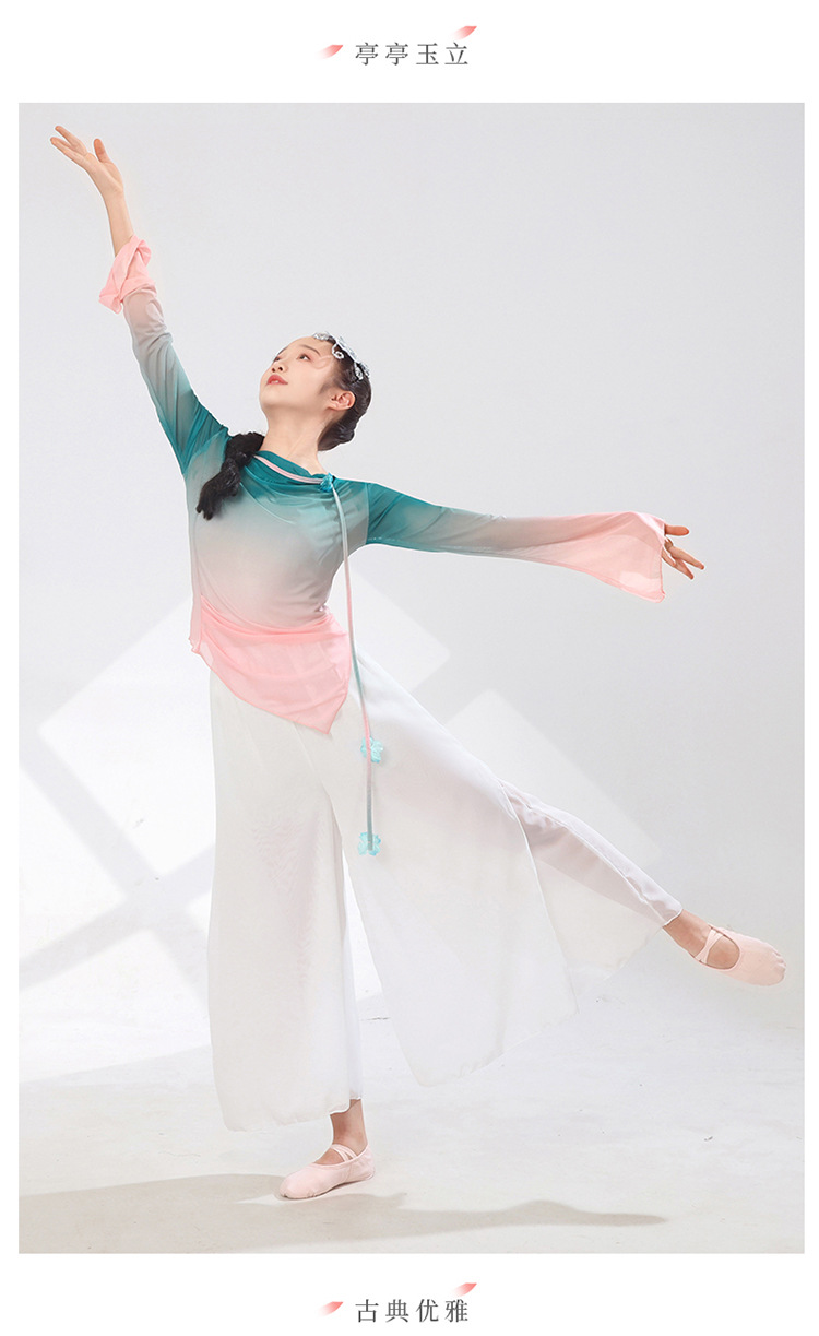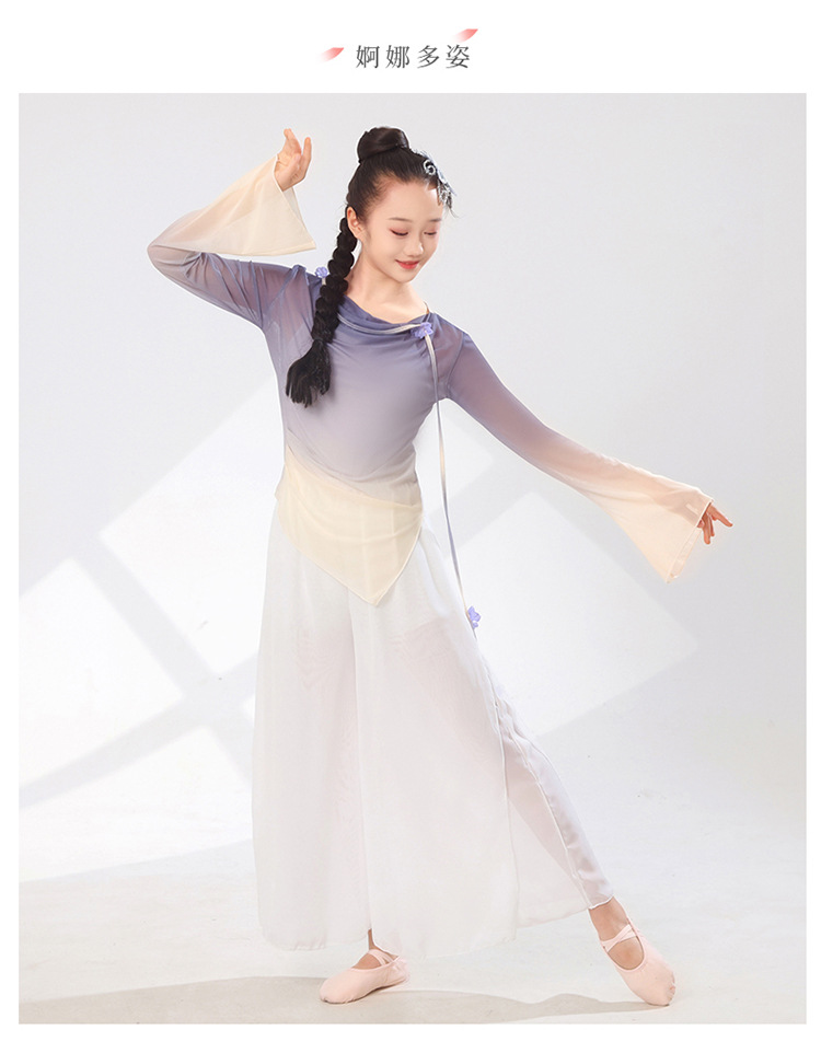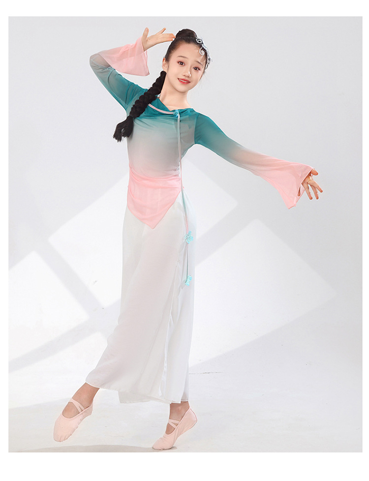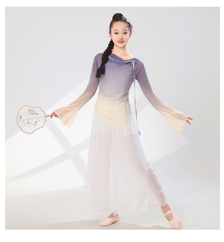 아동용 고전 무용 공연 의상, 거즈, 우아한 탄성 메쉬, 소녀 연습복, 우산 댄스, 팬 댄스, 중국 스타일 및 고대 스타일스토어 가기