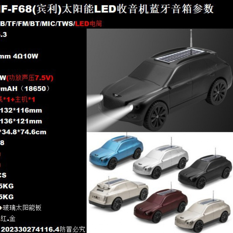 HF-F68 자동차 모델 블루투스 오디오 장식품 자동차 스피커 태양 블루투스 스피커 아프리카 새로운 스타일스토어 가기