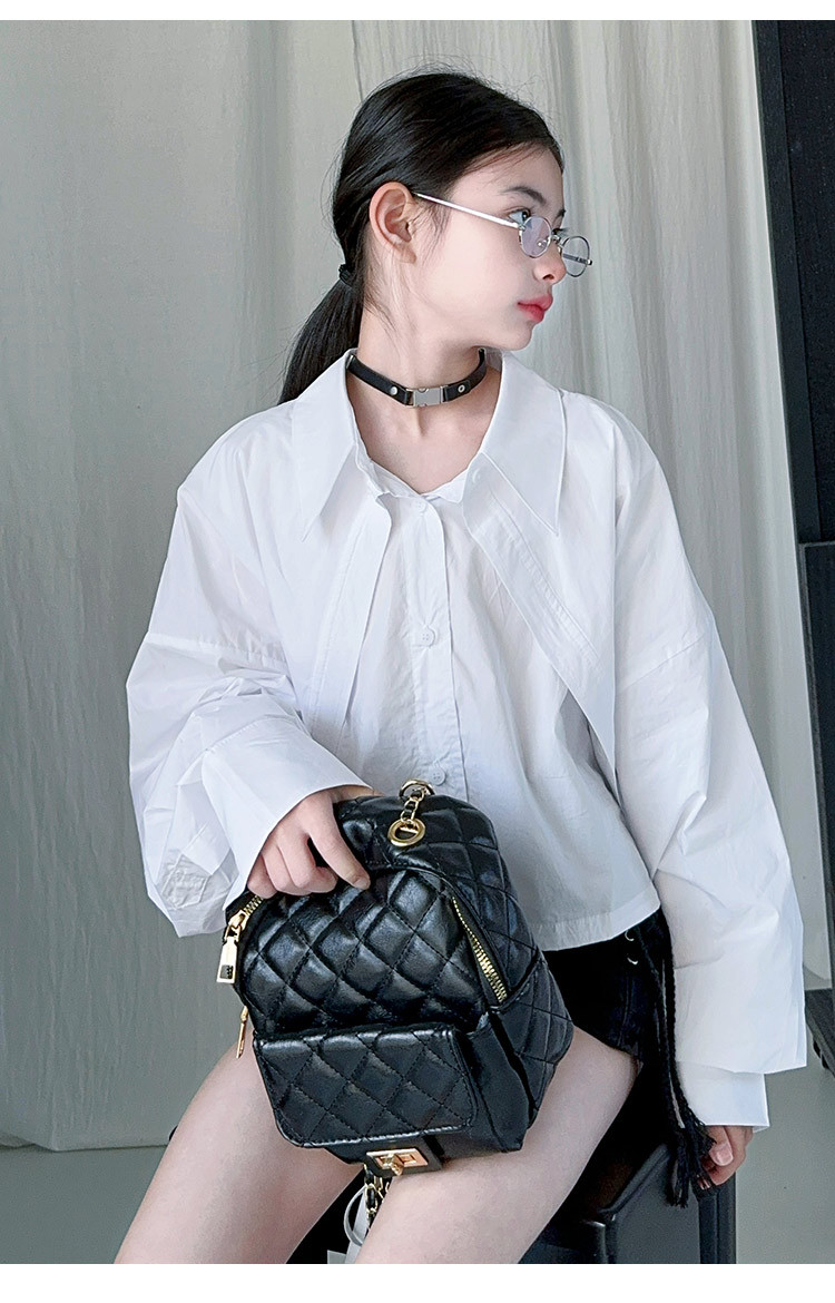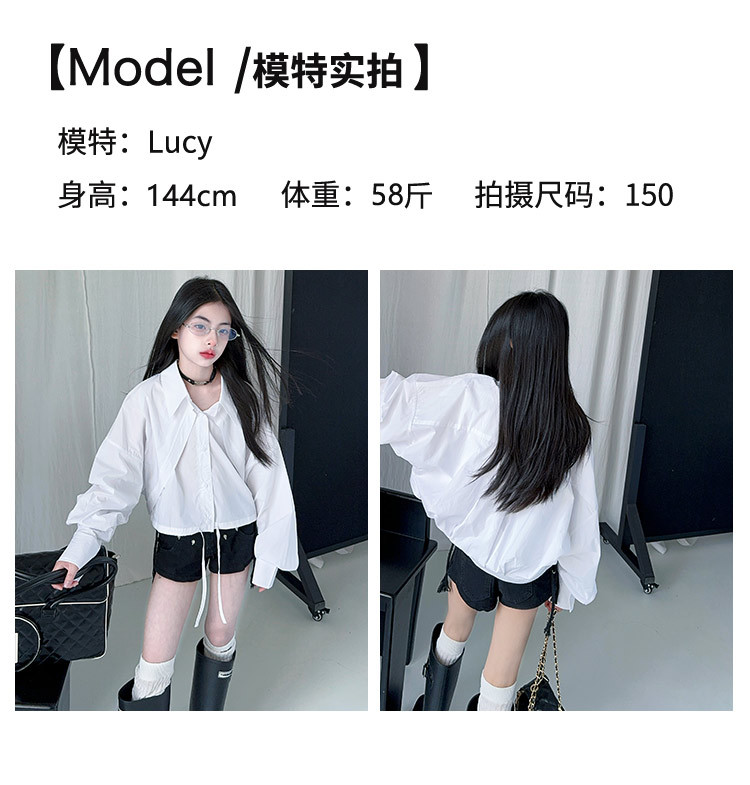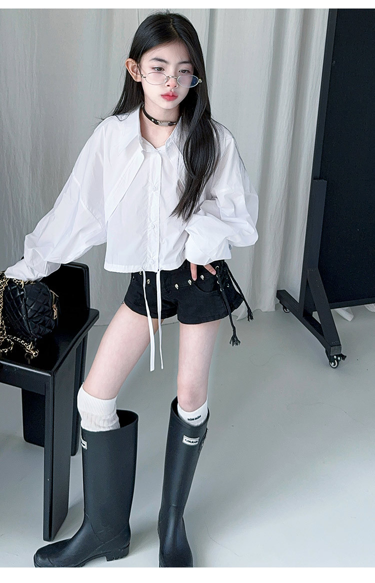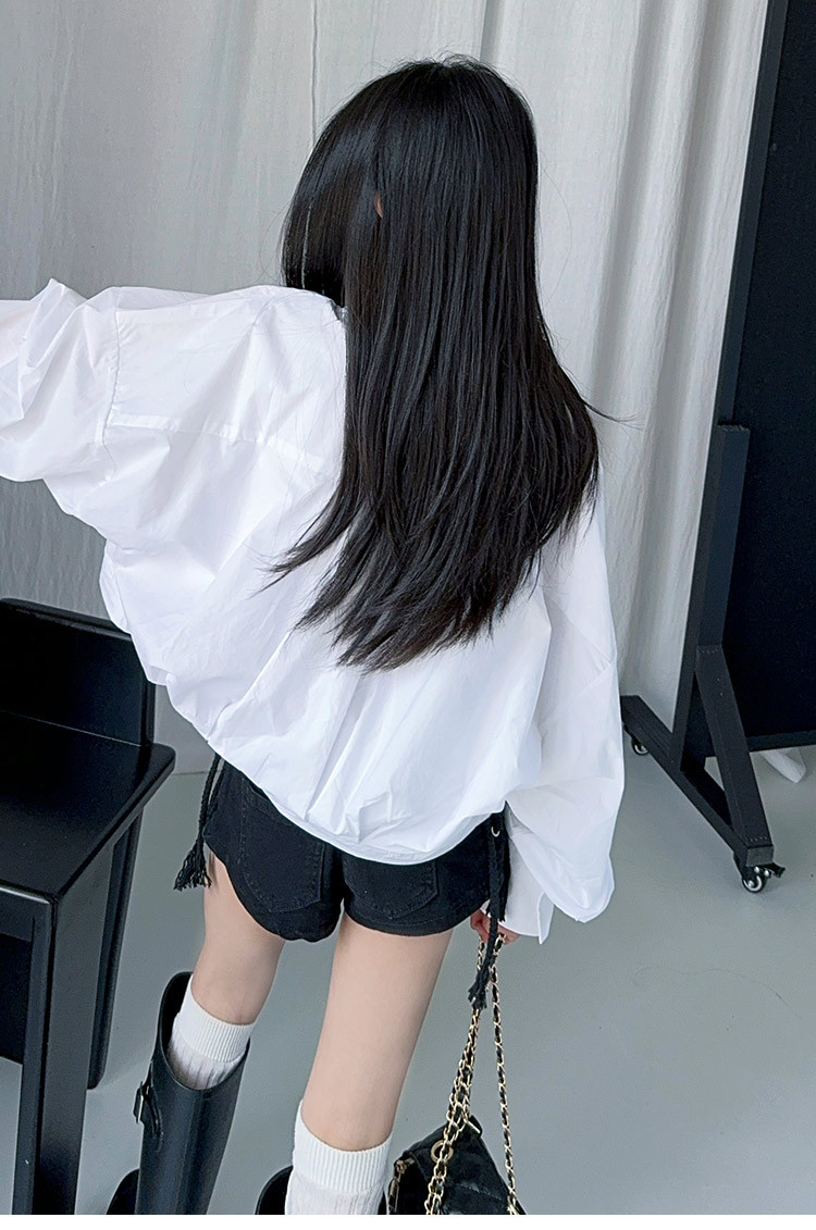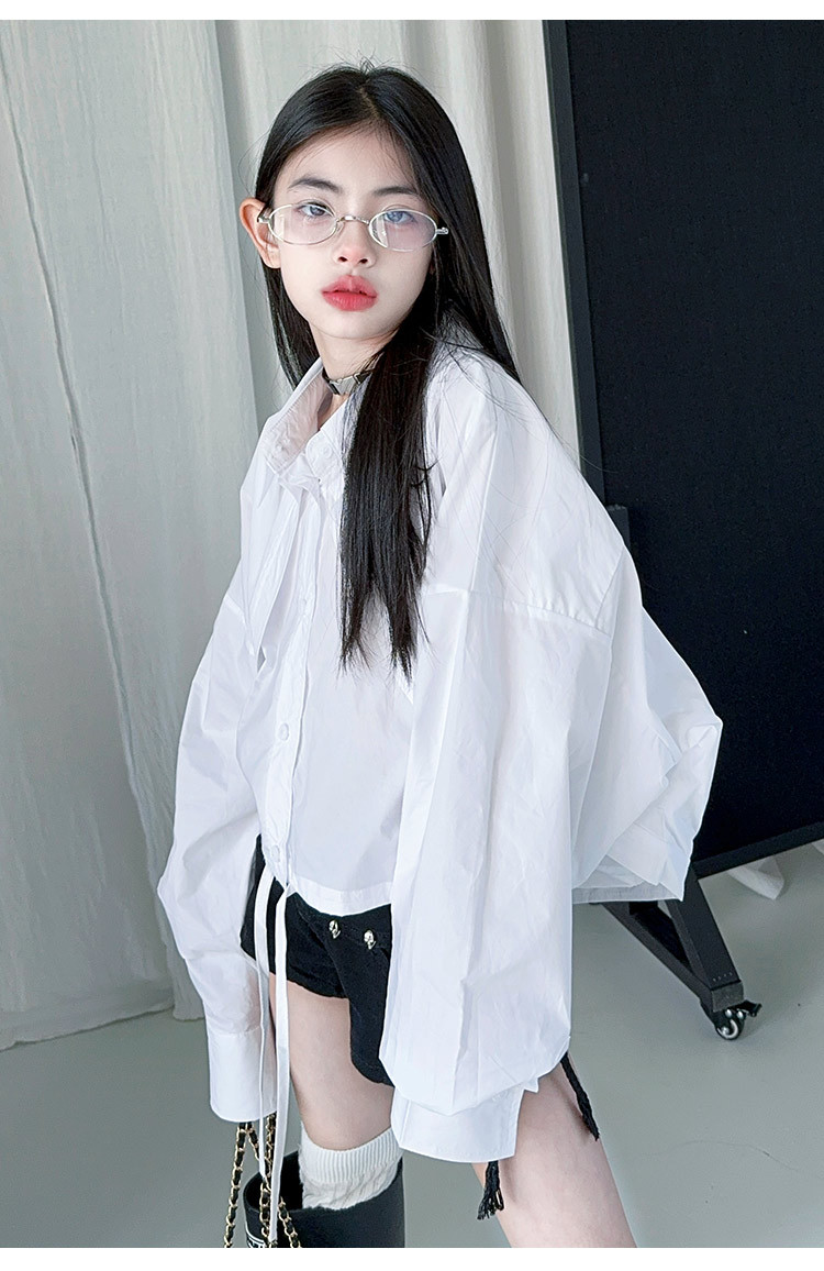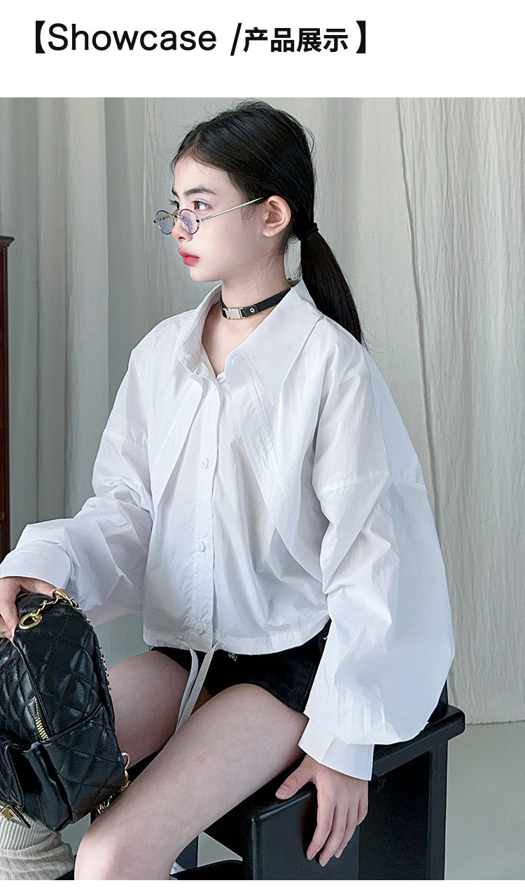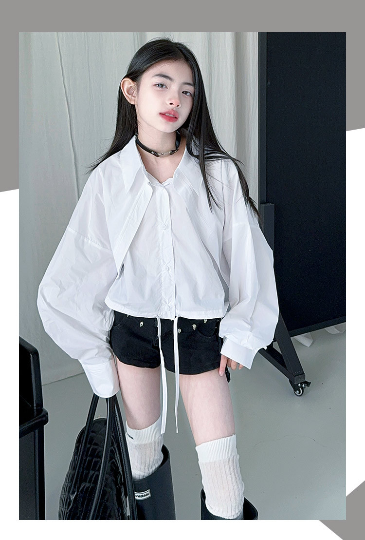 소녀 긴팔 셔츠 2025 새 여름 어린 소녀 가짜 투피스 셔츠 어린이 옷깃 달콤한 쿨 쇼트 코트