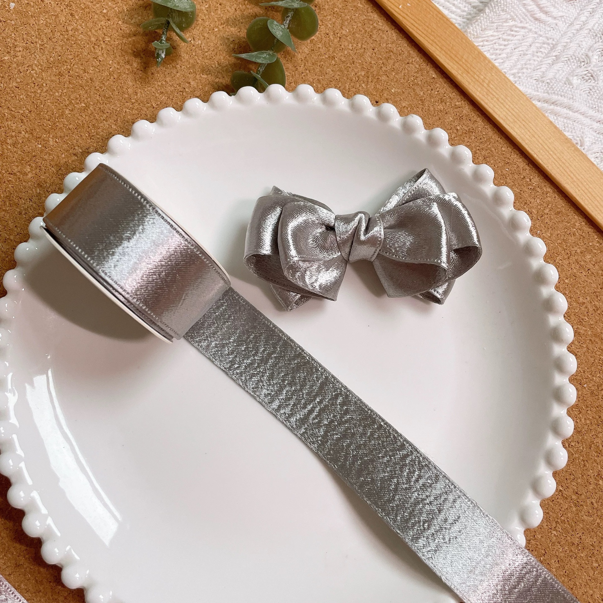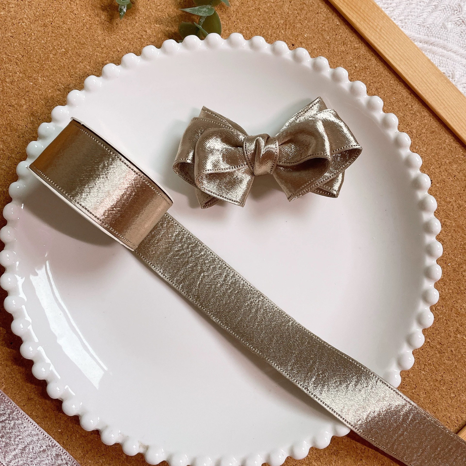 2.5CM 양면 반짝이 벨벳 골드 및 실버 리본 꽃 선물 DIY 활 리본 의류 헤어 액세서리 포장 재료스토어 가기