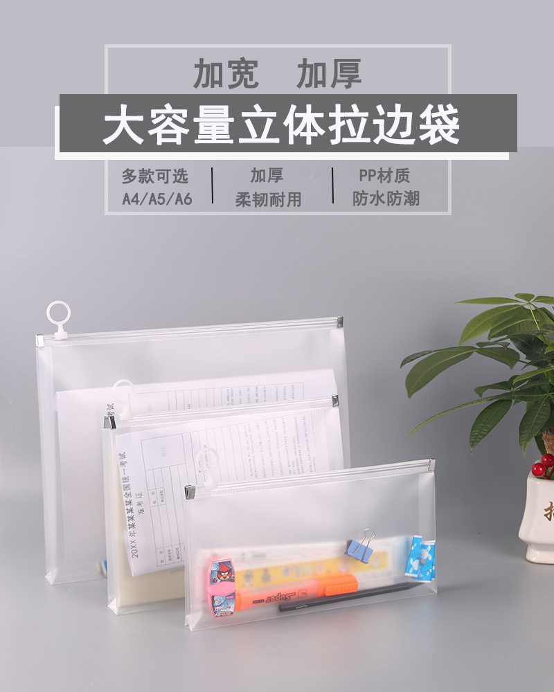 A4 스테레오 지퍼 파일 가방 A5A6 두꺼운 PP 플라스틱 투명 대용량 저장 가방 학생 시험 연필 가방스토어 가기