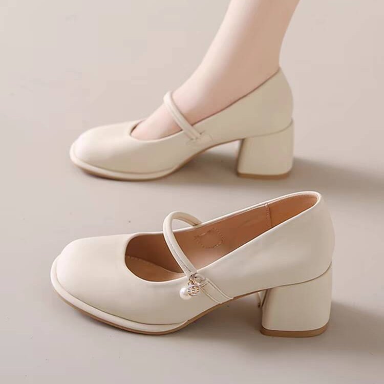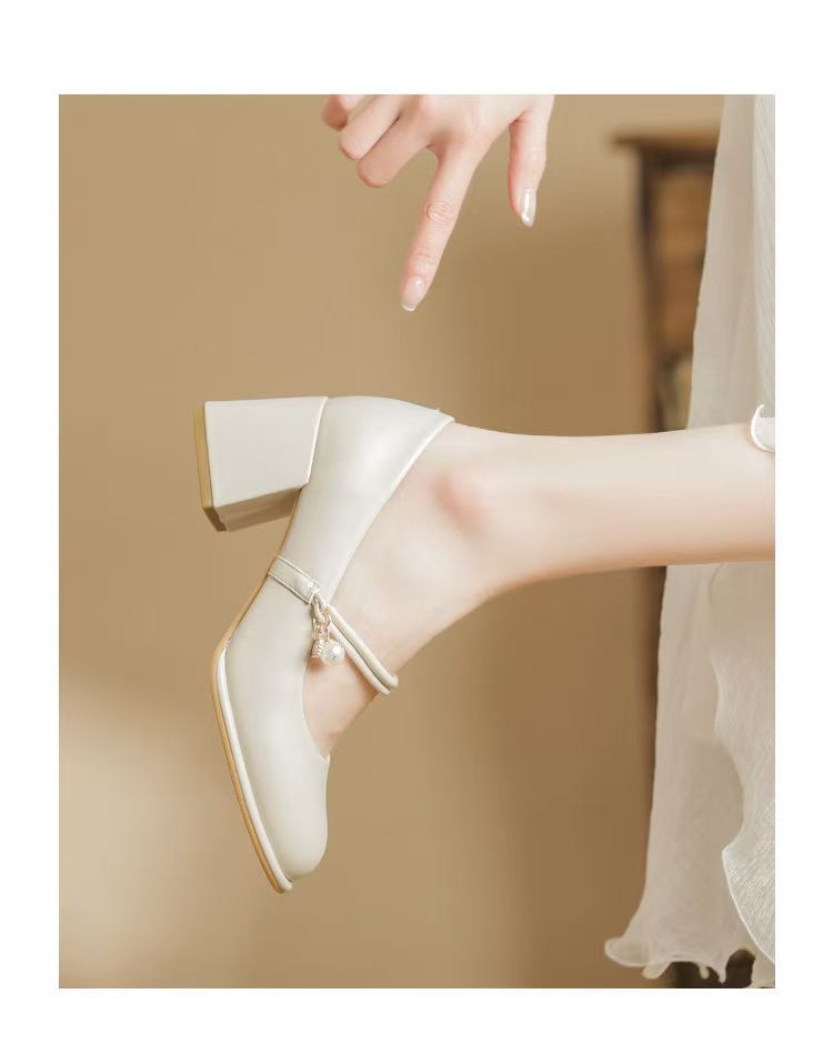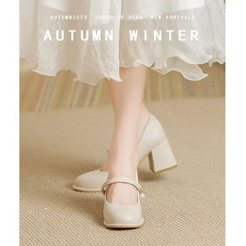 메리 제인 여성 신발 2025 새로운 봄, 가을 패션 다목적 프랑스 중간 두꺼운 굽 싱글 신발 스커트와 부드러운 하이힐스토어 가기