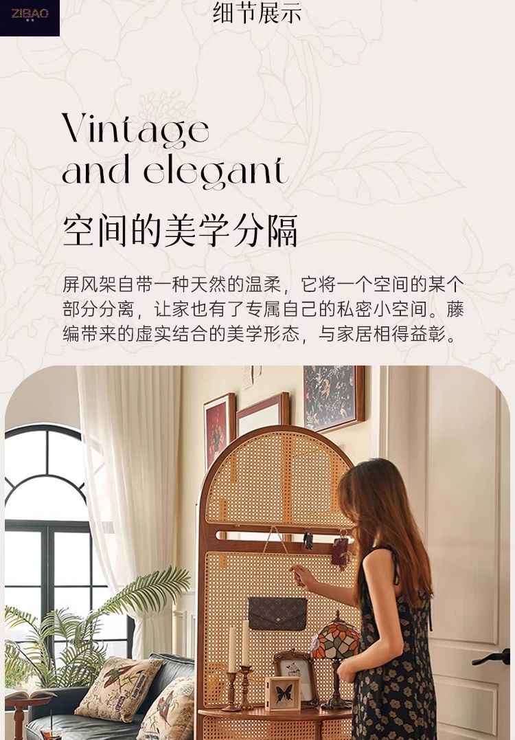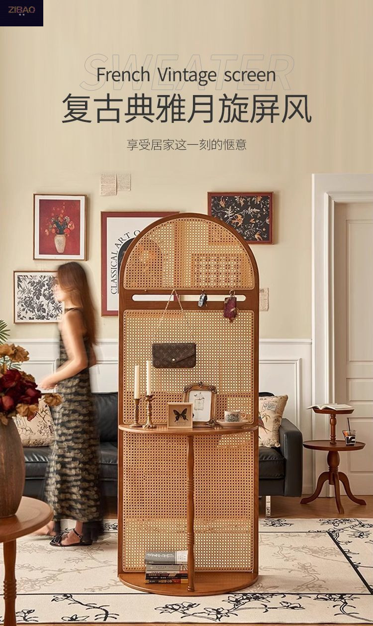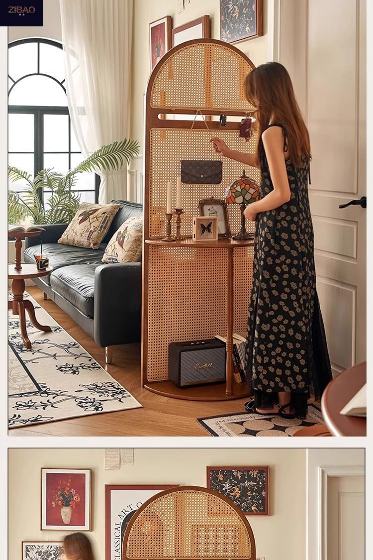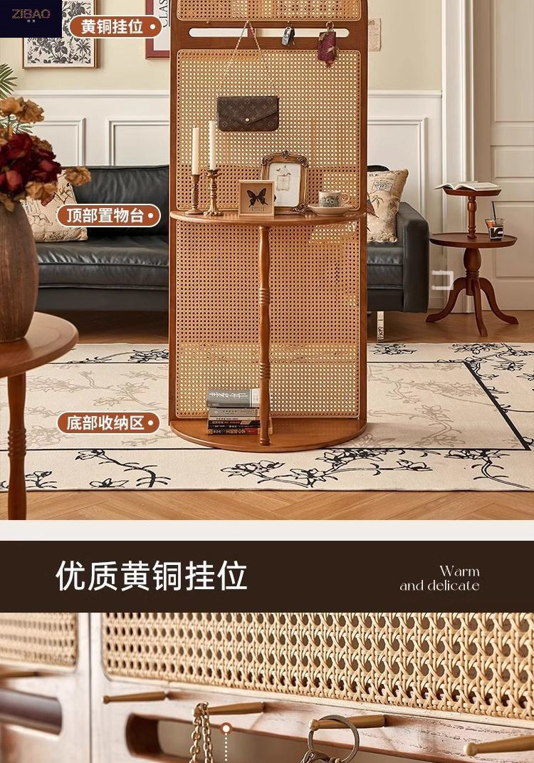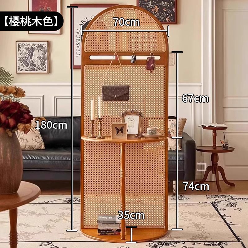 입구 캐비닛 현대 간단한 저장 랙 프랑스 스타일 복고풍 단단한 나무 등나무 스크린 파티션 거실 입구 문스토어 가기