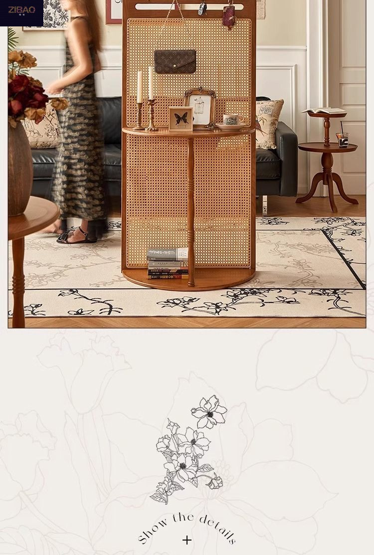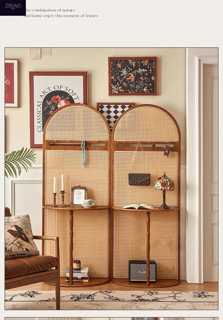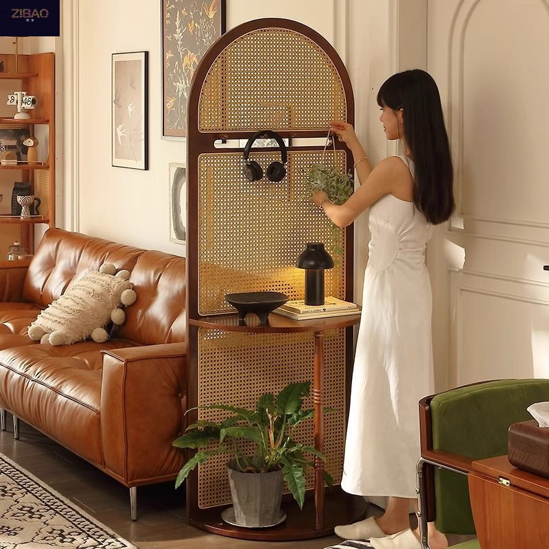 입구 캐비닛 현대 간단한 저장 랙 프랑스 스타일 복고풍 단단한 나무 등나무 스크린 파티션 거실 입구 문