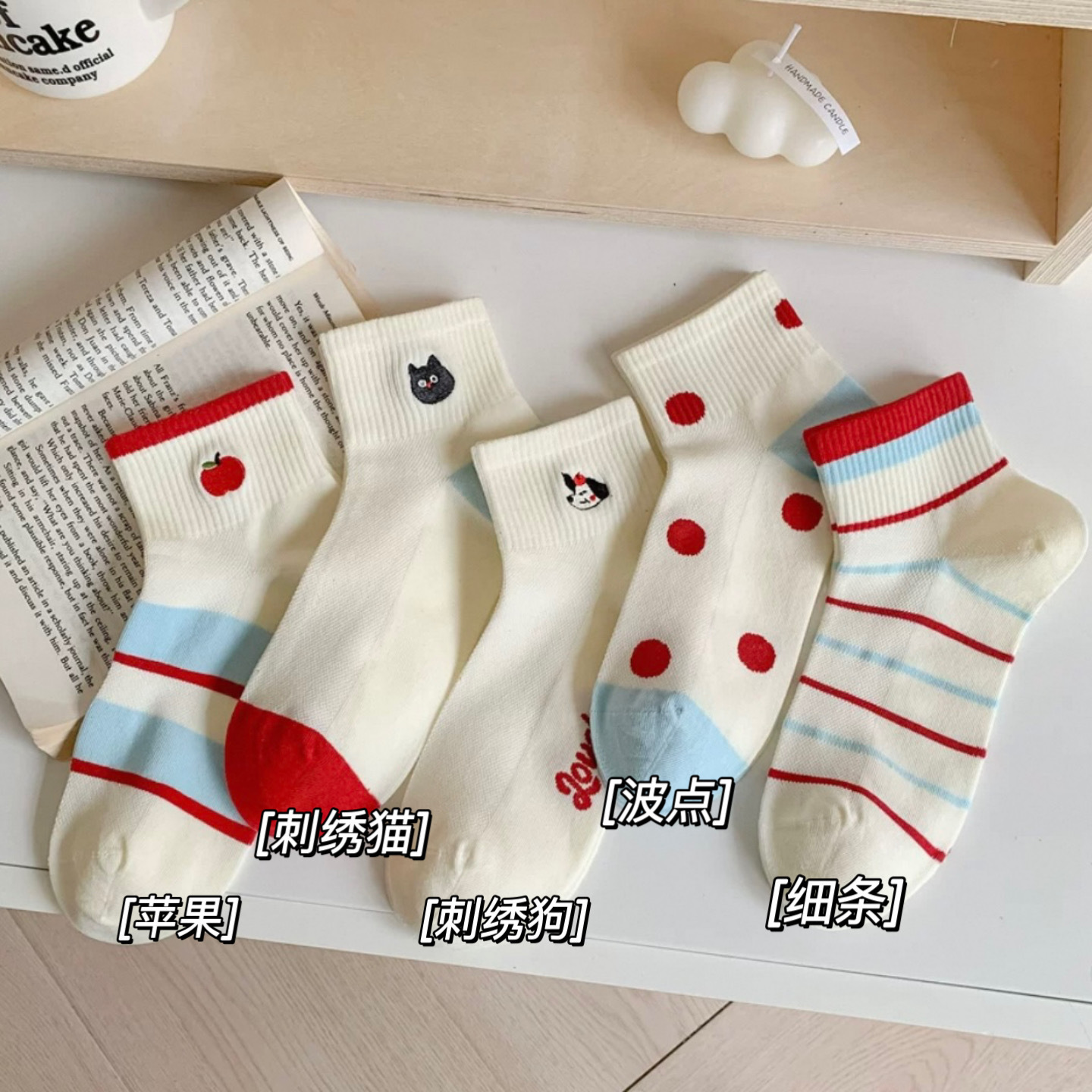 봄과 여름 양말 여성의 귀여운 양말 만화 자수 양말 일본 강아지 줄무늬 양말면 도매
