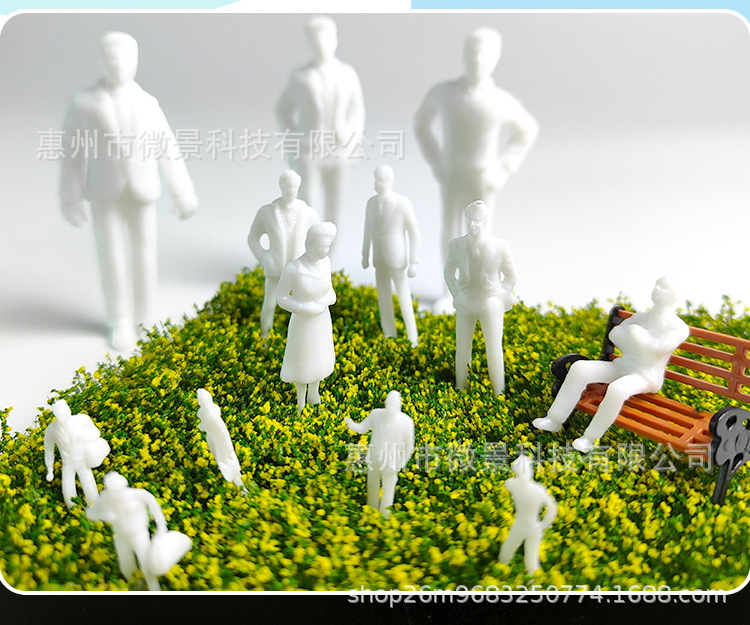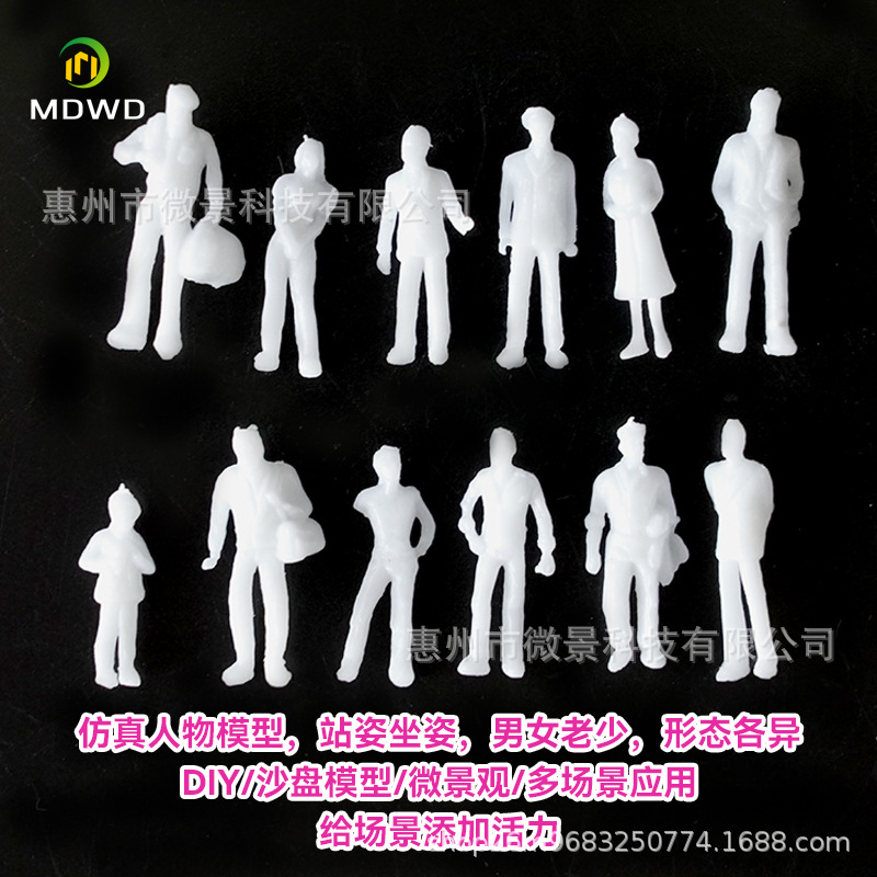 미니 인형 모델, 미니어처 풍경 시뮬레이션 캐릭터, 흰색 인형 건물 모래 테이블 장면, 수제 재료