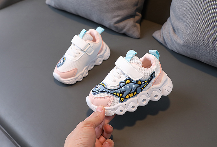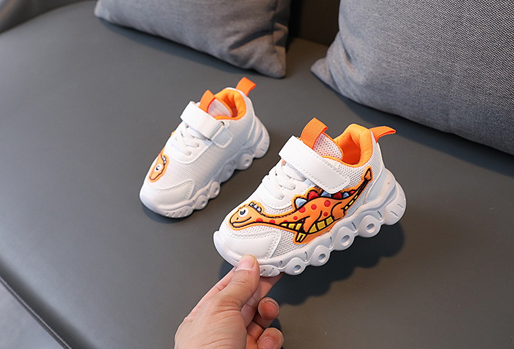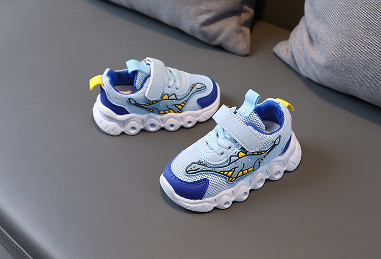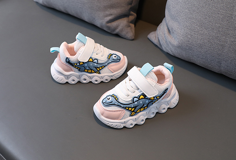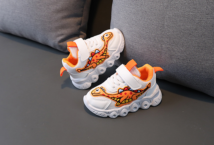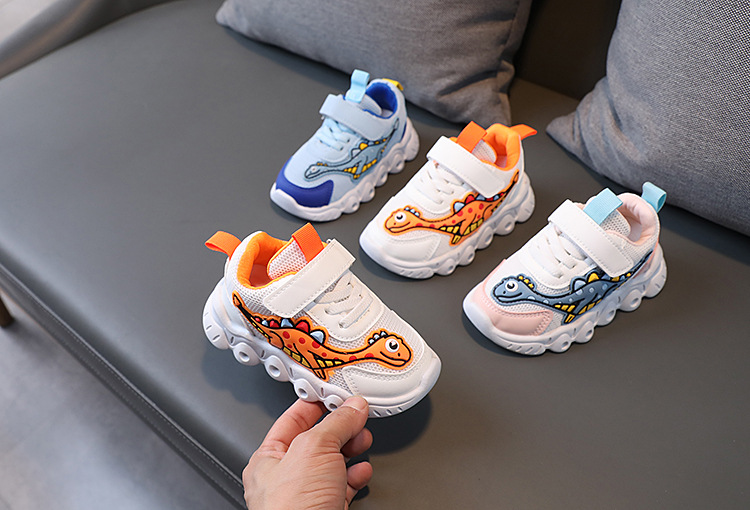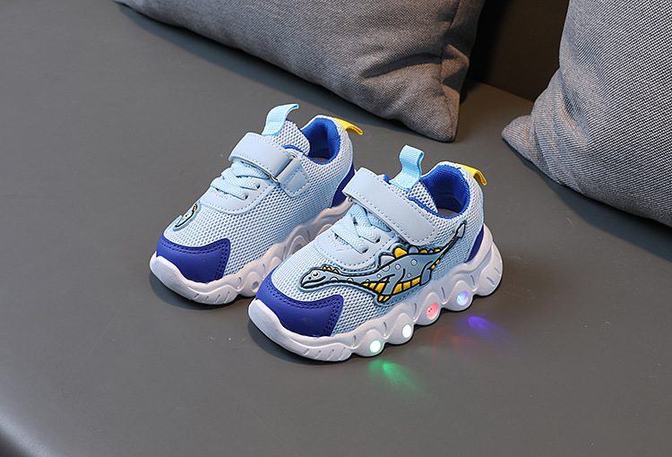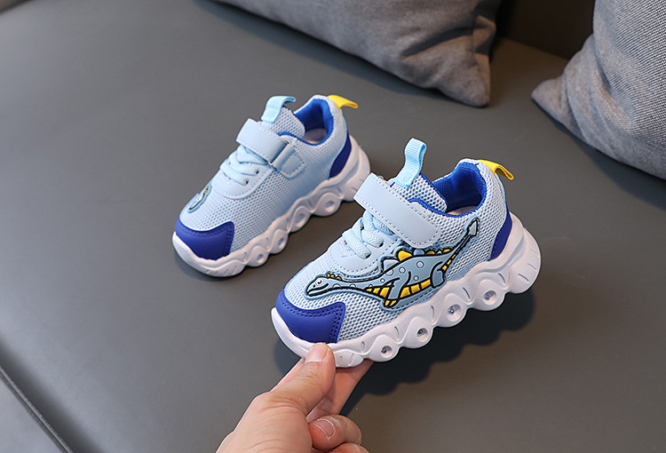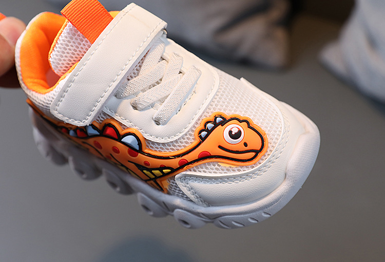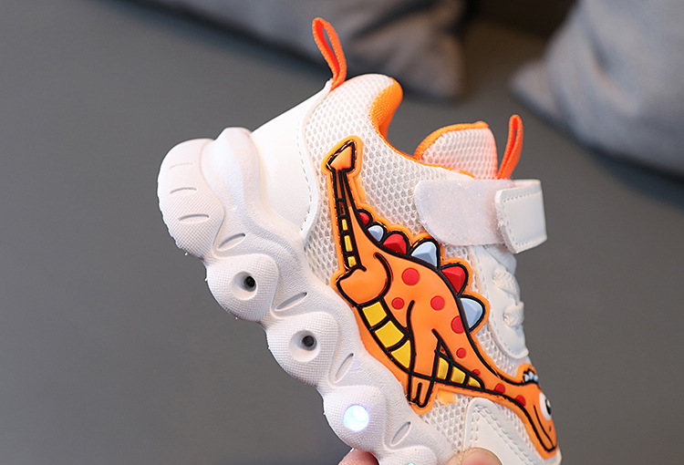 남학생과 여학생을 위한 인기 있는 공룡 운동화, LED 조명, 봄과 가을 새로운 메쉬 통기성 탄성 슬립온 아동화스토어 가기
