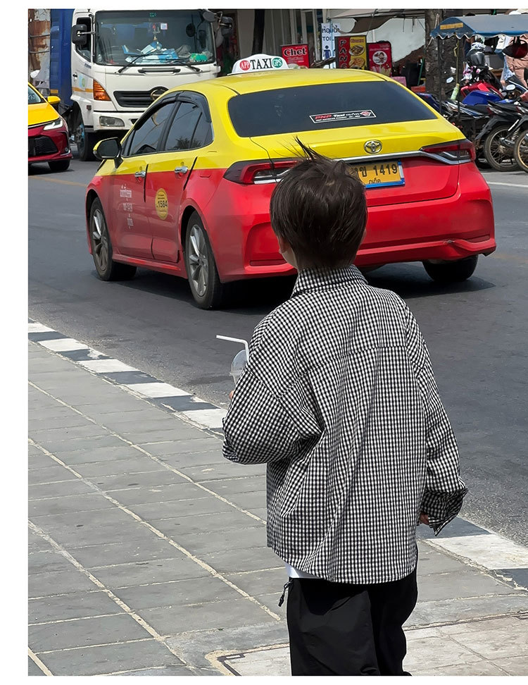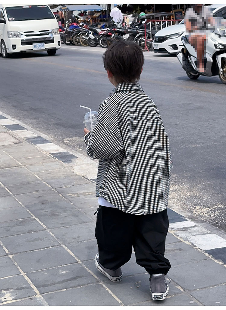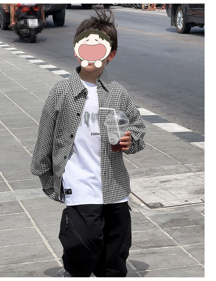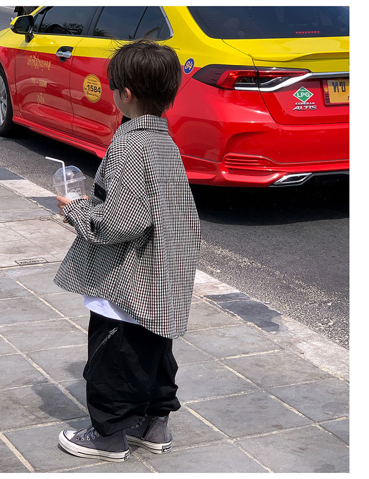 봄 서양식 아동복 2025 새로운 어린이 셔츠 소년 봄 셔츠 격자 무늬 중 큰 아이 소년 잘 생긴 유행스토어 가기