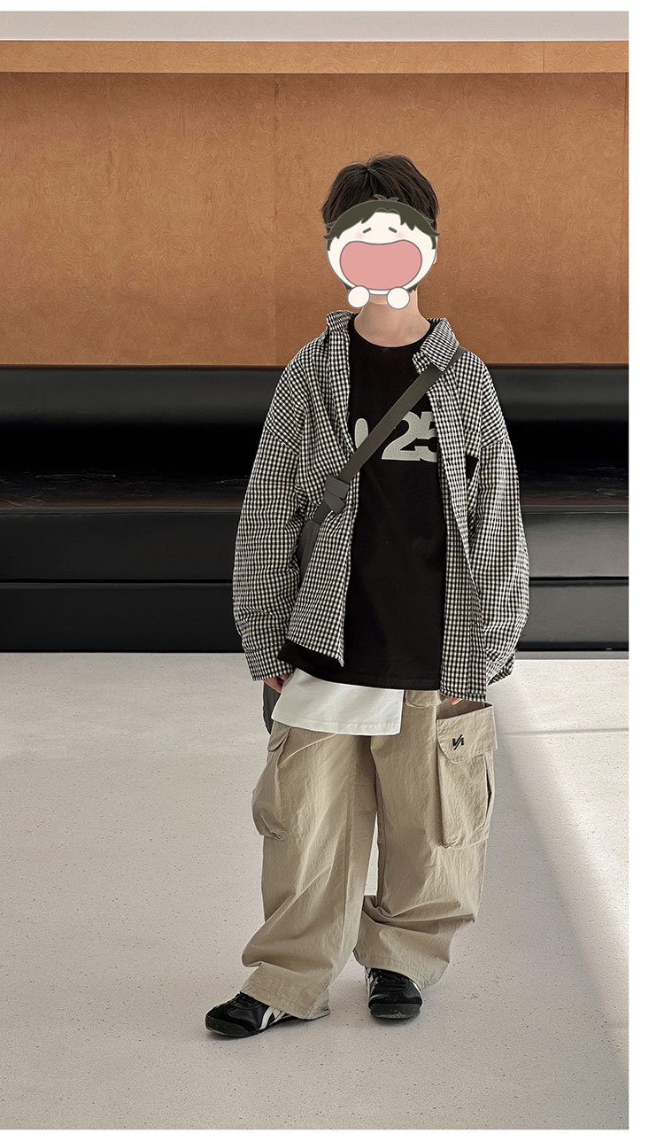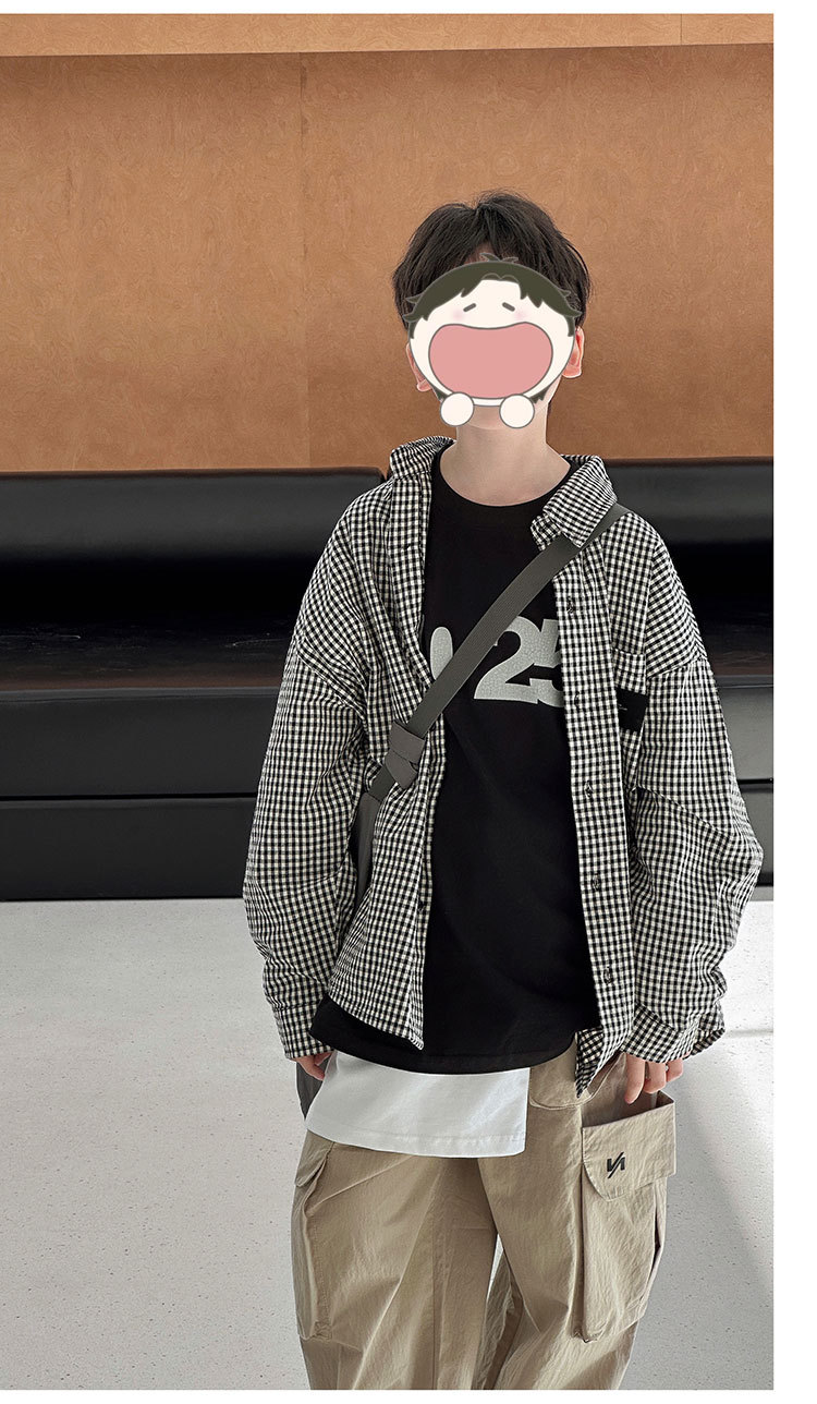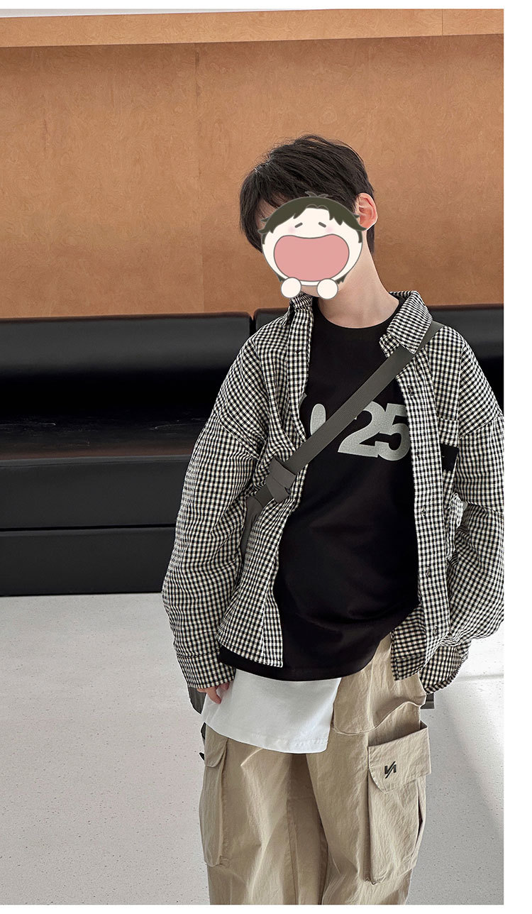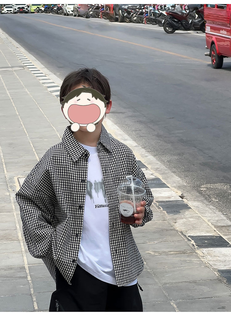 봄 서양식 아동복 2025 새로운 어린이 셔츠 소년 봄 셔츠 격자 무늬 중 큰 아이 소년 잘 생긴 유행