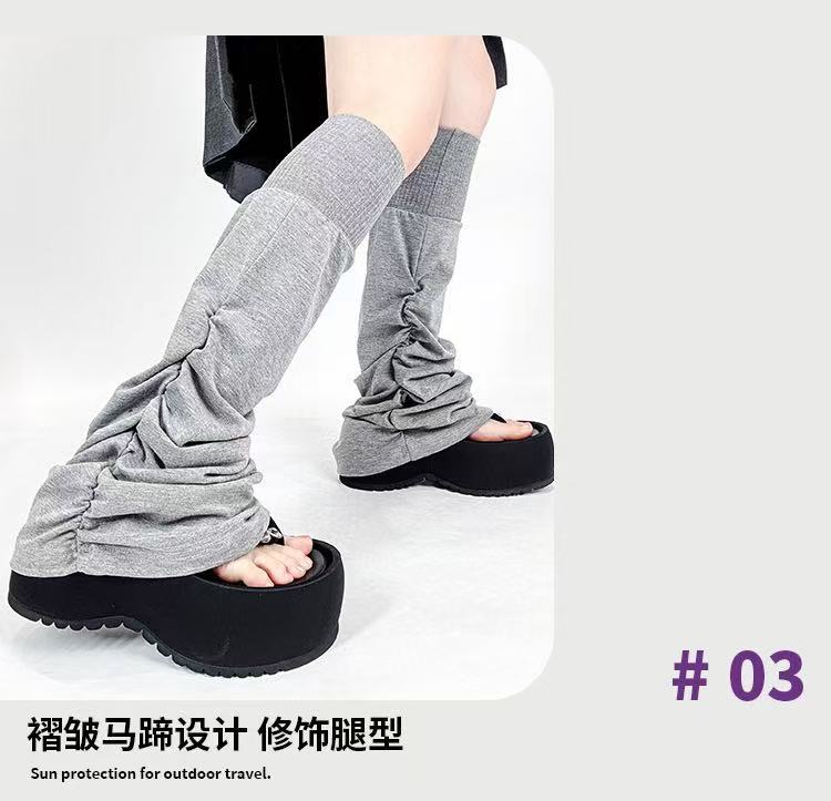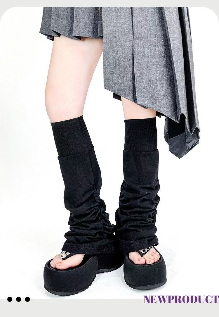봄 여름 얇은 양말 여성용 Y2K 일본식 게으른 스타킹 트럼펫 틈새 유행 독특한 주름 다리 커버스토어 가기