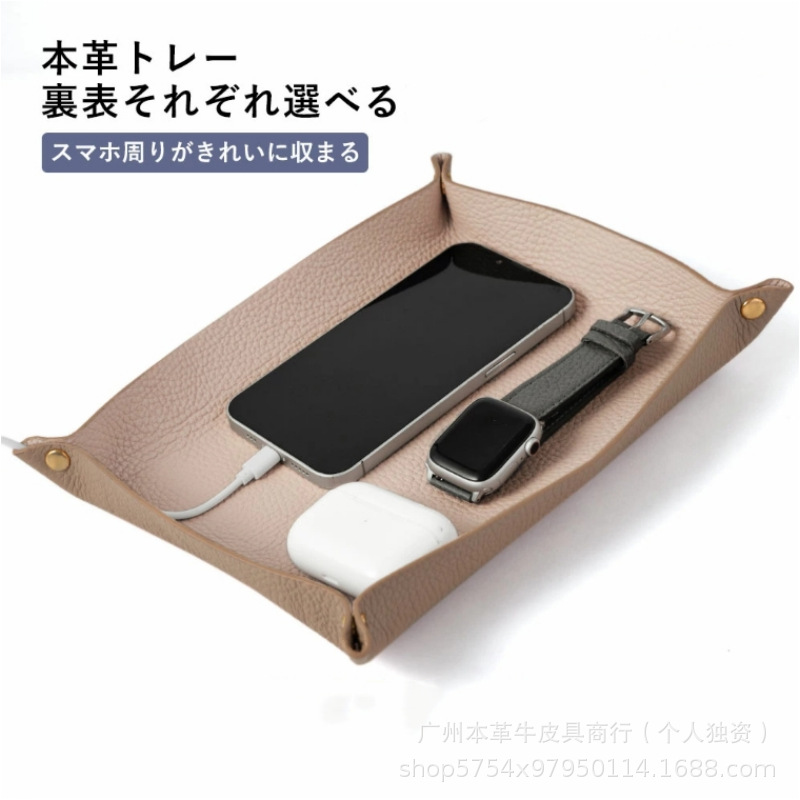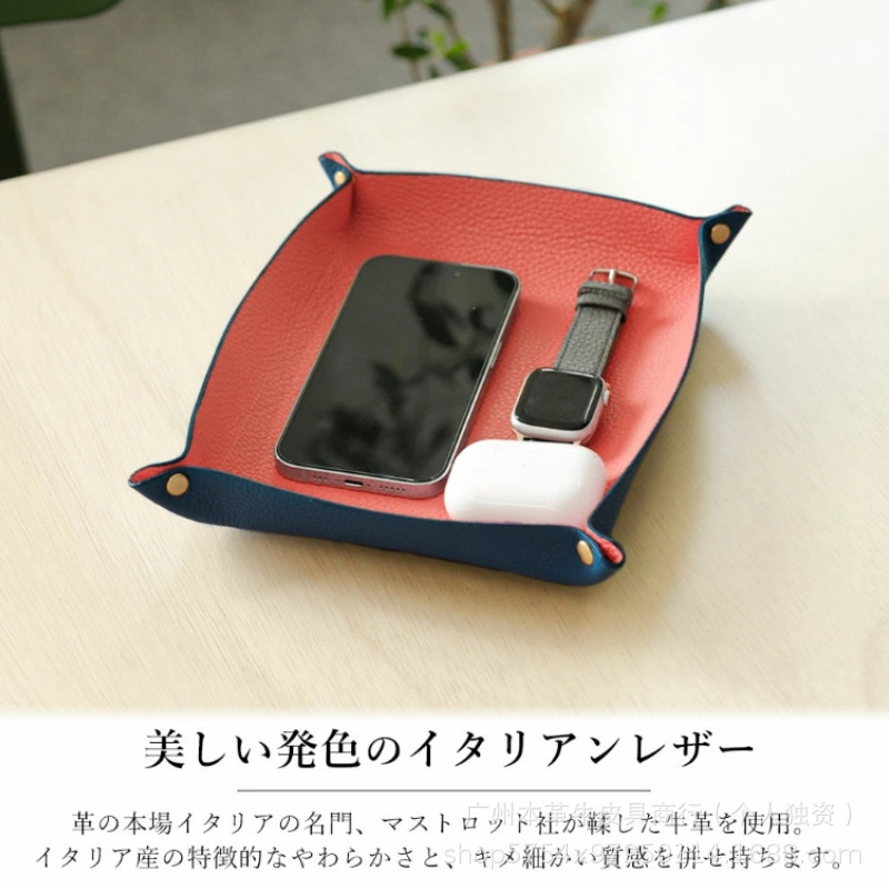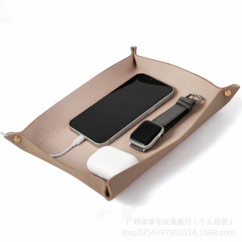 국경 간 1층 소가죽 페블 패턴 가정용 트레이 보관함 일본식 가죽 가정용 데스크탑 잡화 보관함