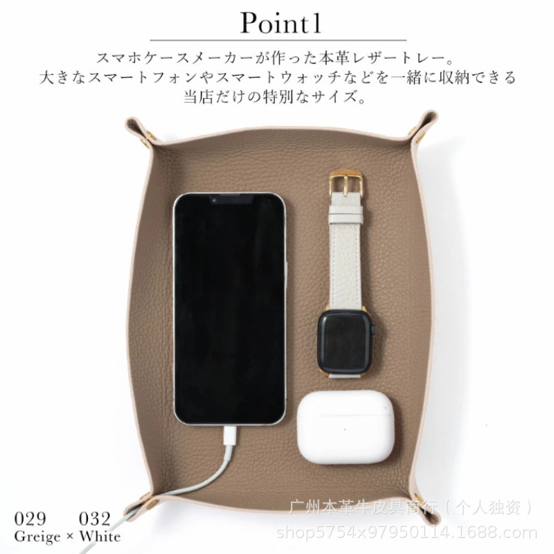 국경 간 1층 소가죽 페블 패턴 가정용 트레이 보관함 일본식 가죽 가정용 데스크탑 잡화 보관함스토어 가기