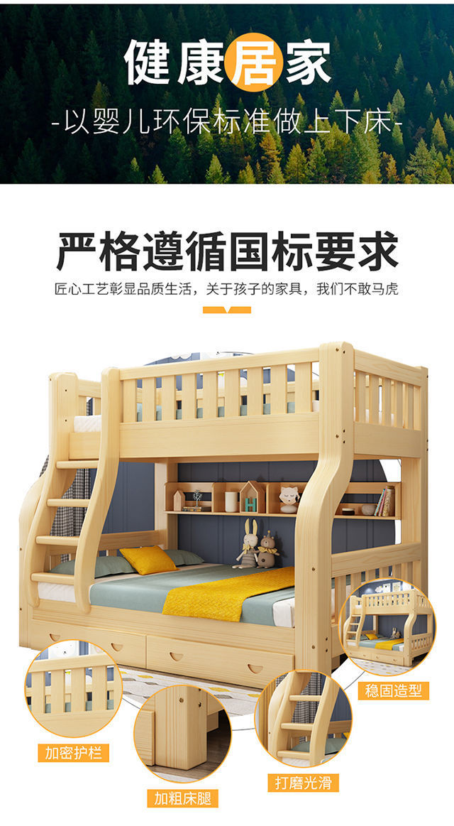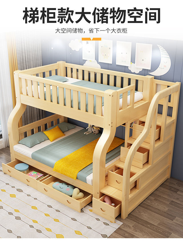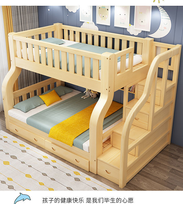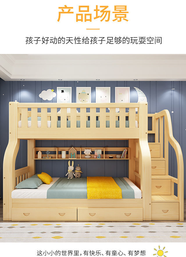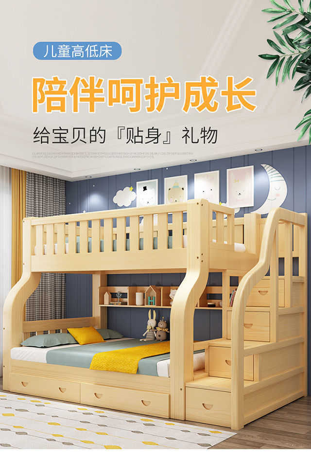 모든 단단한 나무 어린이 침대 침대 침대 어머니 침대 성인 성인 엄마와 아이 2 층 높고 낮은 침대 침대 나무 침대 더블 레이어 침대