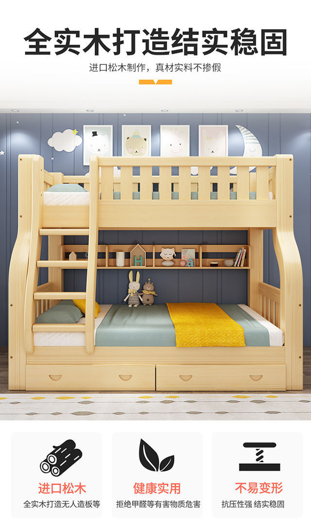 모든 단단한 나무 어린이 침대 침대 침대 어머니 침대 성인 성인 엄마와 아이 2 층 높고 낮은 침대 침대 나무 침대 더블 레이어 침대스토어 가기