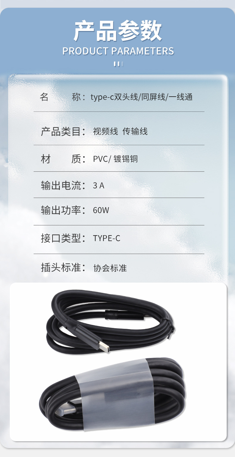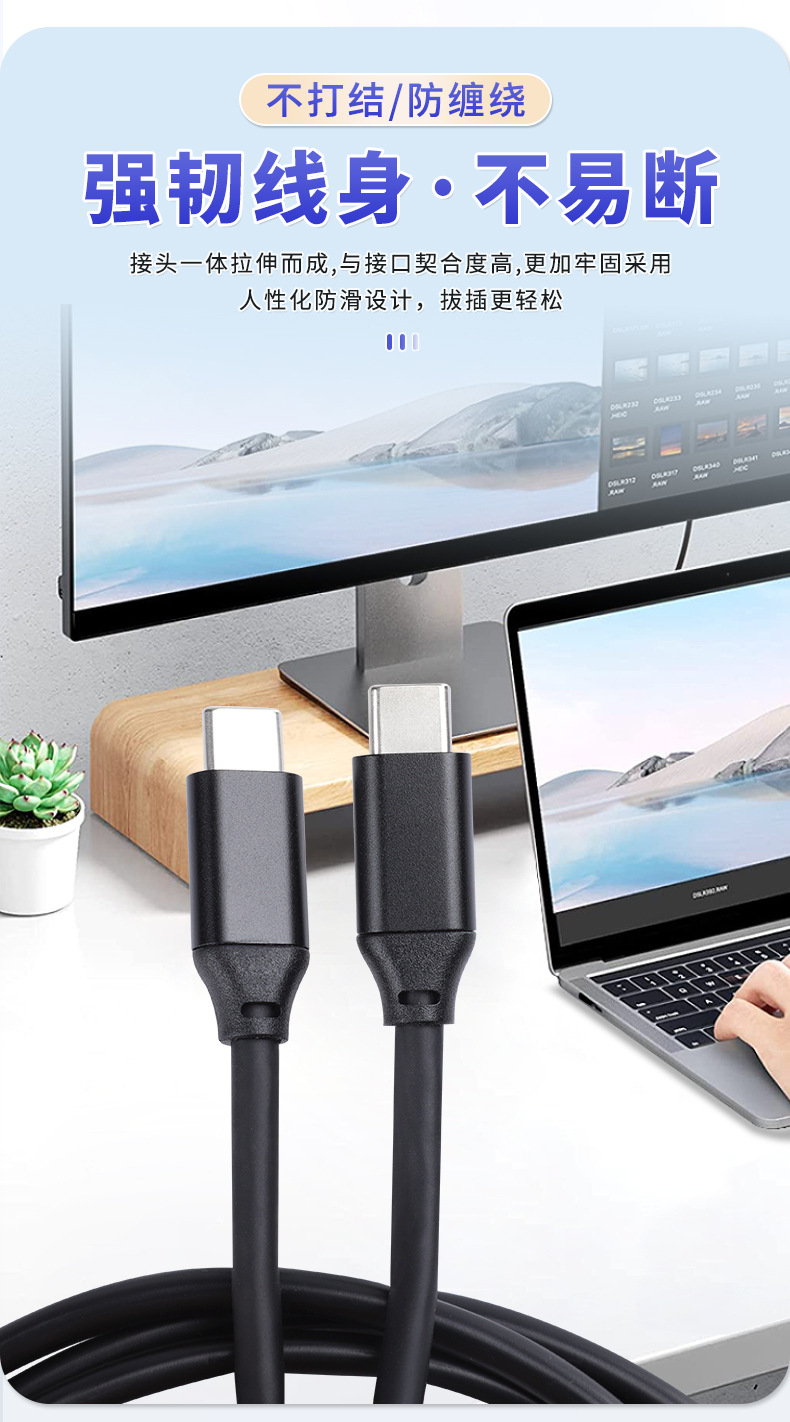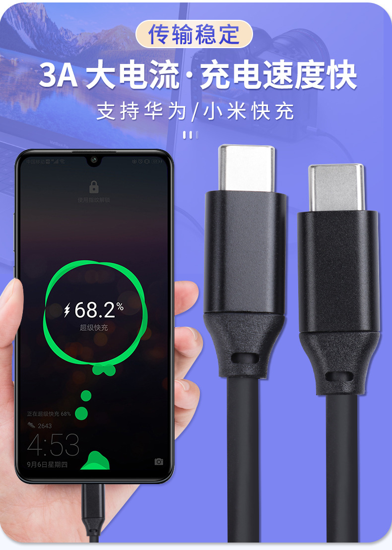 PVC 비디오 전송 라인 유형-c 더블 헤드 라인 스크린 라인 주석 구리 TYPE-C 라인을 통해 하드 디스크 라인