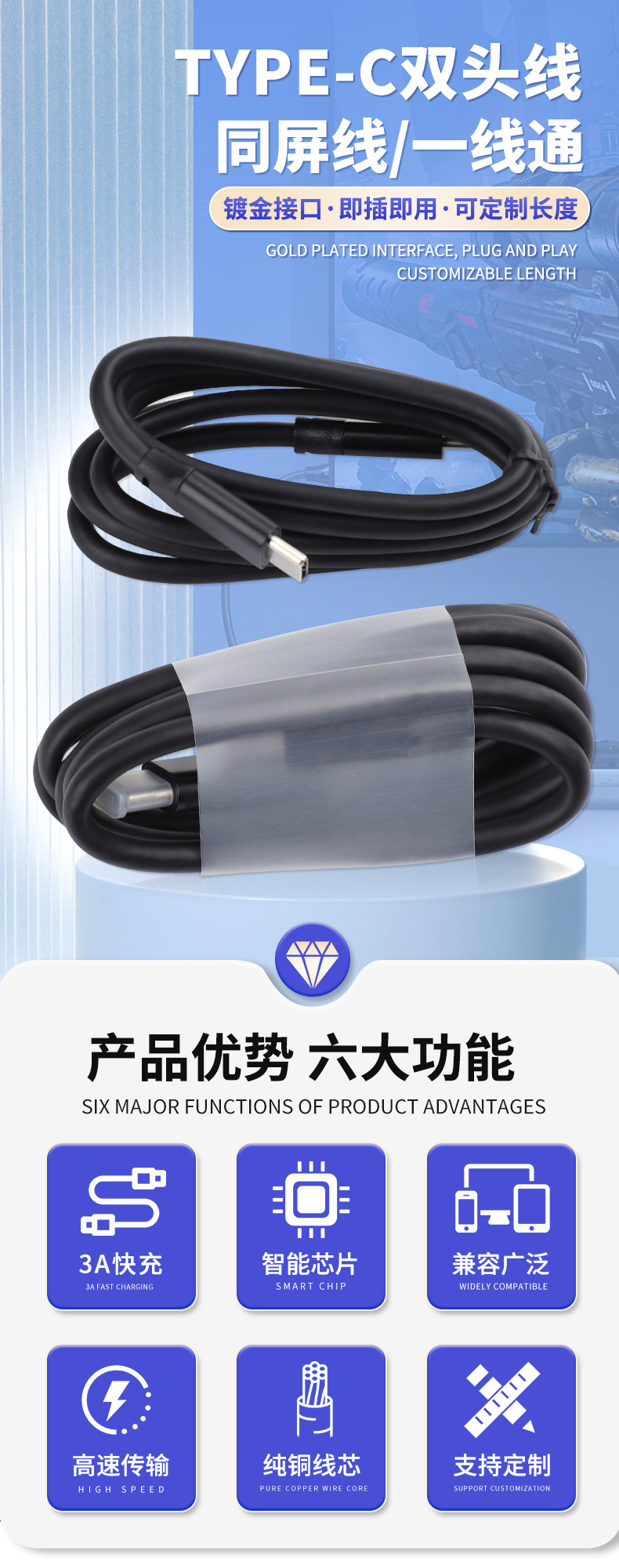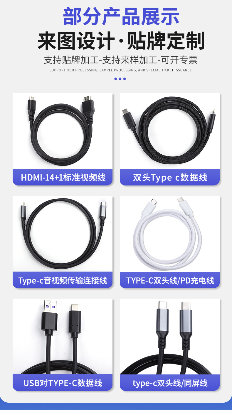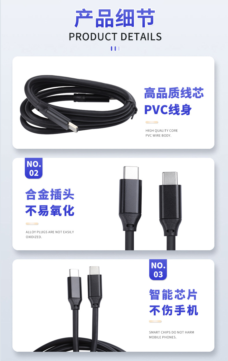 PVC 비디오 전송 라인 유형-c 더블 헤드 라인 스크린 라인 주석 구리 TYPE-C 라인을 통해 하드 디스크 라인
