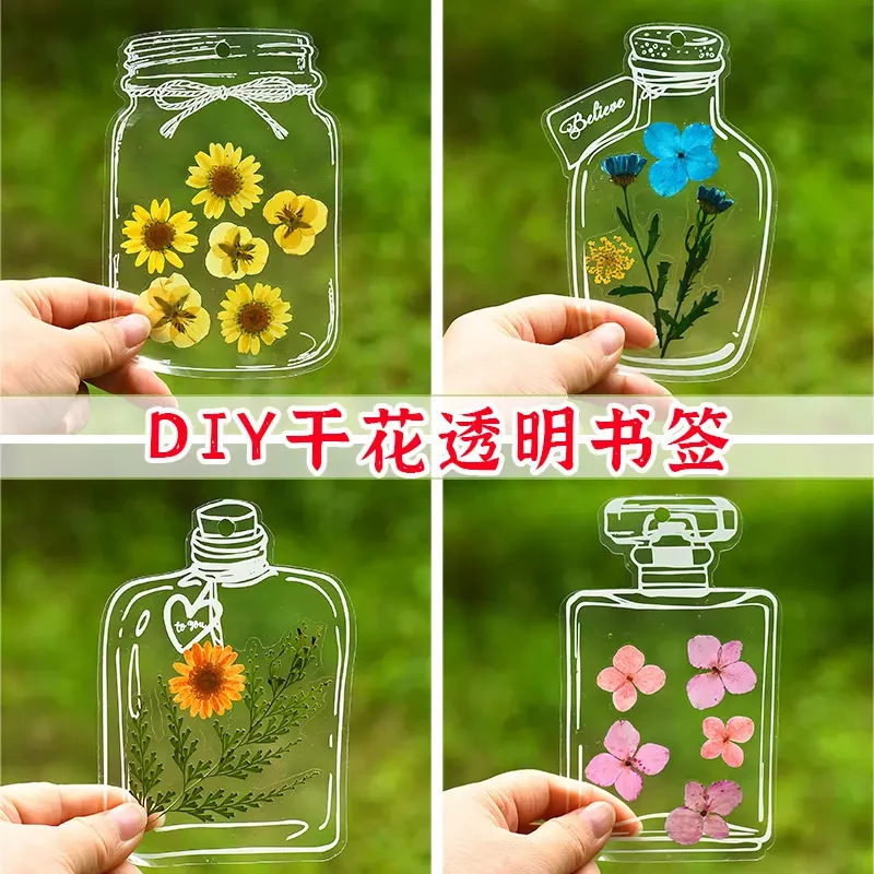 DIY 말린 꽃 북마크 수제 컬렉션 봄 병 북마크 투명한 잎 학생 창조적 인 수제 북마크