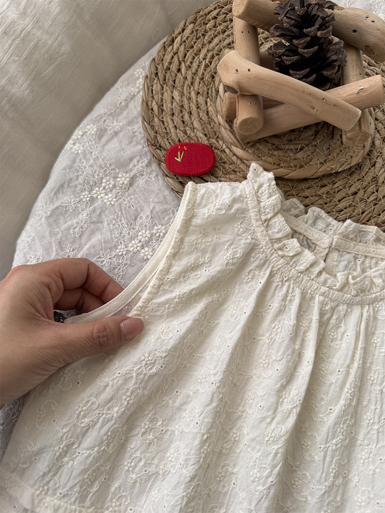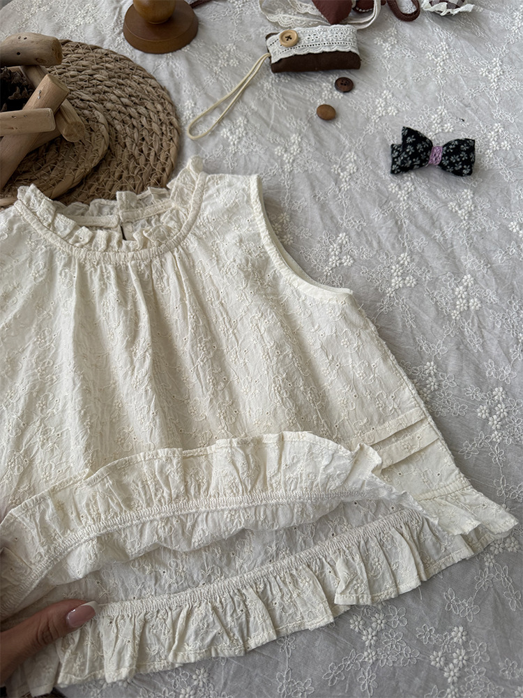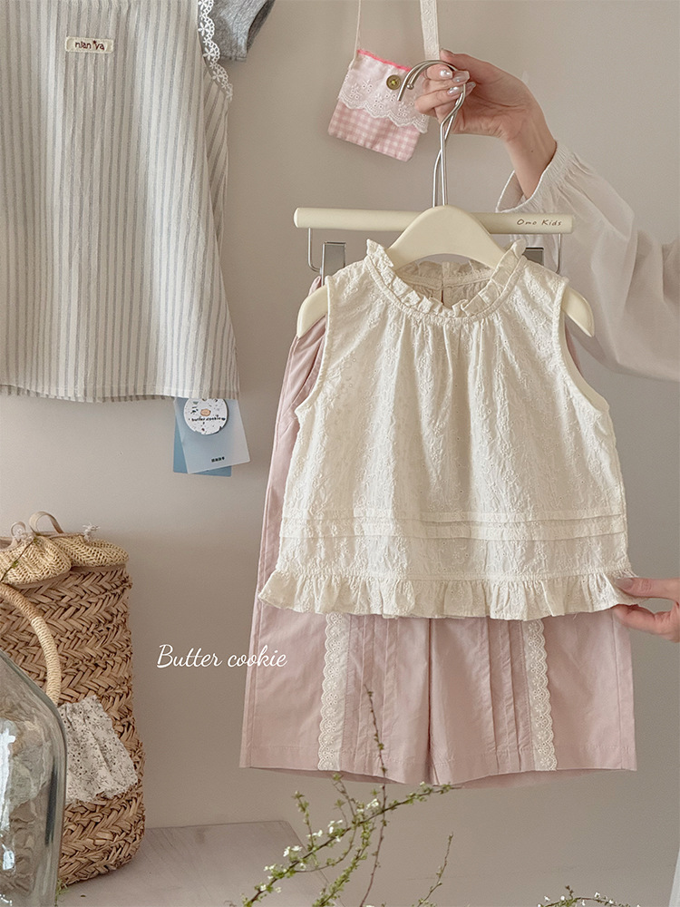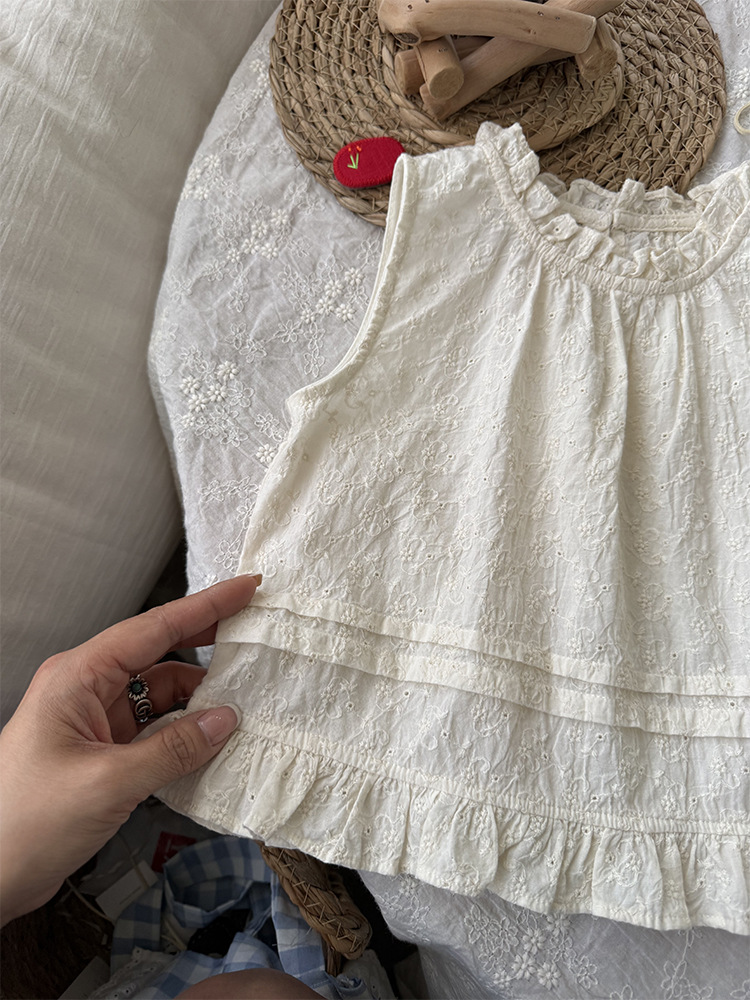 여자 한국 인형 셔츠 2025 여름 어린이 뉴 서양식 올매치 목회 귀 테두리 클리어 컬러 자카드 조끼스토어 가기
