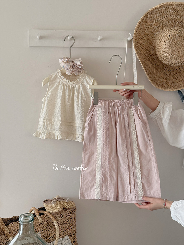 여자 한국 인형 셔츠 2025 여름 어린이 뉴 서양식 올매치 목회 귀 테두리 클리어 컬러 자카드 조끼