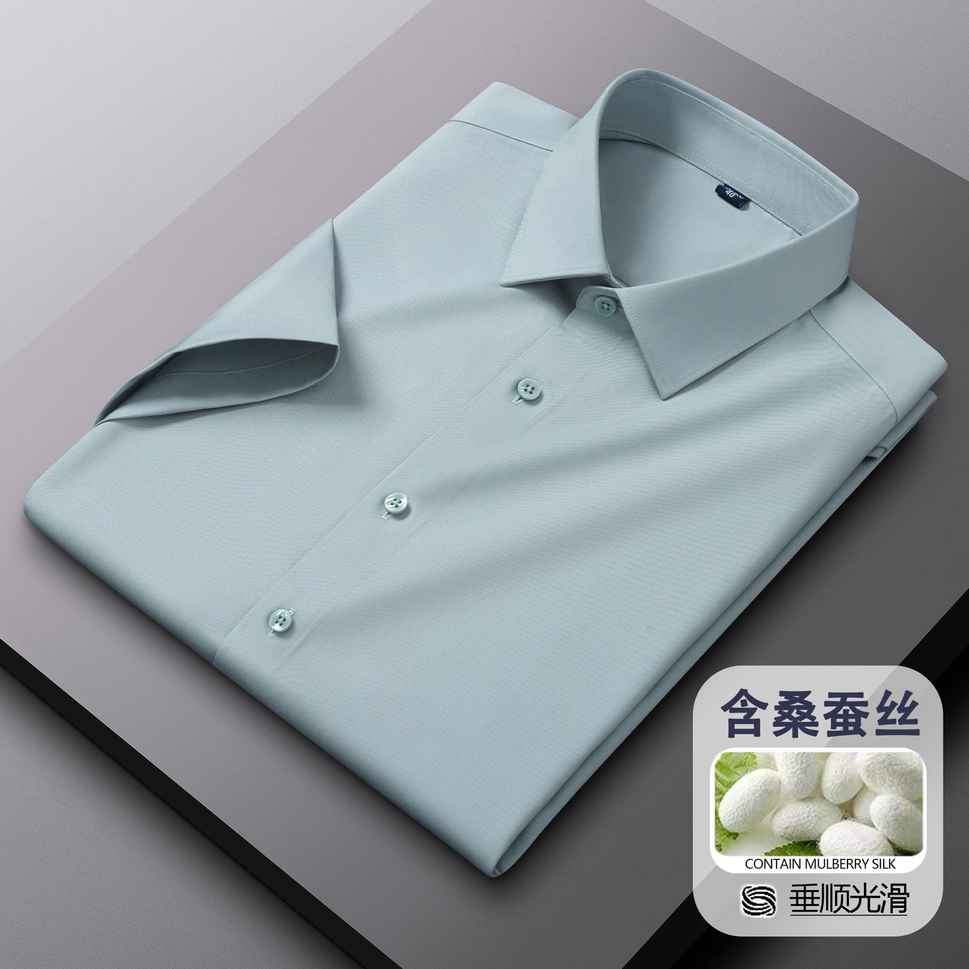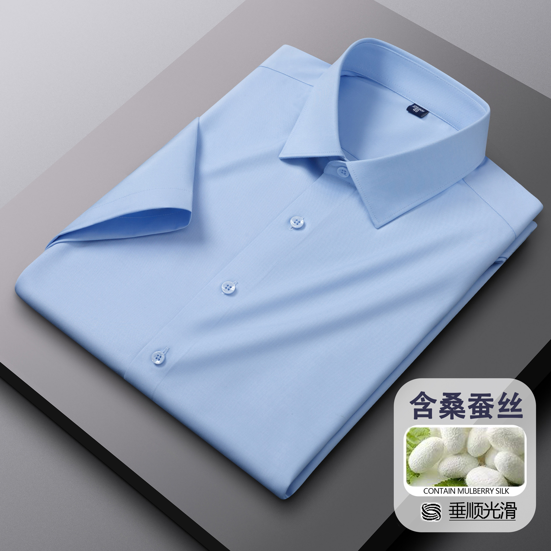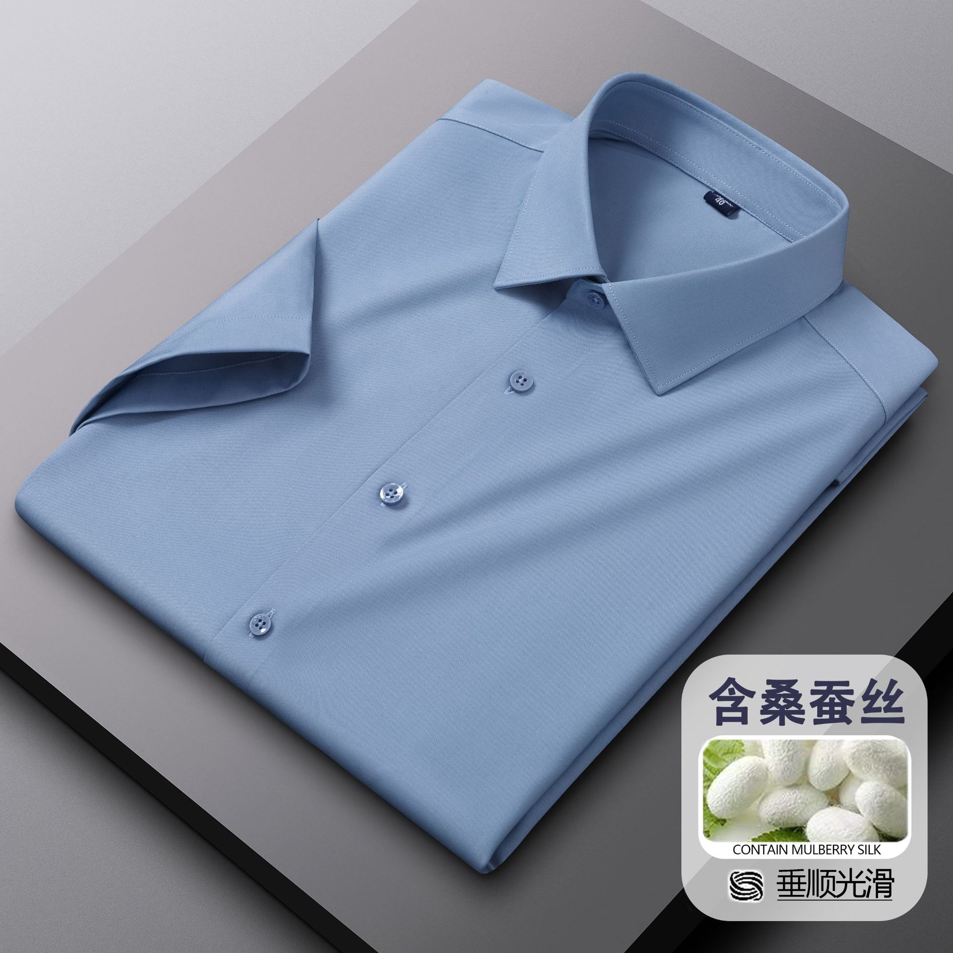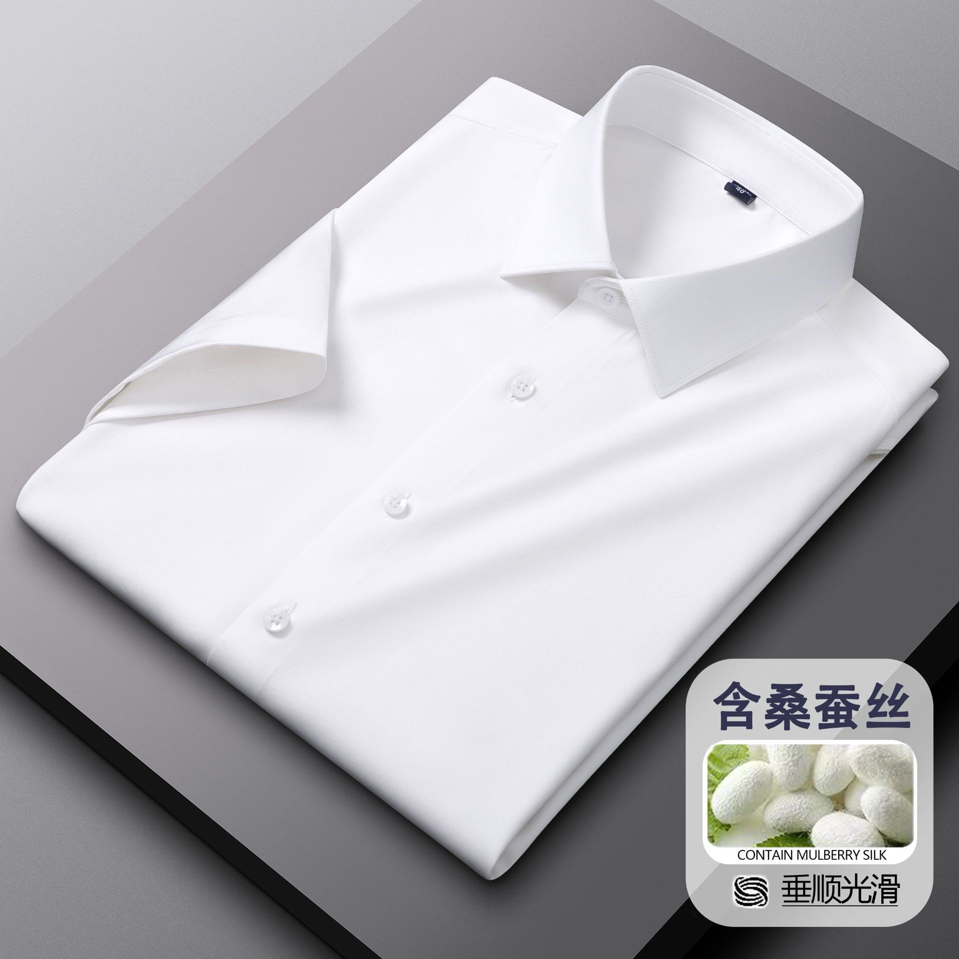 멀베리 실크 + 모달 반팔 흰색 셔츠 남성 여름 비즈니스 전문복 신랑 들러리 반팔 셔츠 인치 셔츠