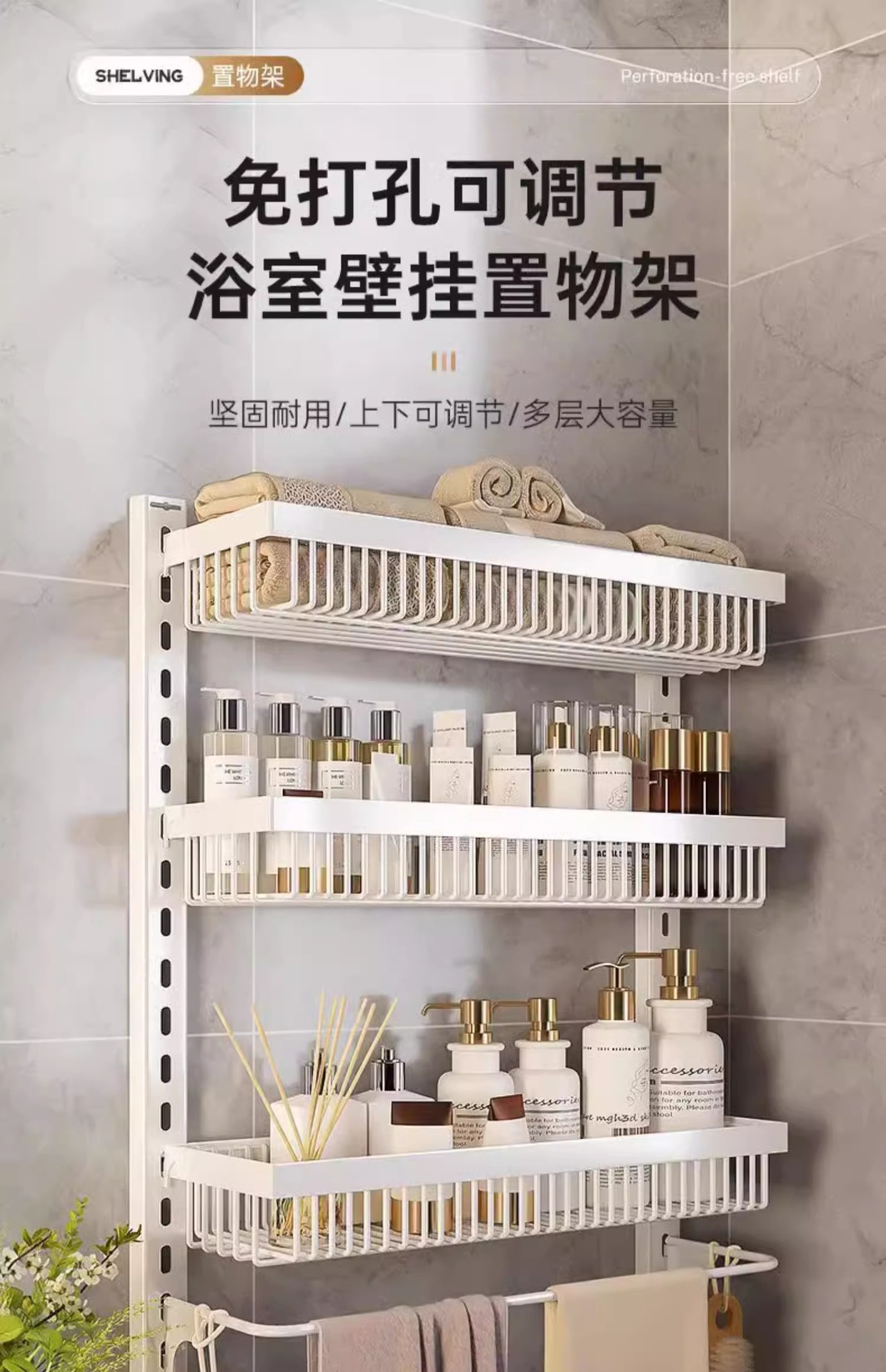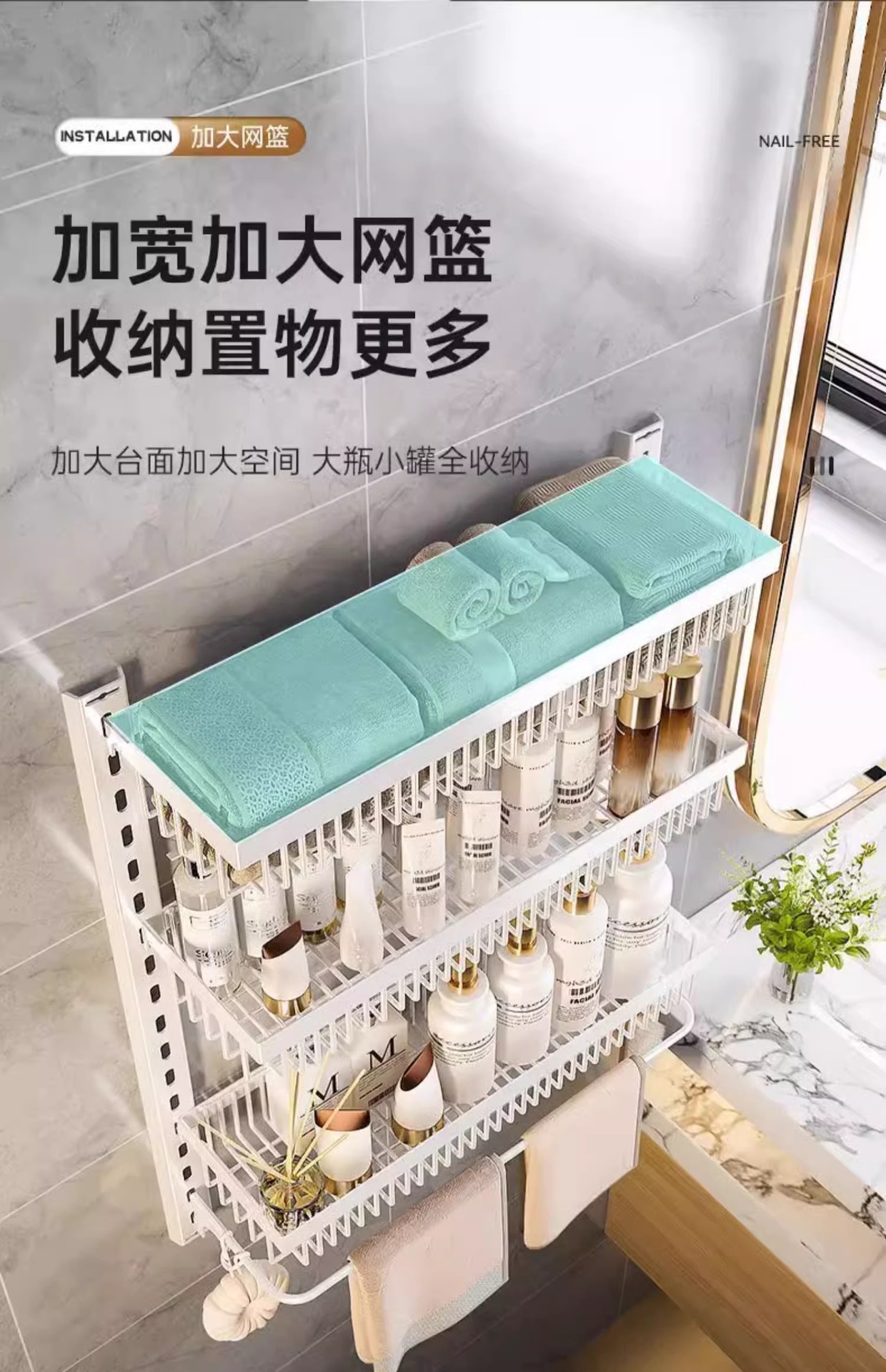 화장실 보관 랙 욕실 화장실 보관 선반 벽걸이 세척 테이블 비 천공 벽 장착스토어 가기