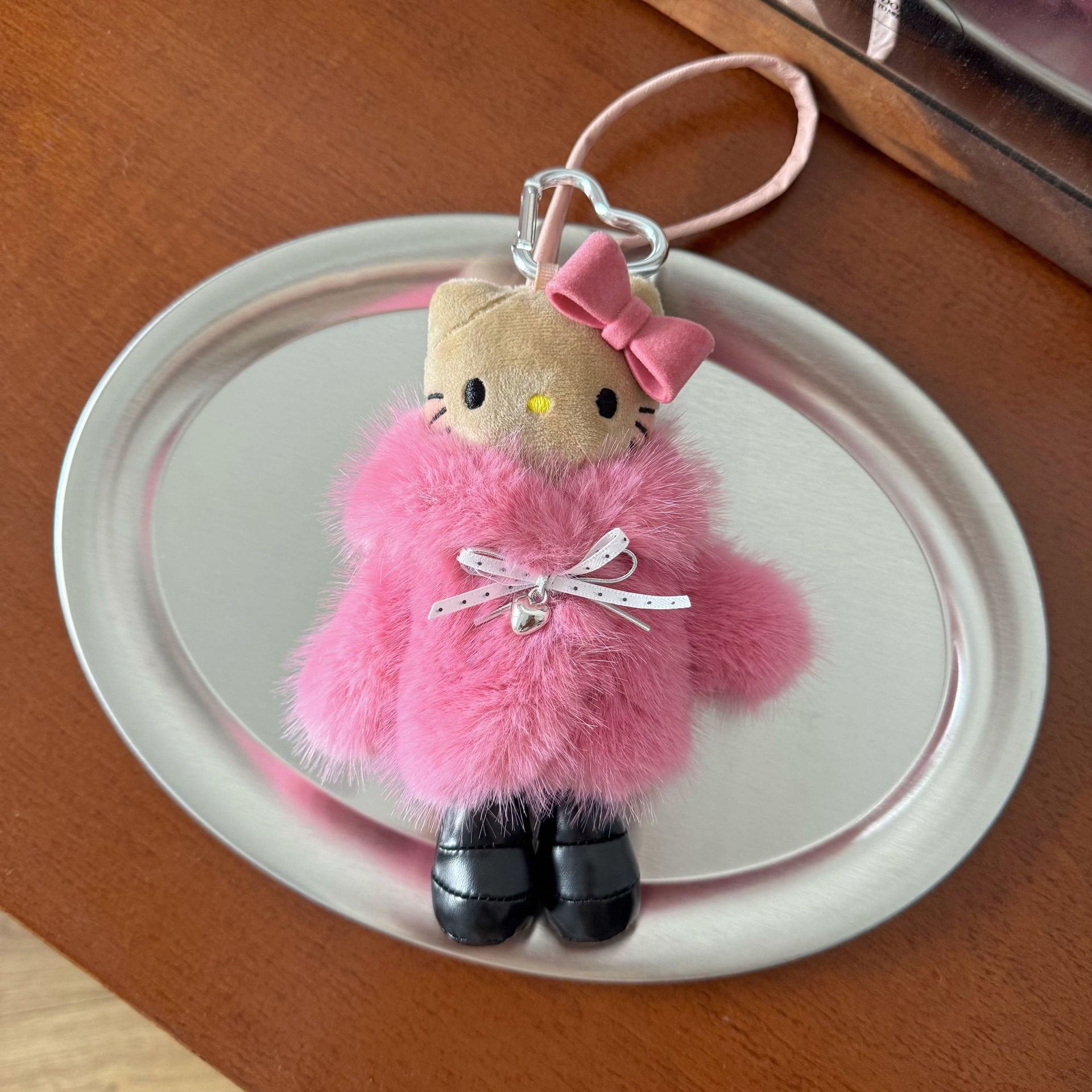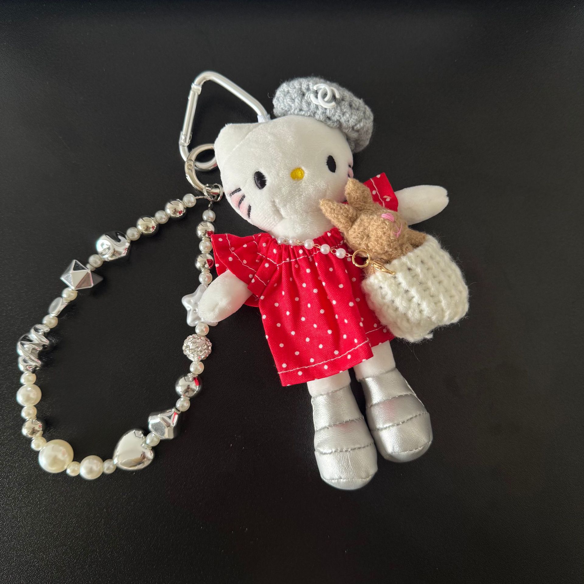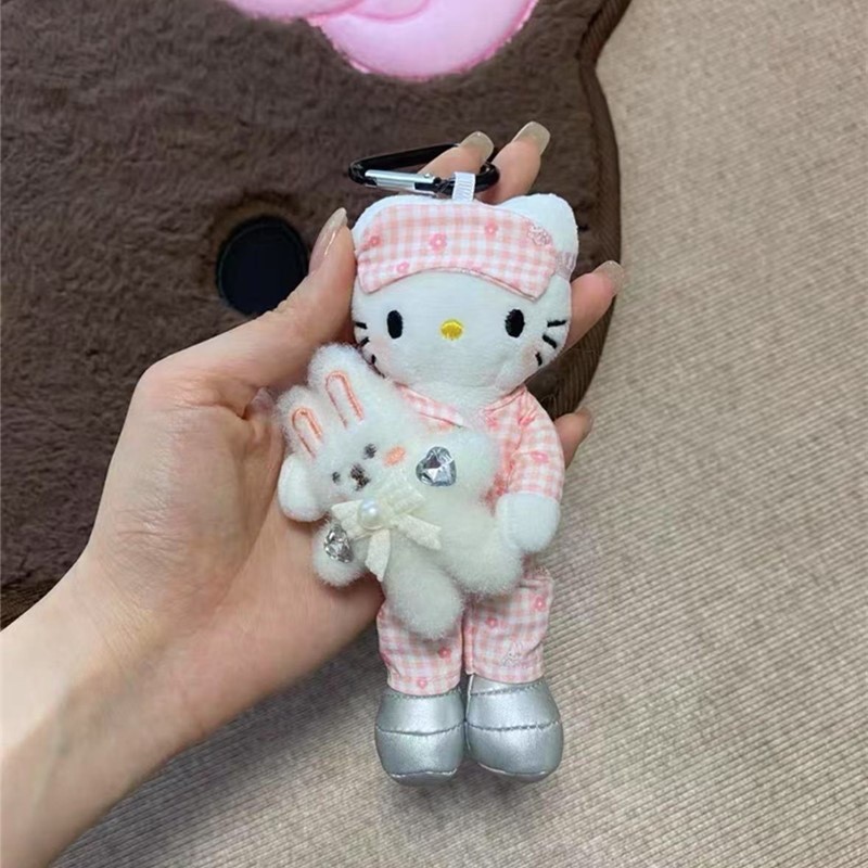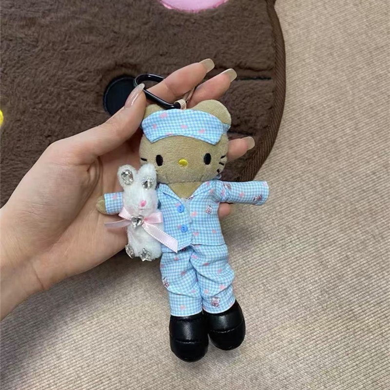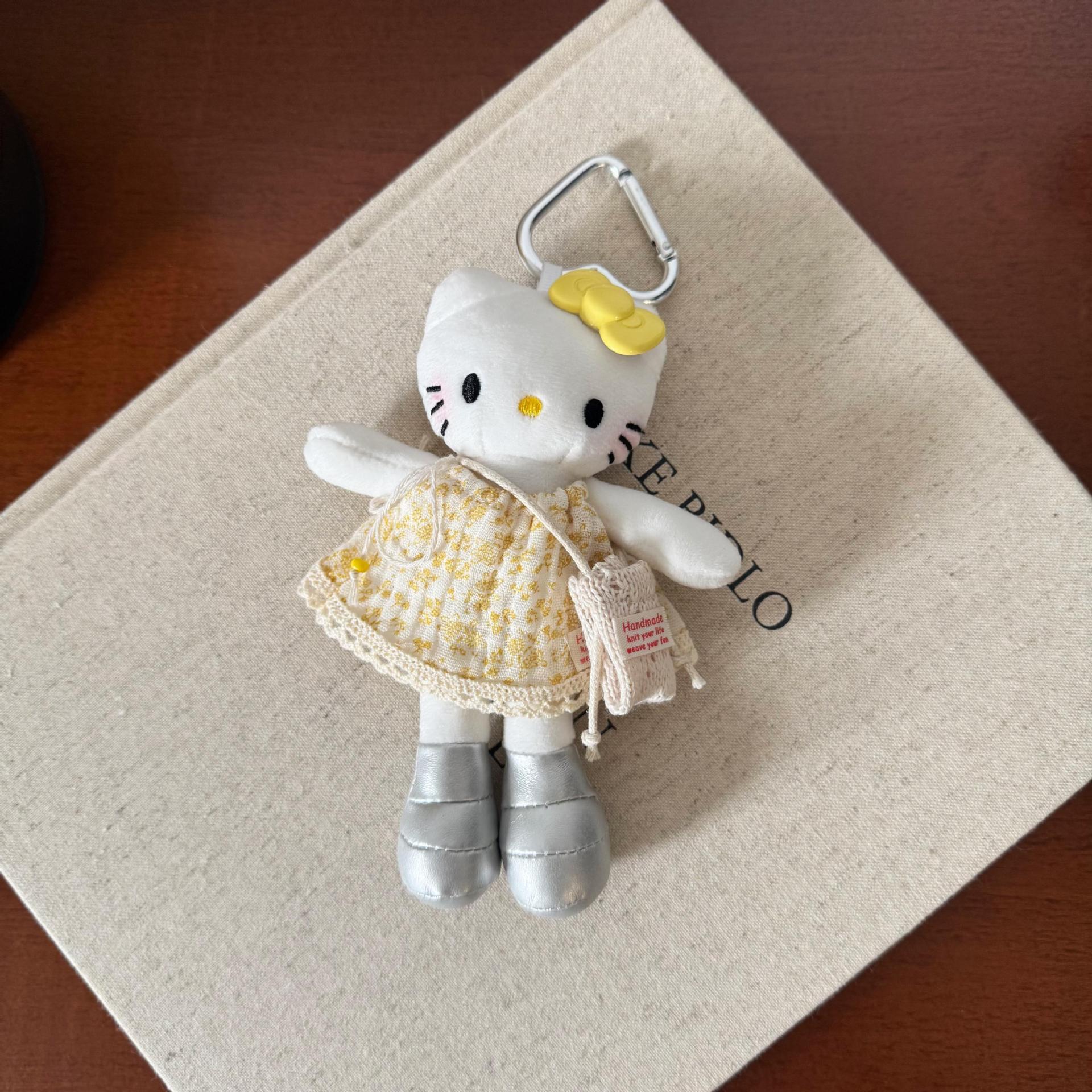 새로운 귀여운 긴 다리 키티 플러시 펜던트 스커트 드레스 아기 옷 ins 스타일 인형 펜던트 배낭 키 체인스토어 가기