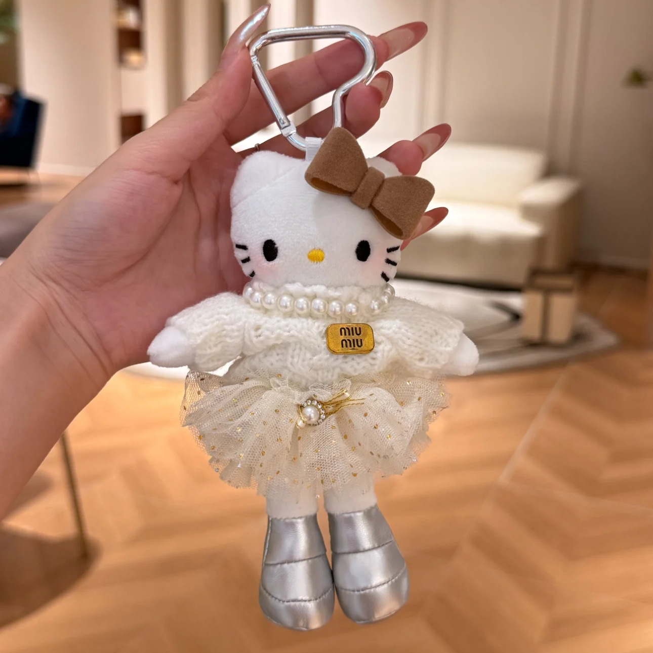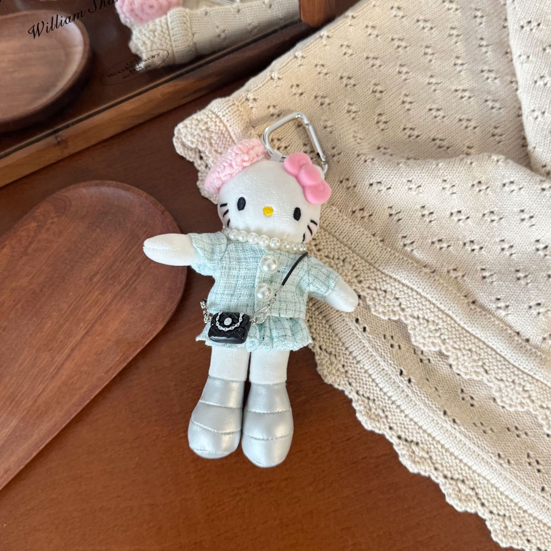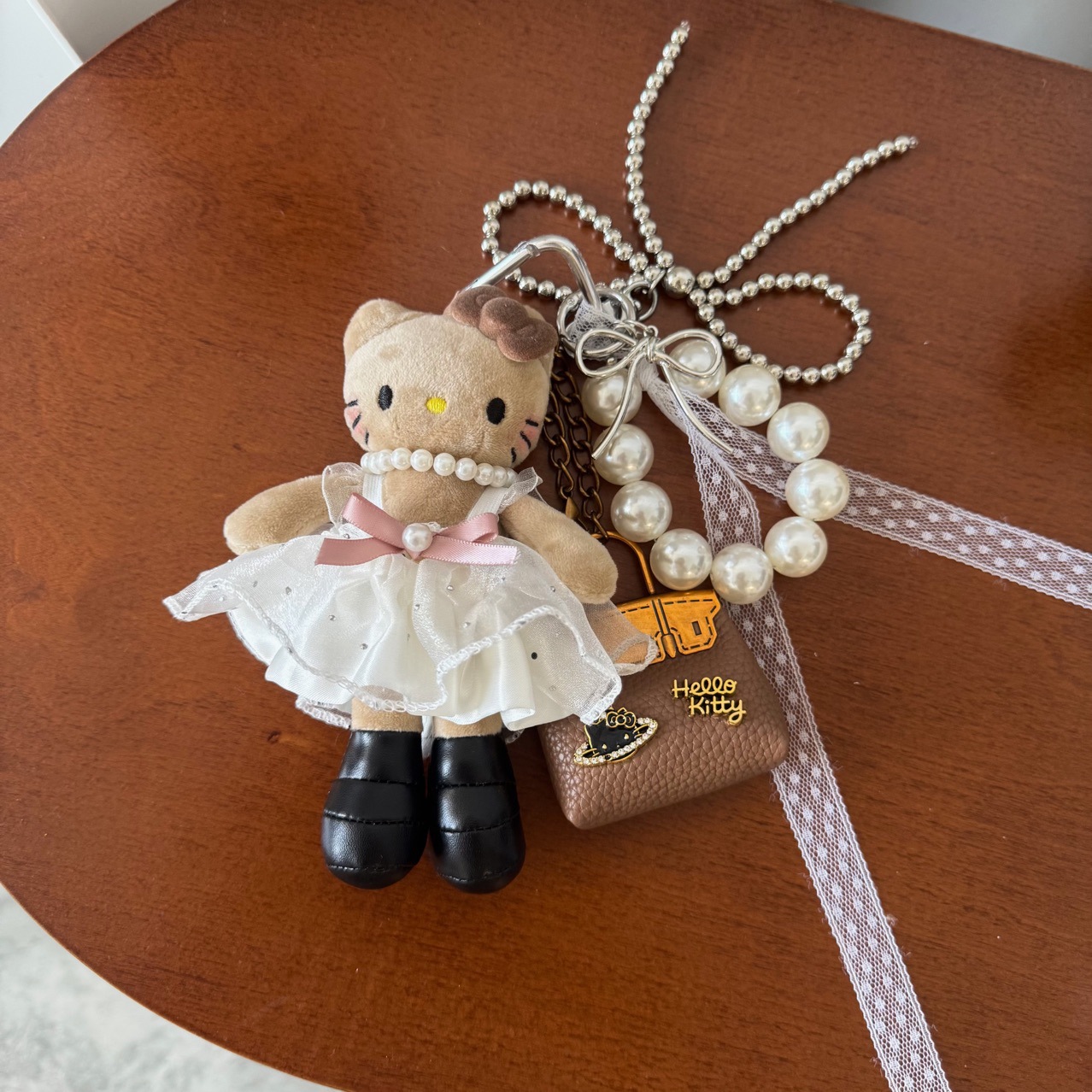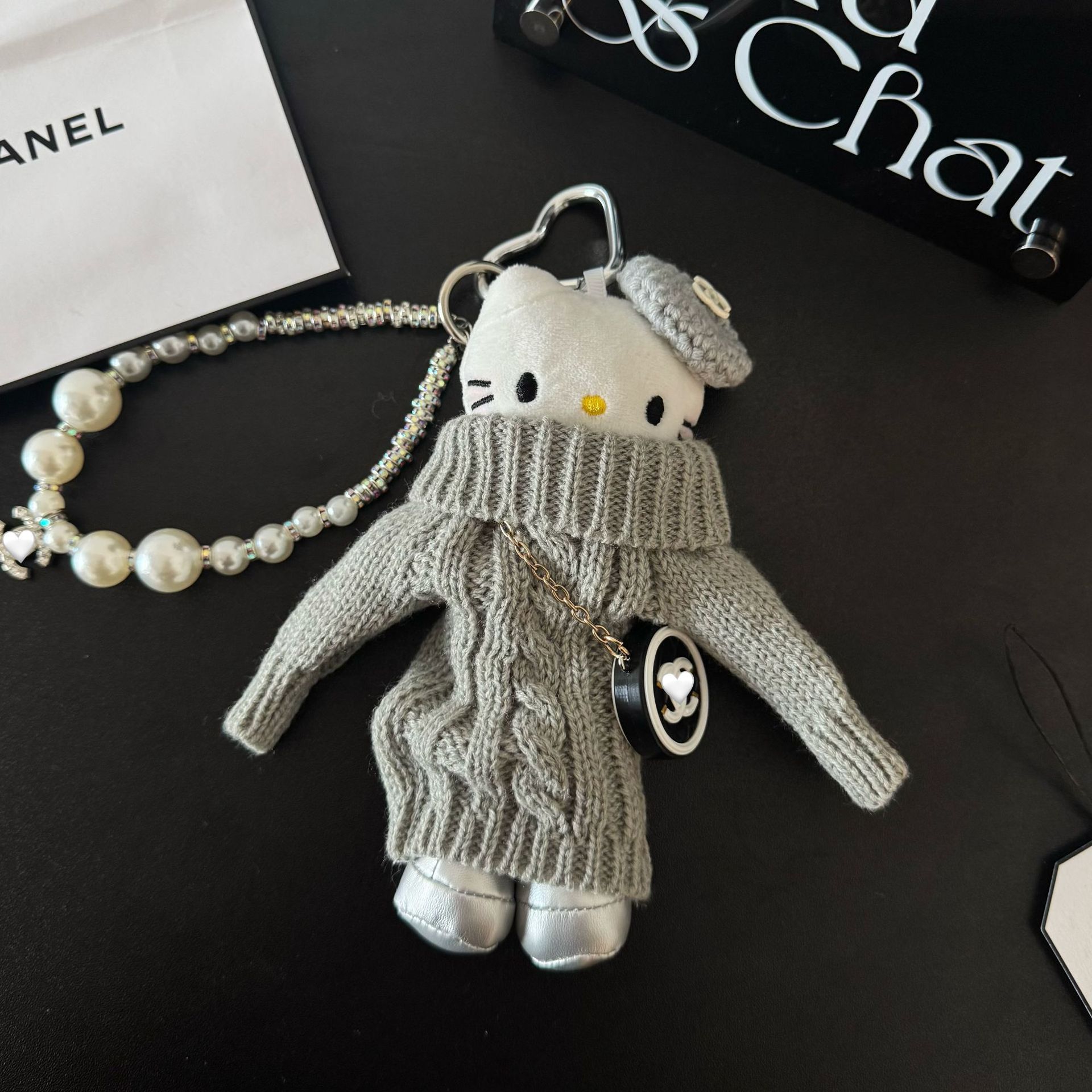 새로운 귀여운 긴 다리 키티 플러시 펜던트 스커트 드레스 아기 옷 ins 스타일 인형 펜던트 배낭 키 체인스토어 가기