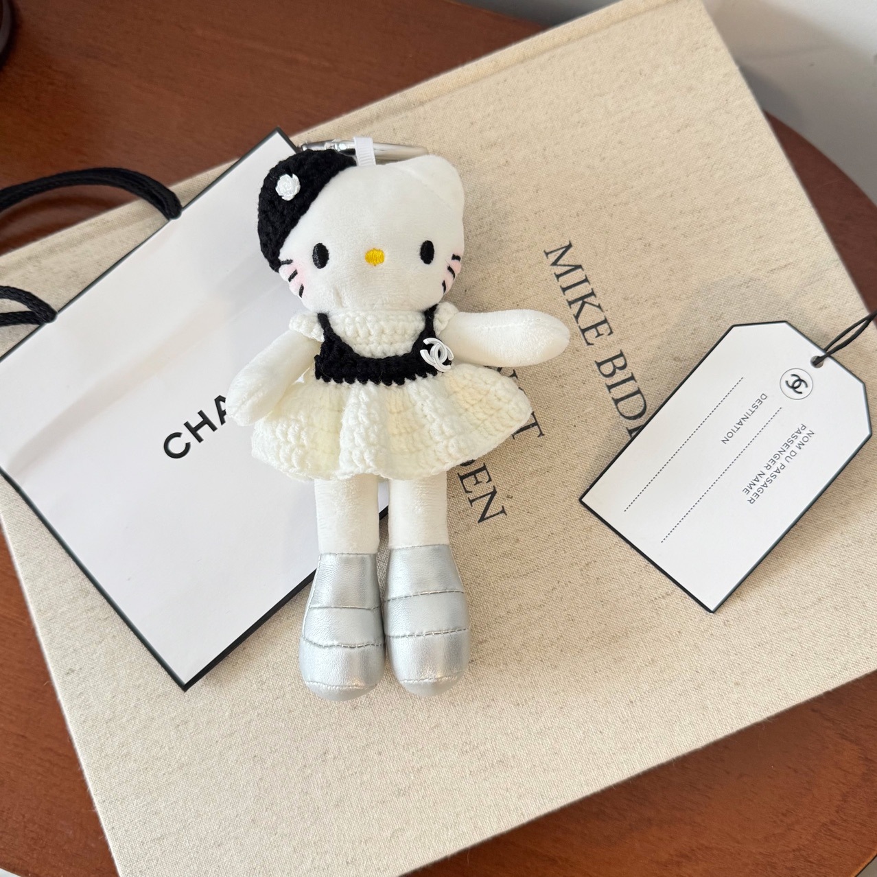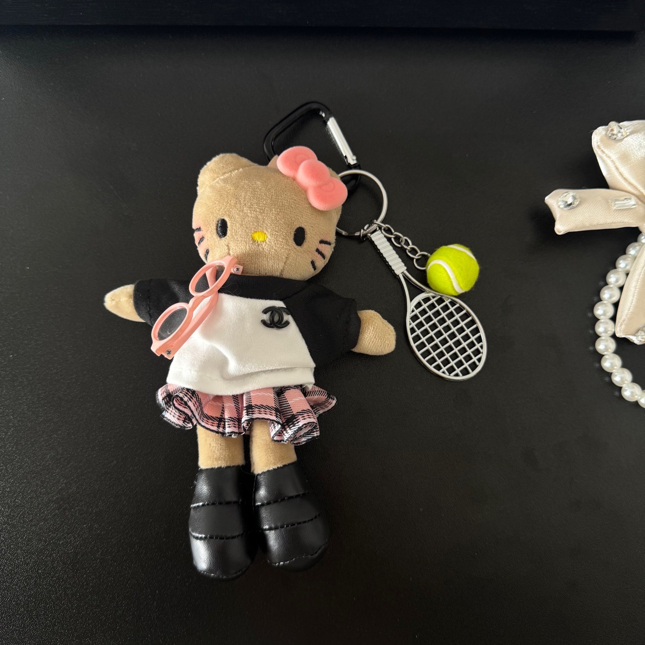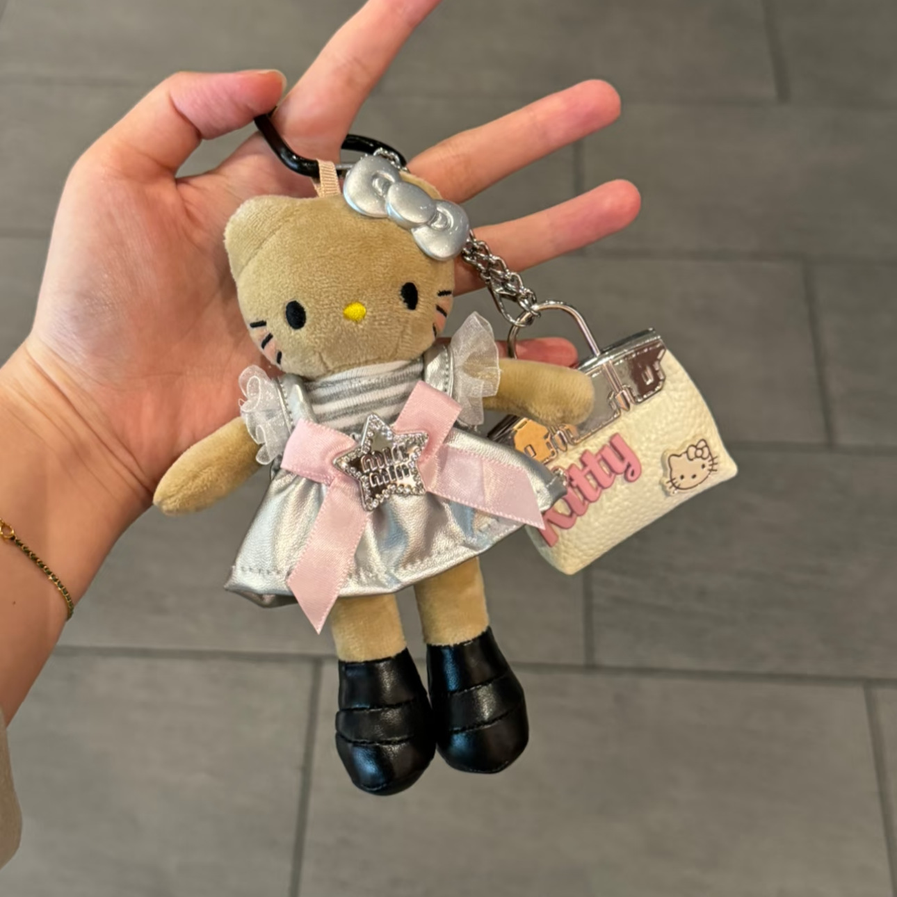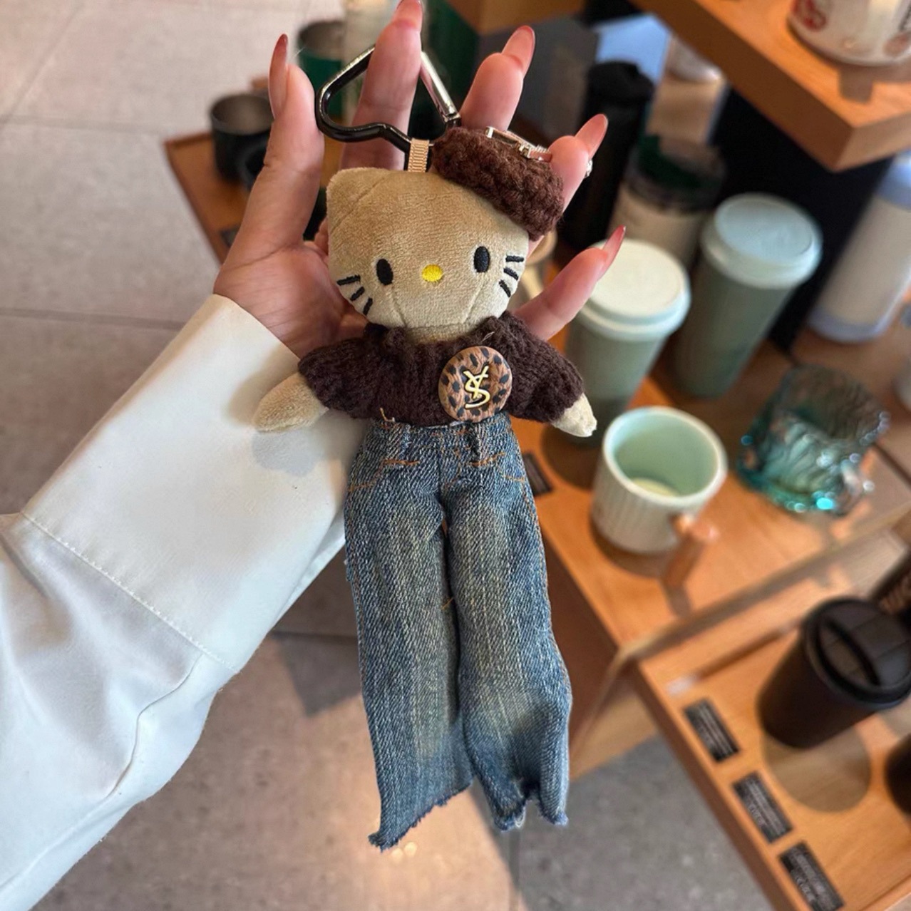 새로운 귀여운 긴 다리 키티 플러시 펜던트 스커트 드레스 아기 옷 ins 스타일 인형 펜던트 배낭 키 체인스토어 가기