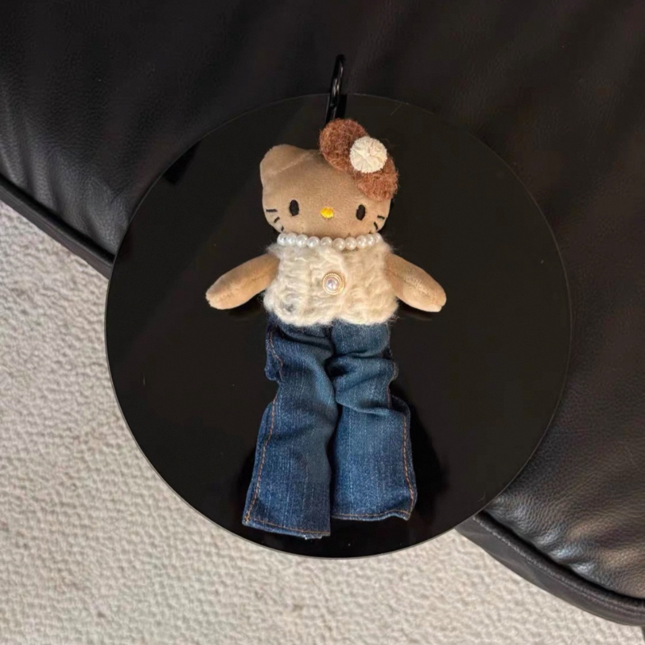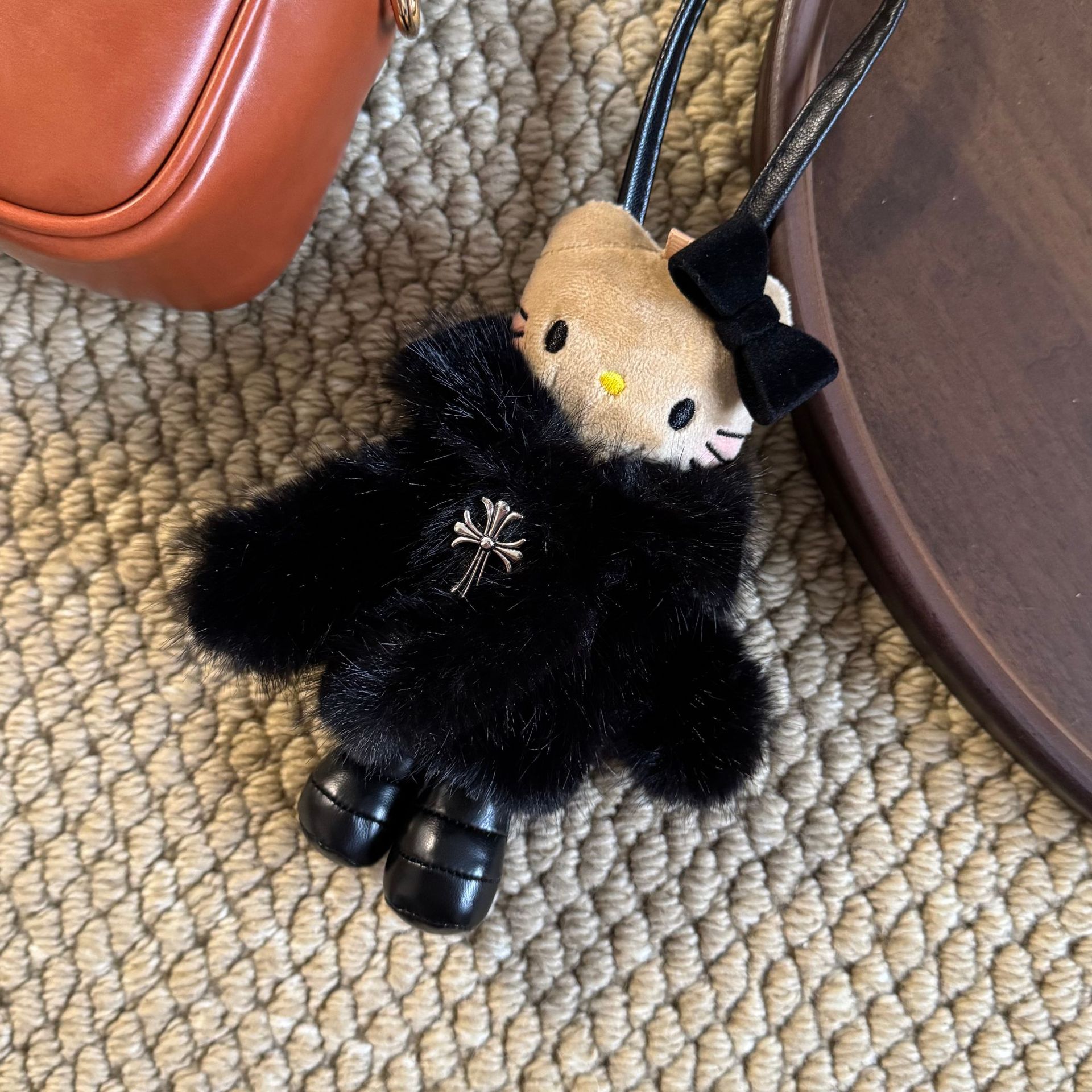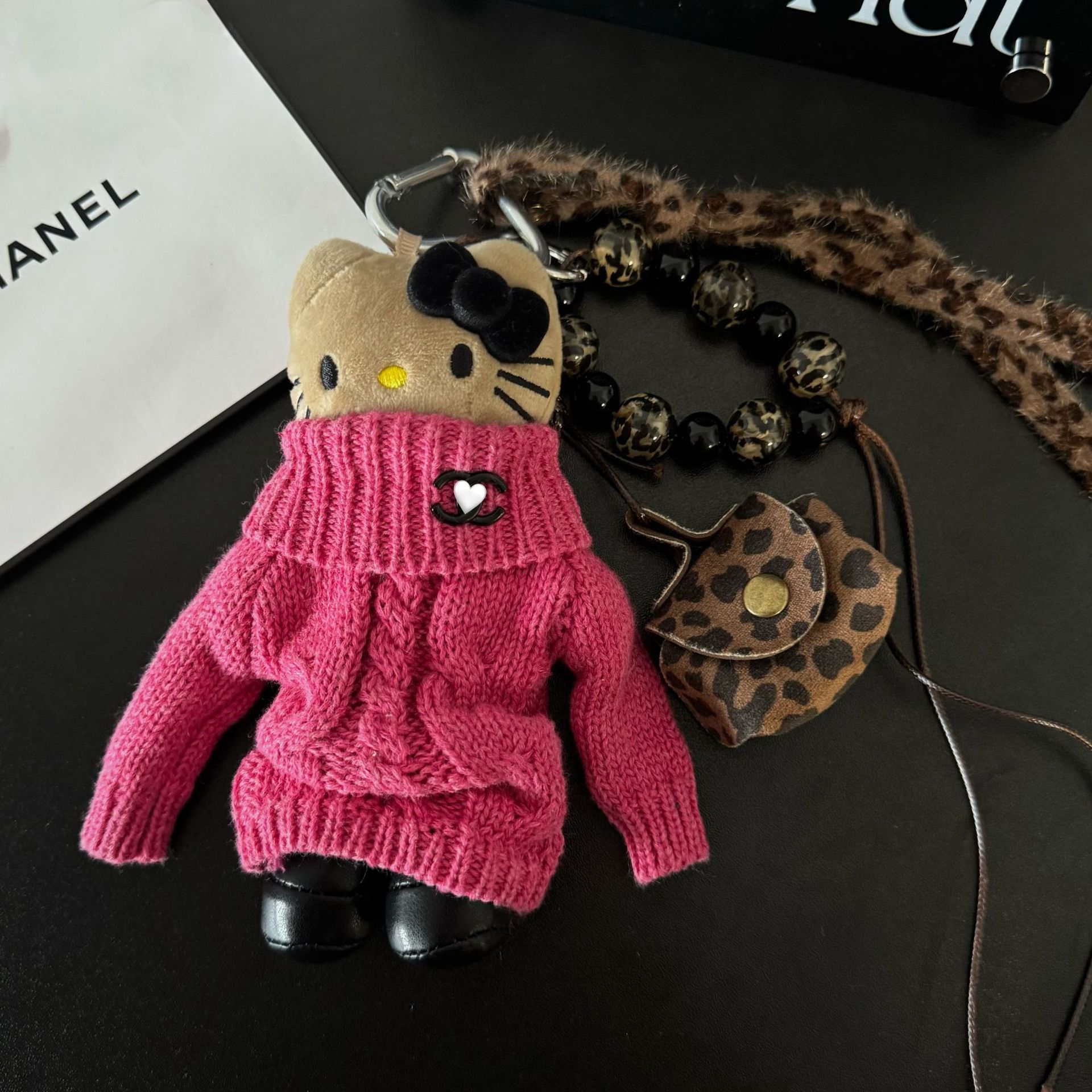 • 도쿄 거리 검은 가죽 긴 다리 고양이 펜던트
