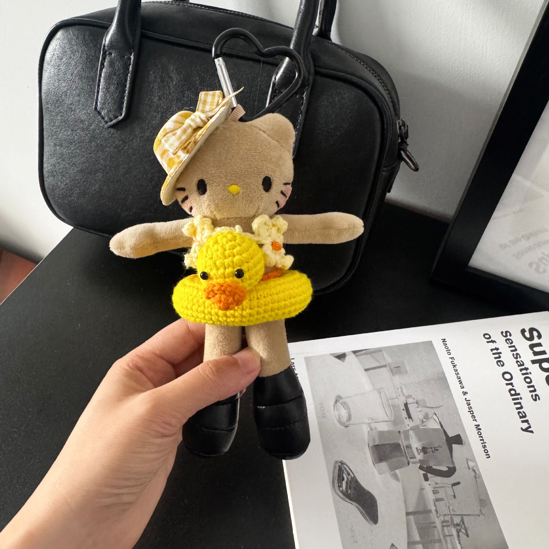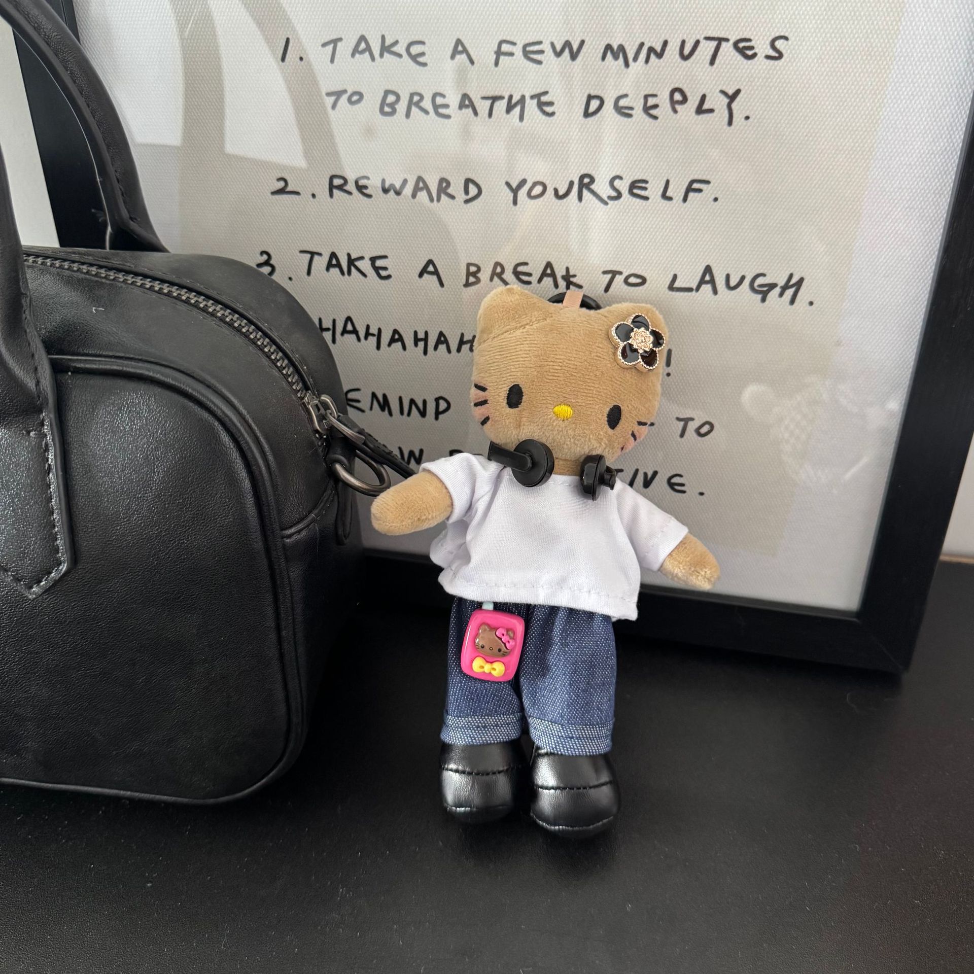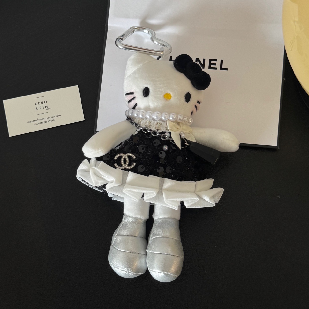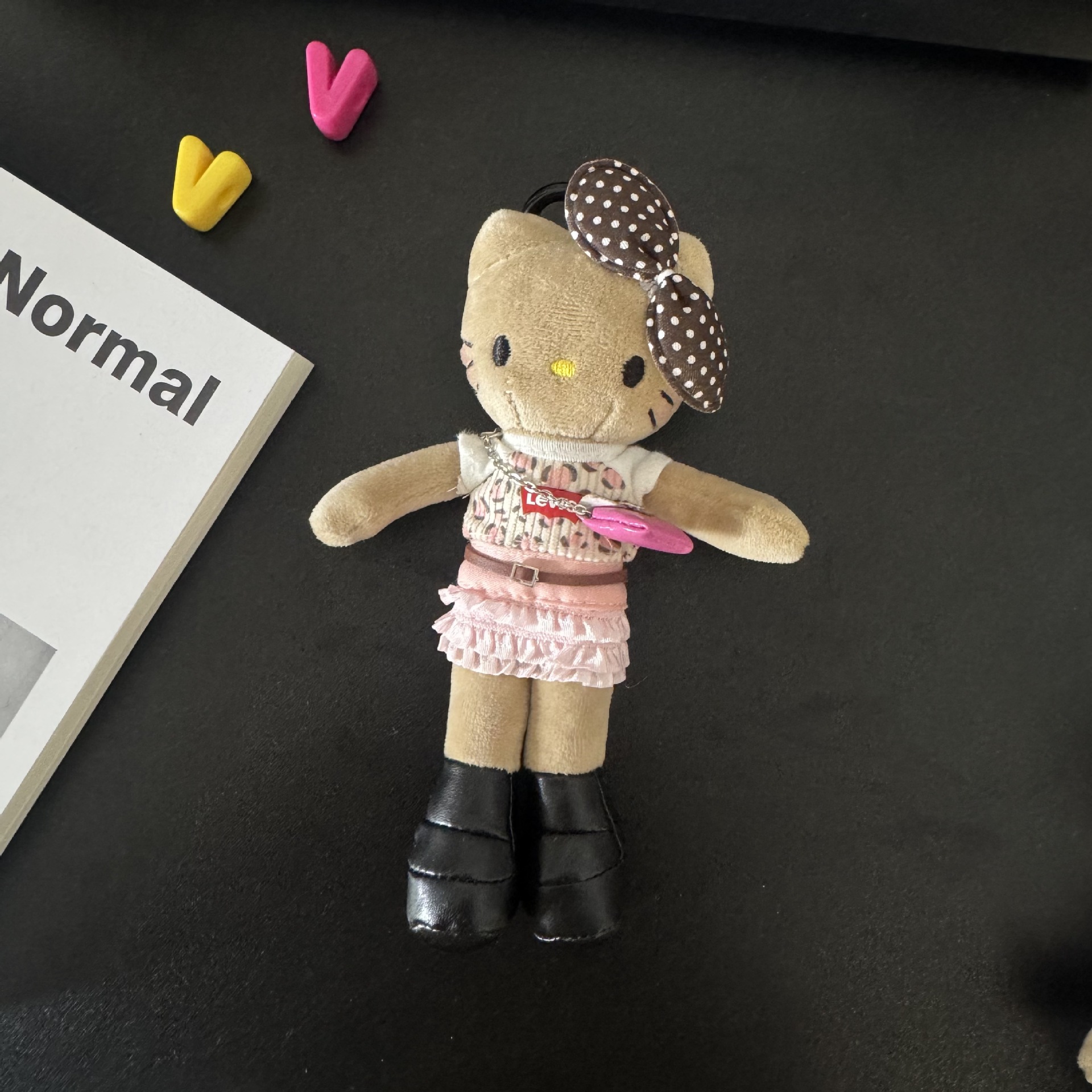 • 도쿄 거리 검은 가죽 긴 다리 고양이 펜던트
