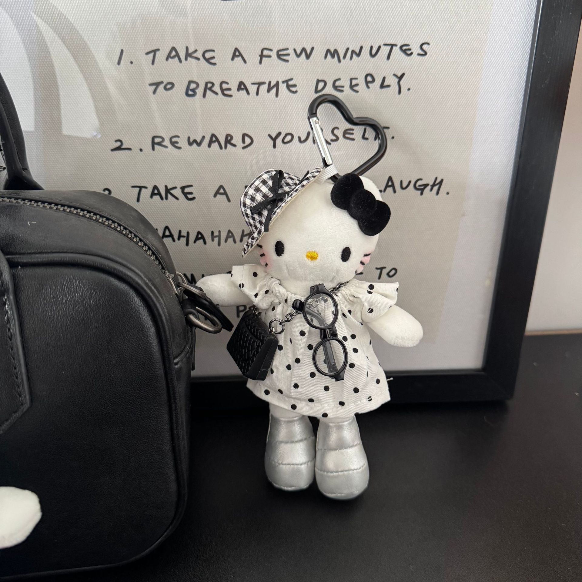 • 록 핫걸 블랙 가죽 긴 다리 고양이 펜던트 + 가방