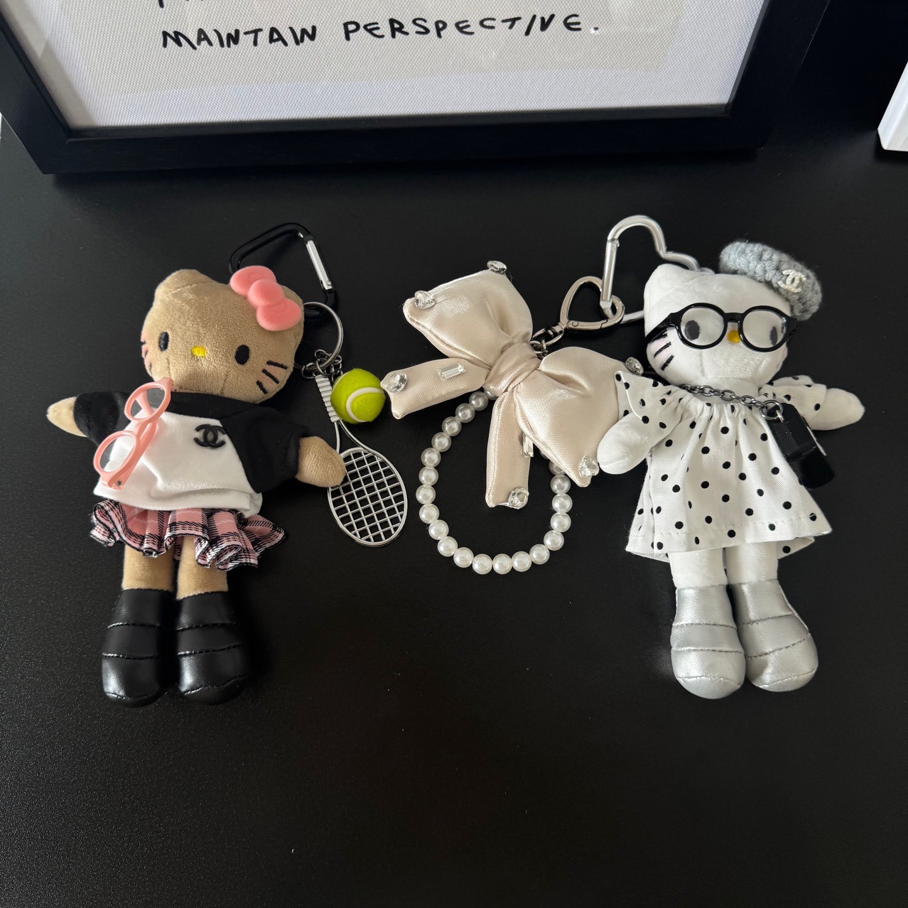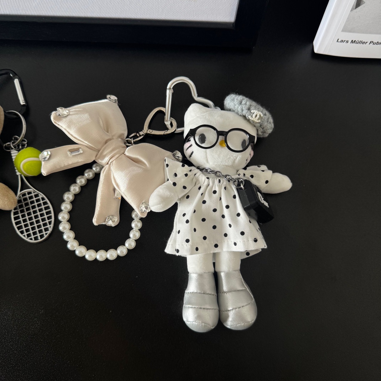• 흰색 도트무늬 스커트 긴다리 고양이 펜던트