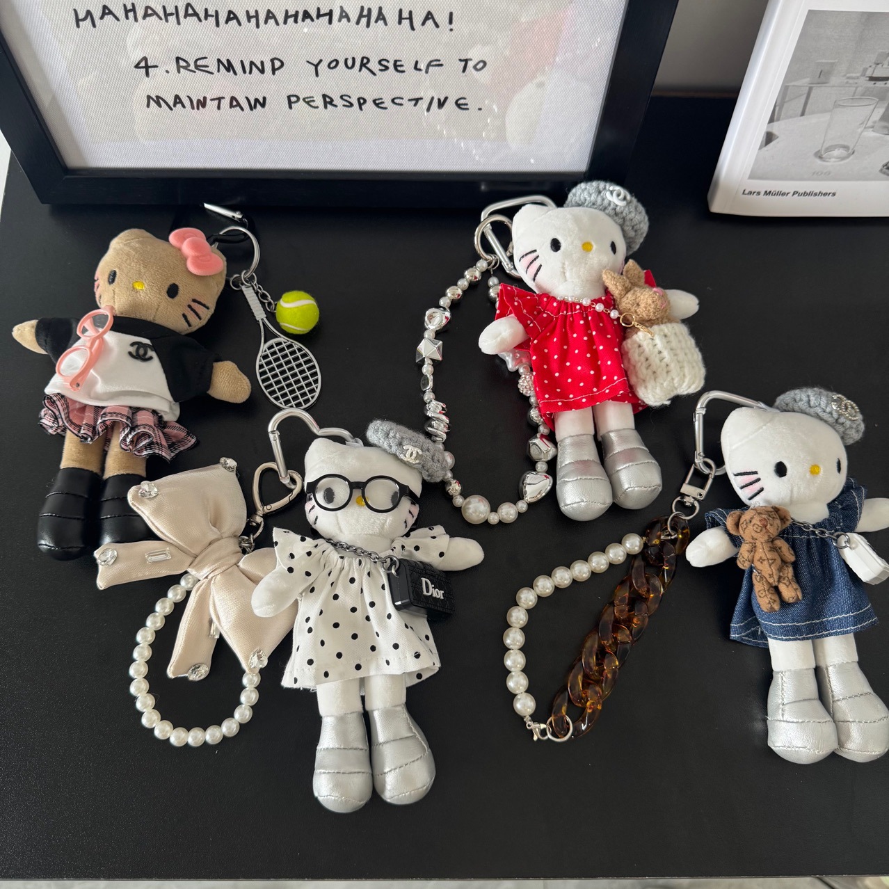 • 화이트 도트 스커트 긴 다리 고양이 펜던트 m 스타일 펜던트