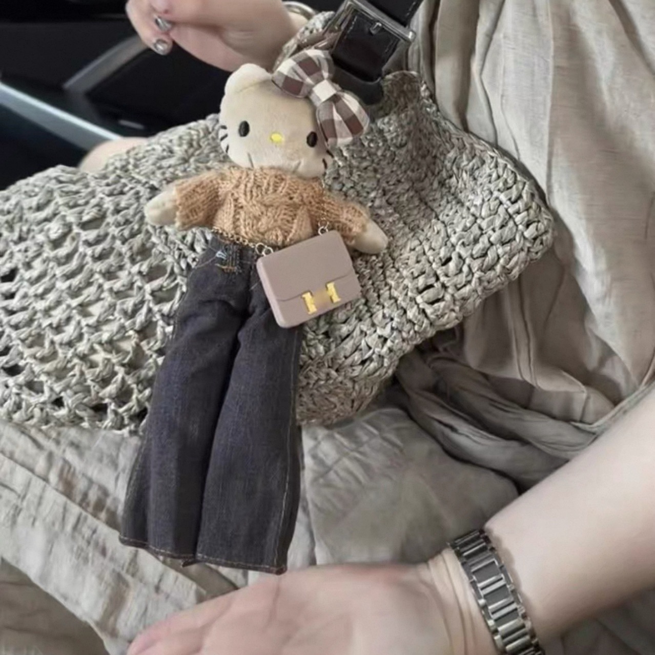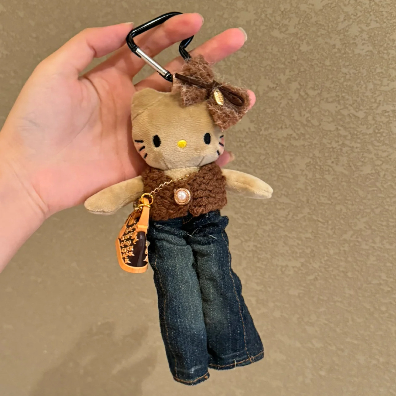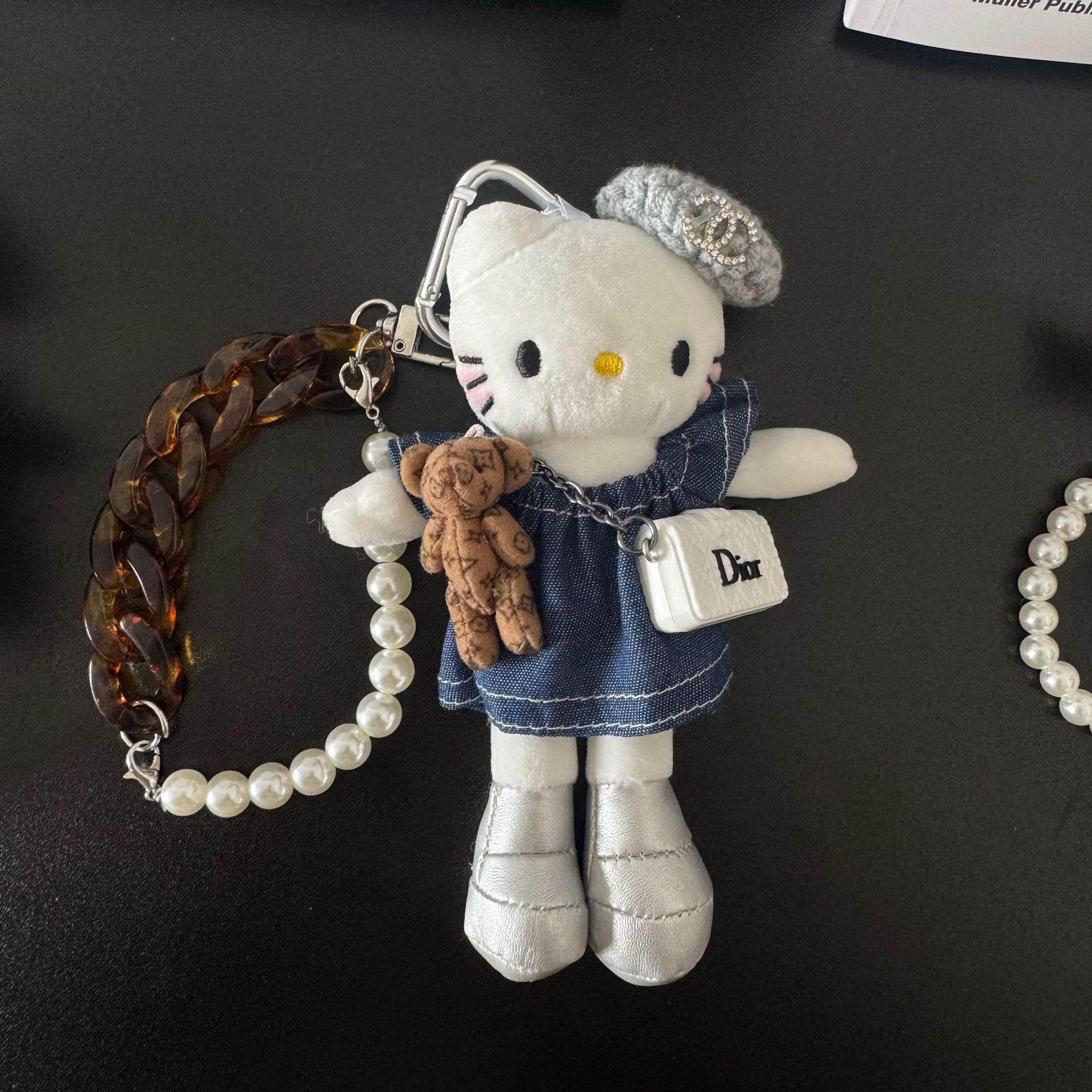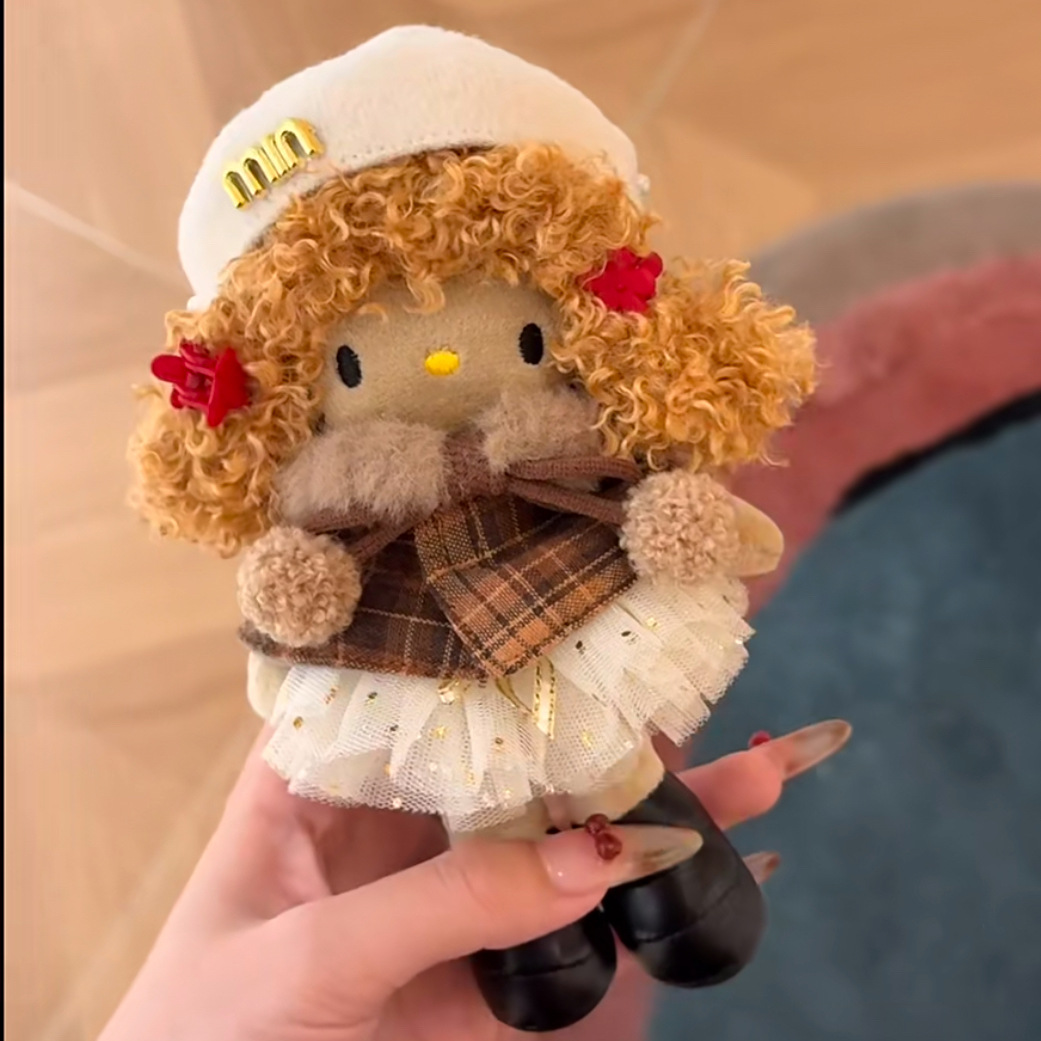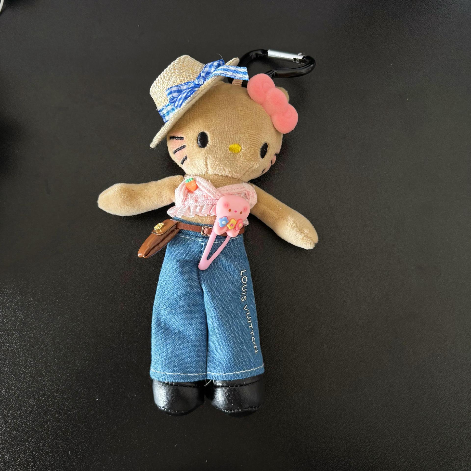 새로운 귀여운 긴 다리 키티 플러시 펜던트 스커트 드레스 아기 옷 ins 스타일 인형 펜던트 배낭 키 체인