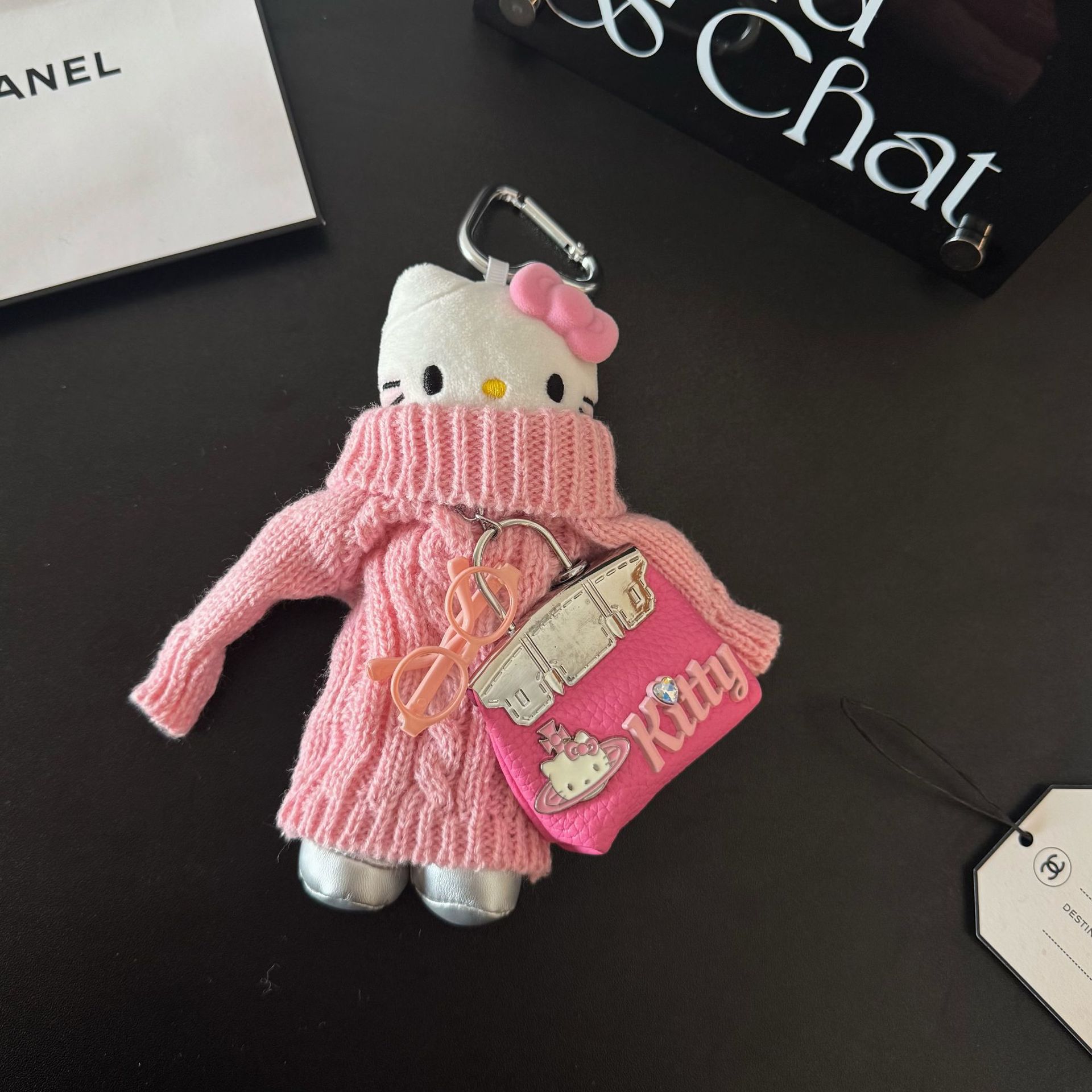 • 밝은 다이아몬드 드레스 긴 다리 고양이 + 다이아몬드 가방 펜던트