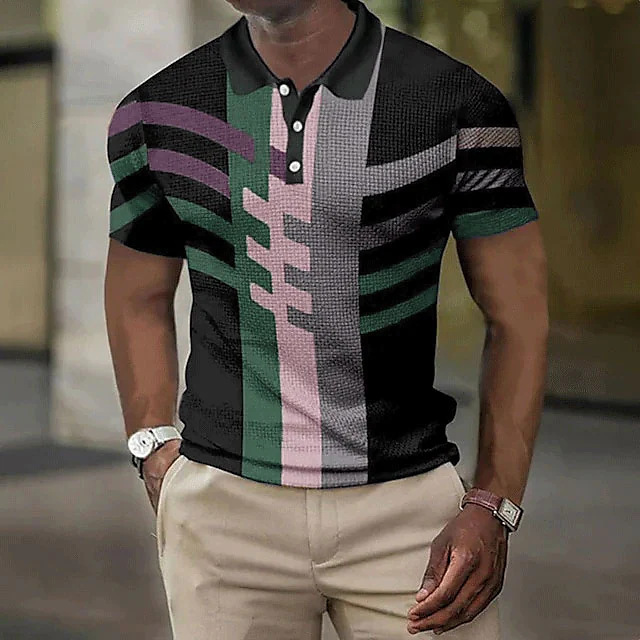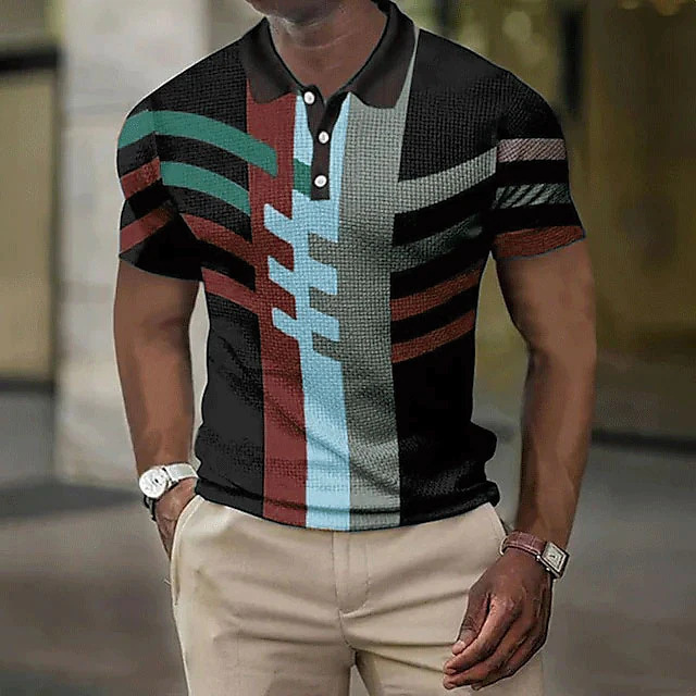 여름 유럽과 미국의 트렌드 골프 셔츠 남성 폴로 셔츠 패션 캐주얼 반팔 3D 인쇄 버튼 스포츠 탑
