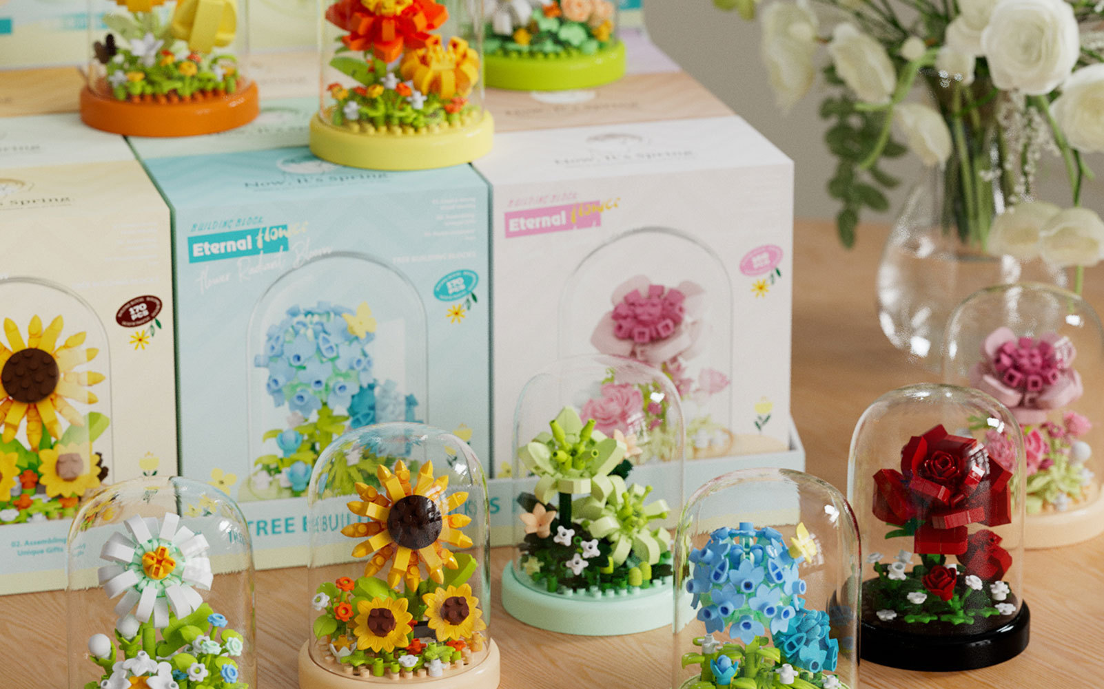 Chao Le Chuang 7414-7422 어머니와 교사의 날 선물 교육용 미세 입자 조립 장난감 블록