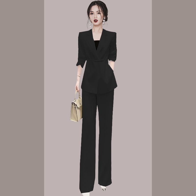 올해 인기있는 여름 세트 여성용 얇은 세트 재킷 하이 센스 라이트 프로 세트 와이드 레그 팬츠 투피스 세트