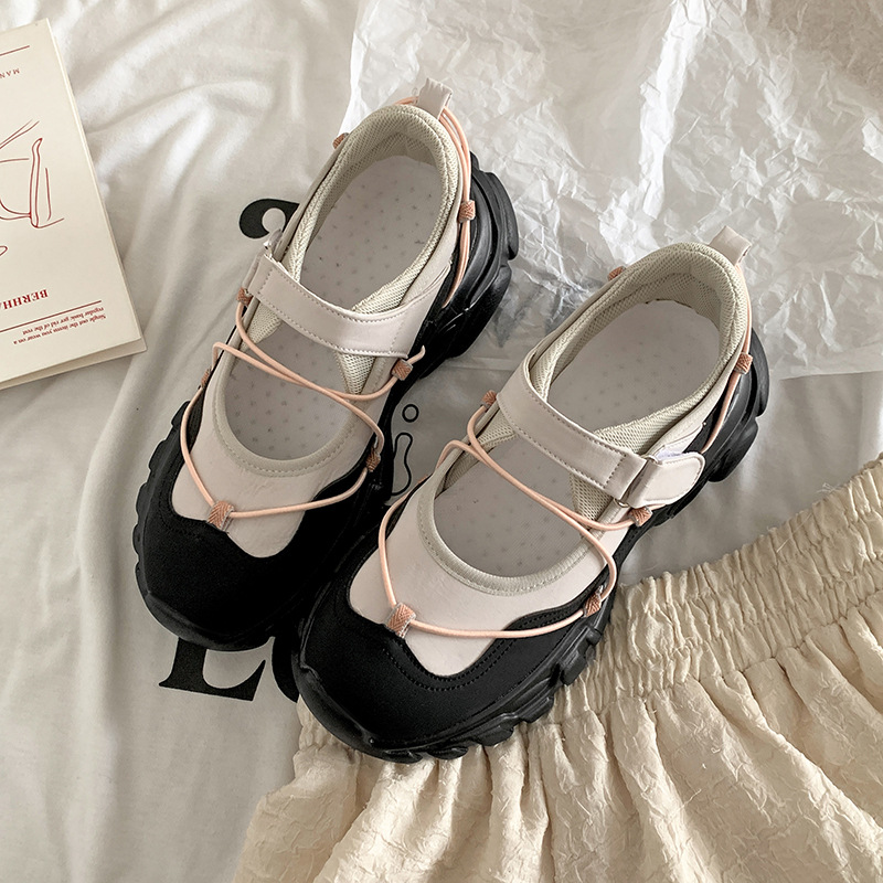 패션 캐주얼 화이트 얕은 입 두꺼운 바닥 메리 제인 싱글 레이어 신발 여성의 2025 뉴 봄 올 매치 강화 아빠 신발스토어 가기